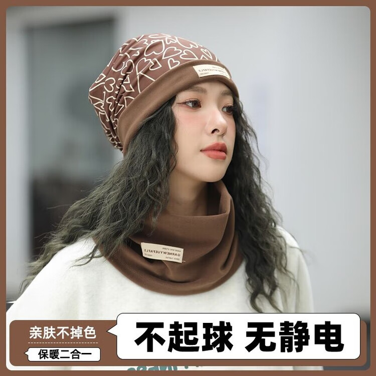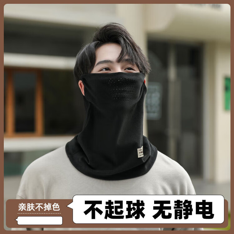 韦戒围脖护颈出行女冬季帽子挂耳面罩骑车防风保暖脖套加厚秋冬男脖套 【爱心护耳帽黑色】套装送一手套