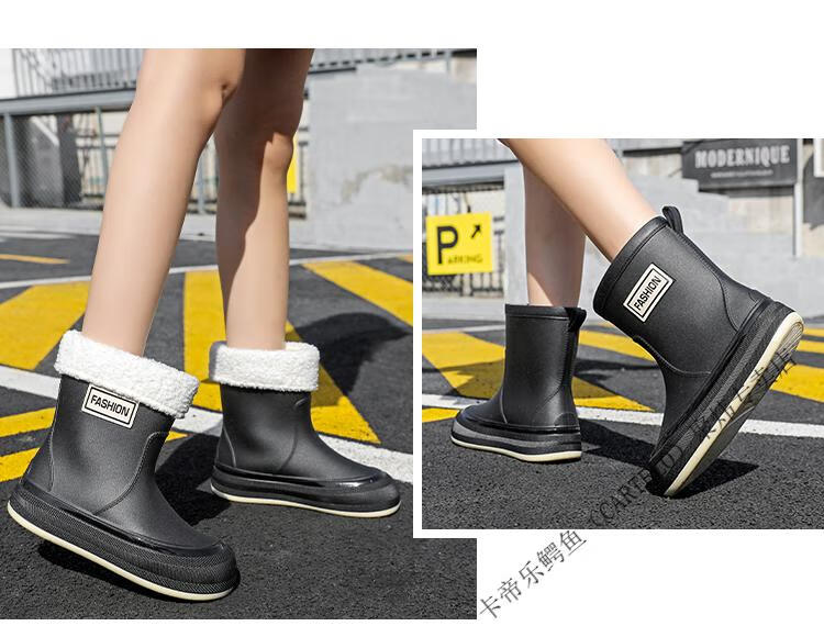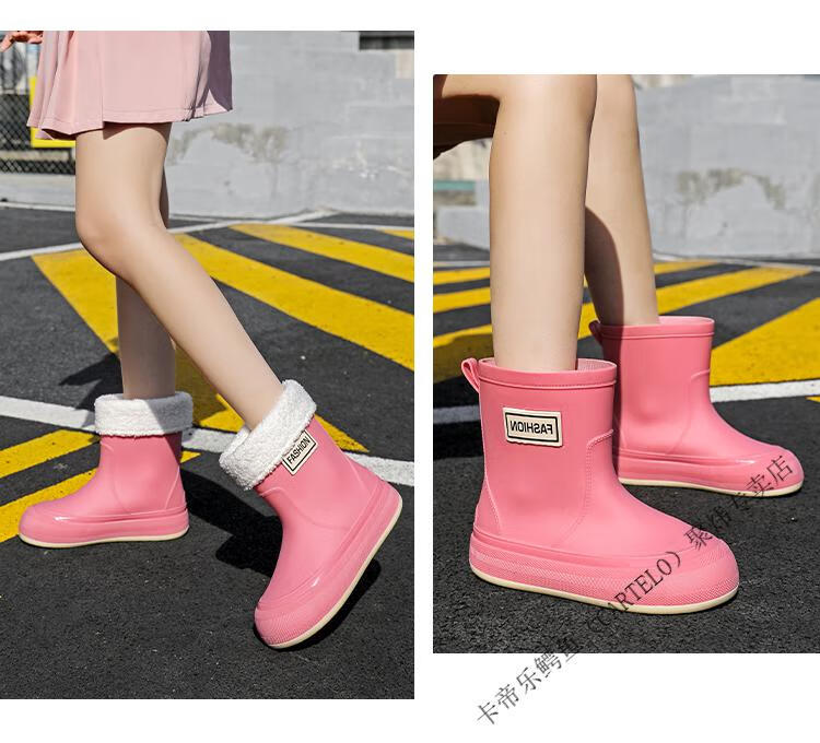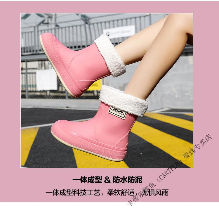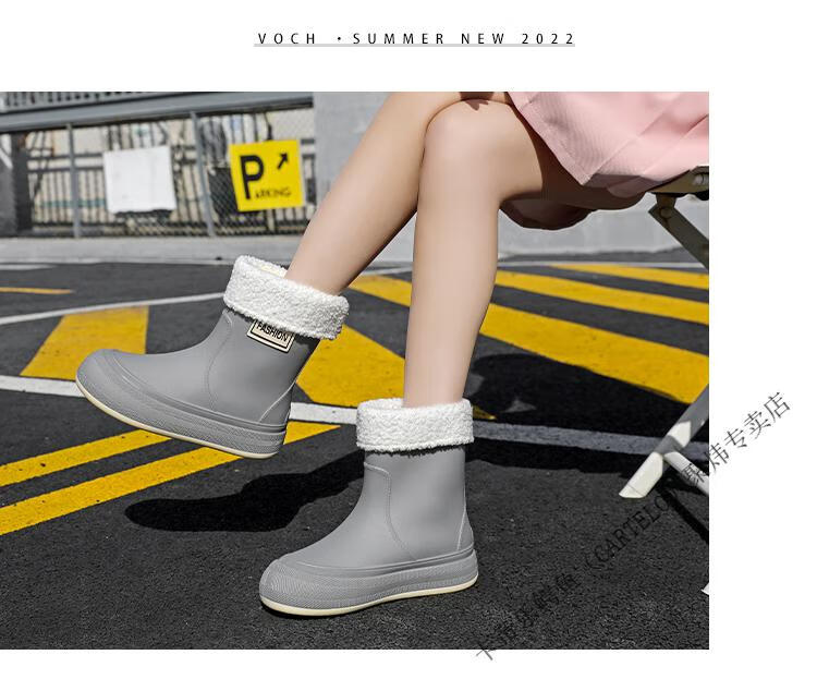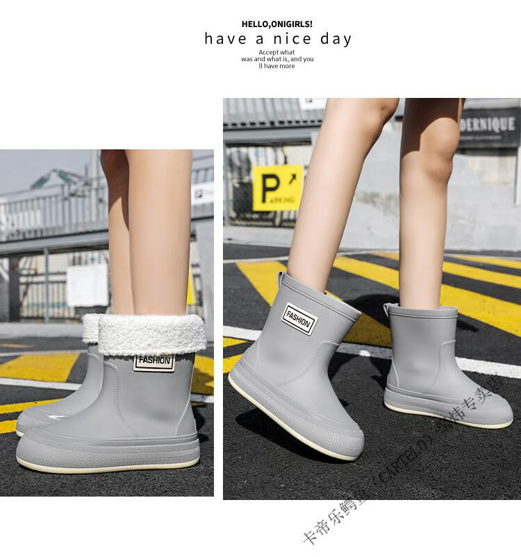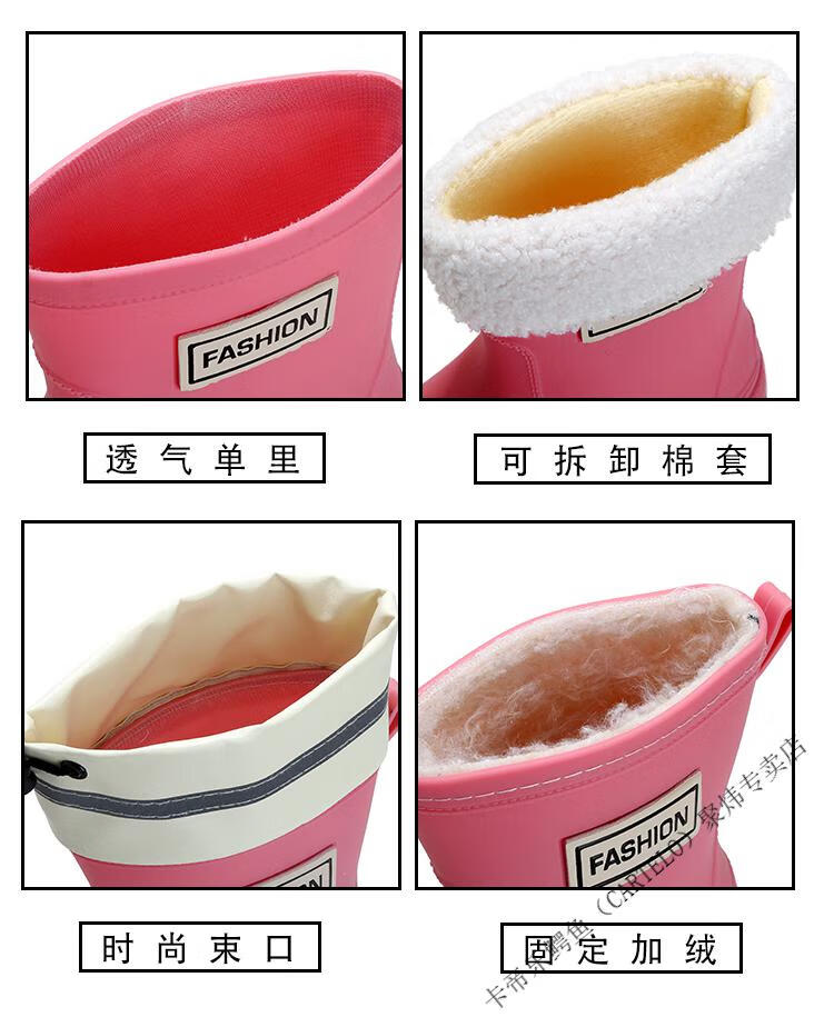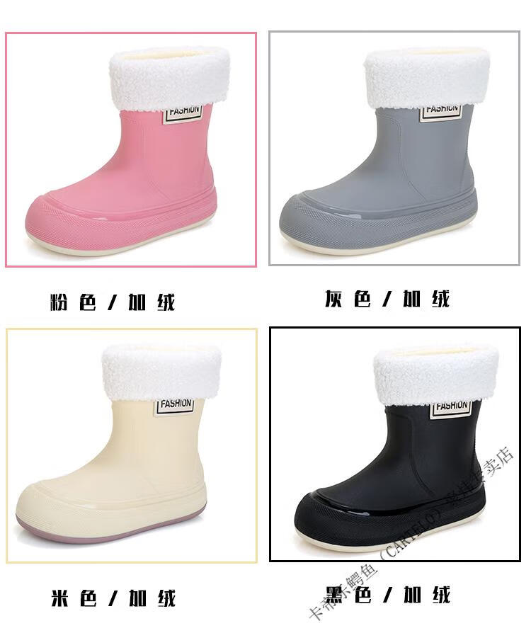 卡帝乐鳄鱼(CARTELO)冬季棉雨鞋女款一体加绒保暖防水鞋防滑工作胶鞋软底轻便雨靴收口 米白【加绒套 可拆】 需要拍大1 36 37