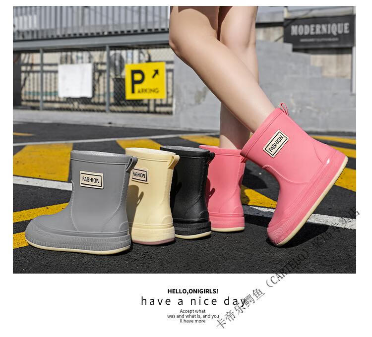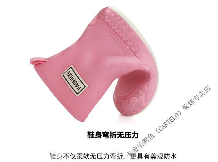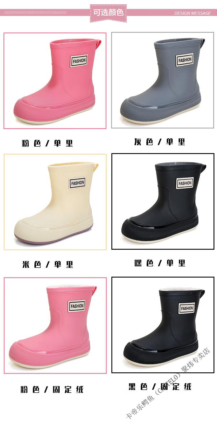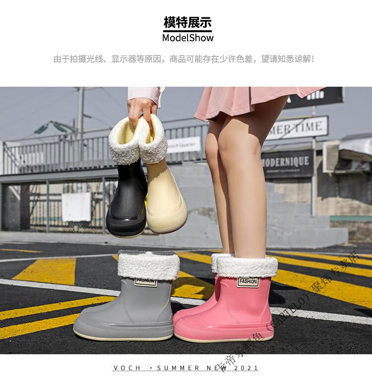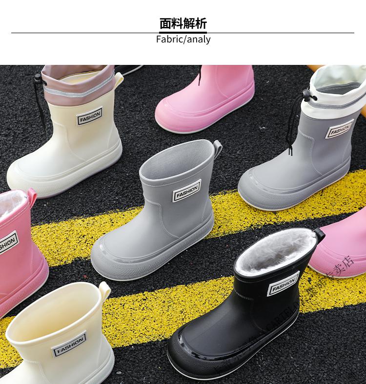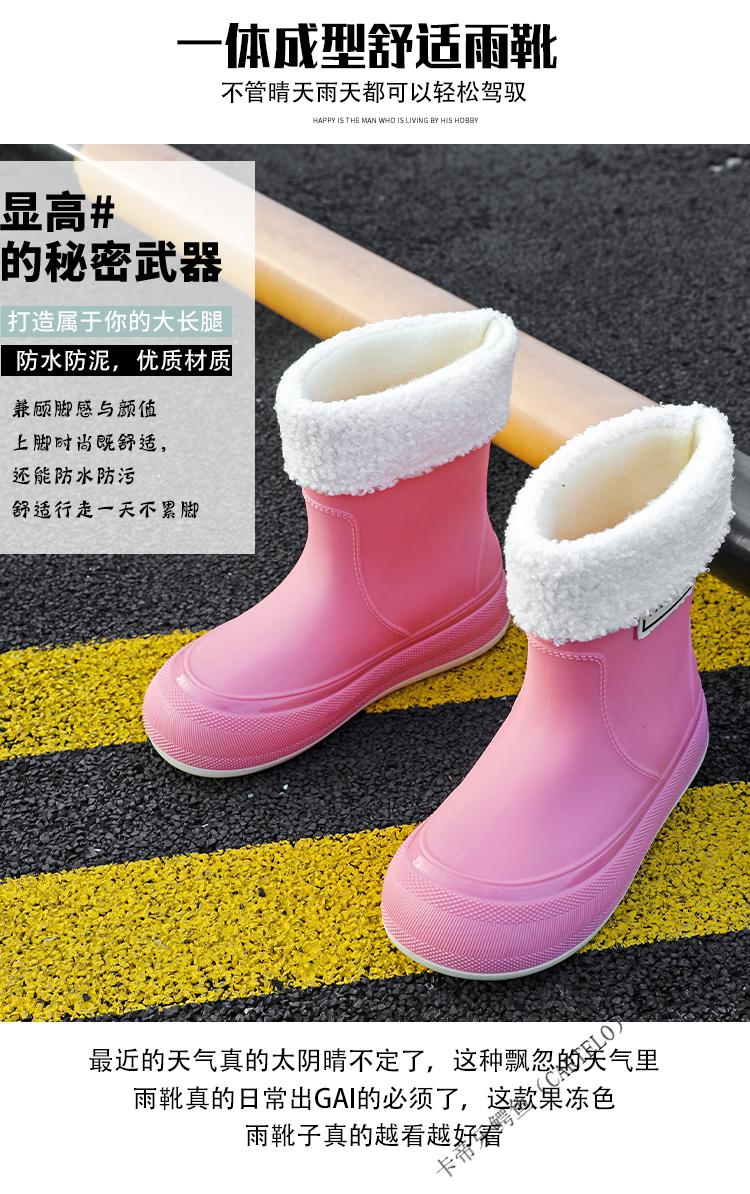 卡帝乐鳄鱼(CARTELO)冬季棉雨鞋女款一体加绒保暖防水鞋防滑工作胶鞋软底轻便雨靴收口 米白【加绒套 可拆】 需要拍大1 36 37