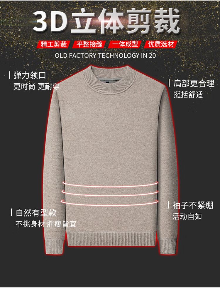 恒源祥冬季半高领毛衣男高领加绒加厚保暖针织衫雪貂绒超厚打底衫简奢风 9887深灰色 可翻高领城市轻时尚 M 165 90斤-110斤