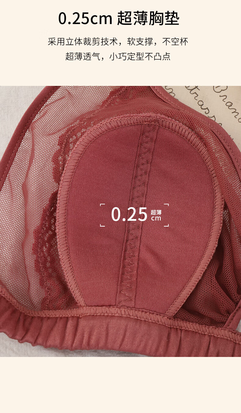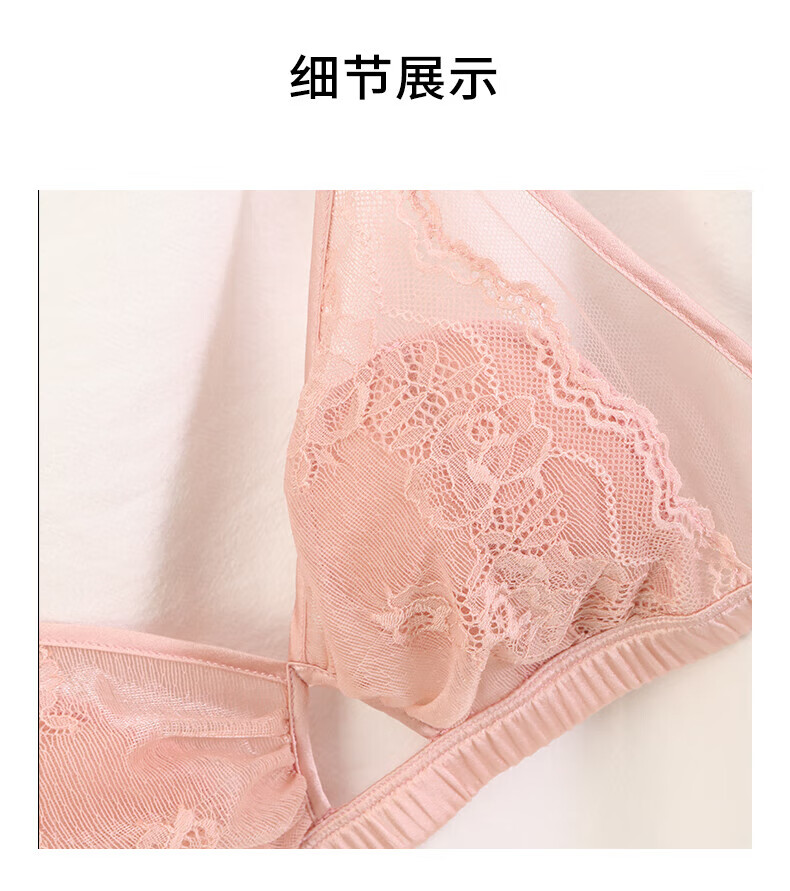 金三塔真丝内衣女桑蚕丝蕾丝网纱拼接薄透气无钢圈文胸内衣 油灰粉9716 M