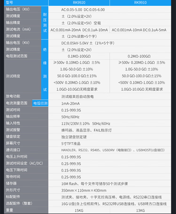 Merrick RK9920S programmgesteuerter AC- und DC-Spannungsisolationstester mit Kontaktprüffunktion, RK9910 Spannungsisolationsprüfer RK9920 ohne Kontaktprüffunktion
