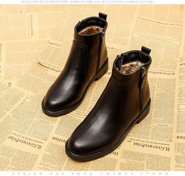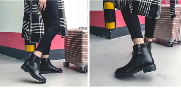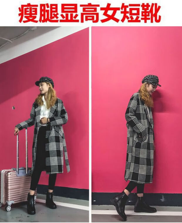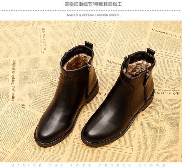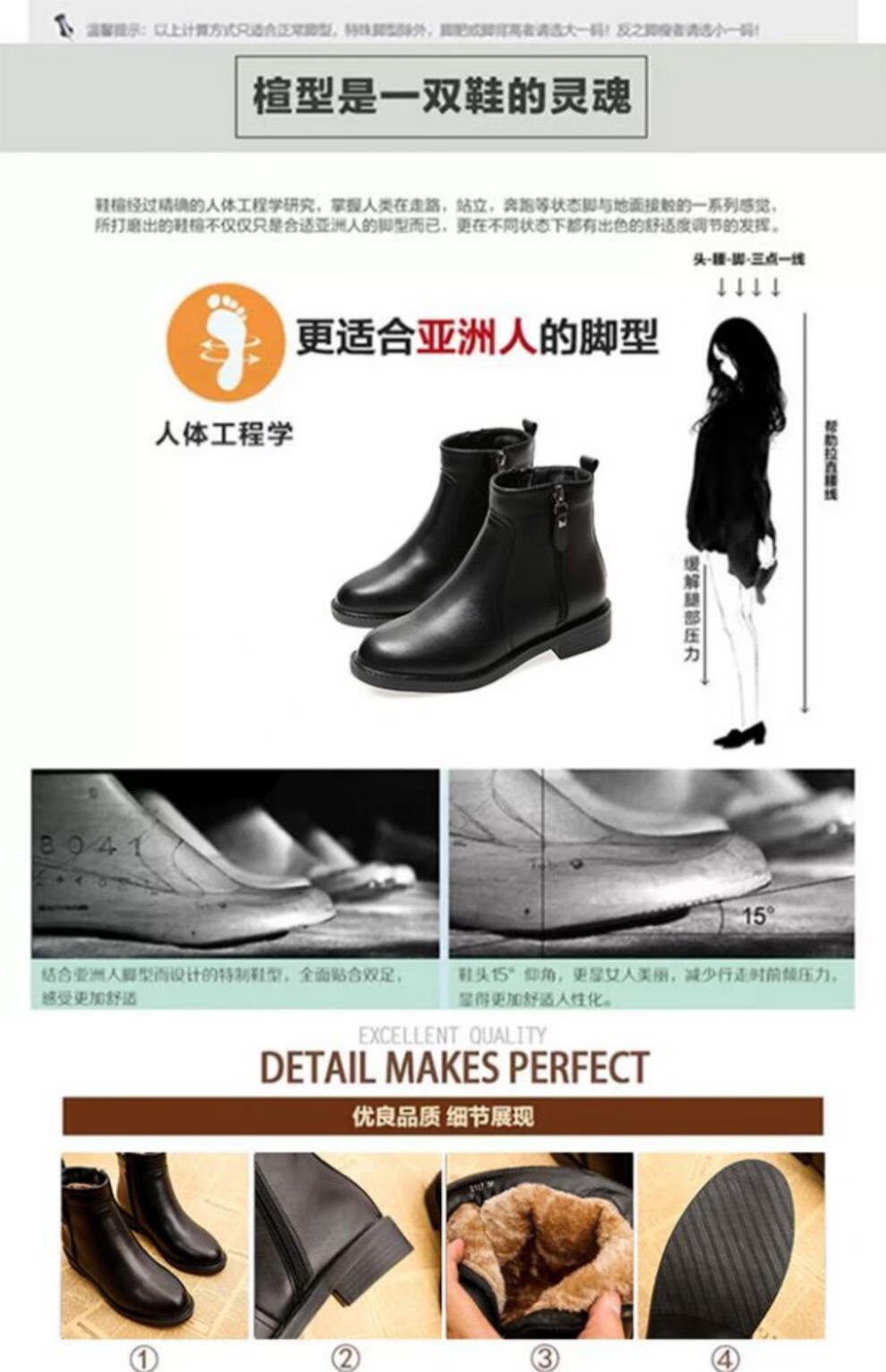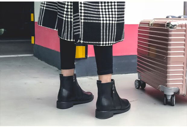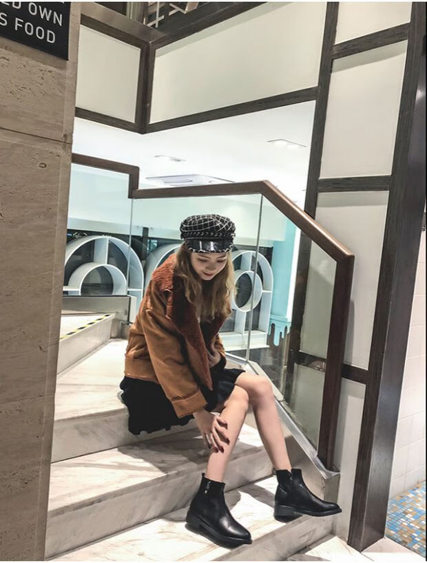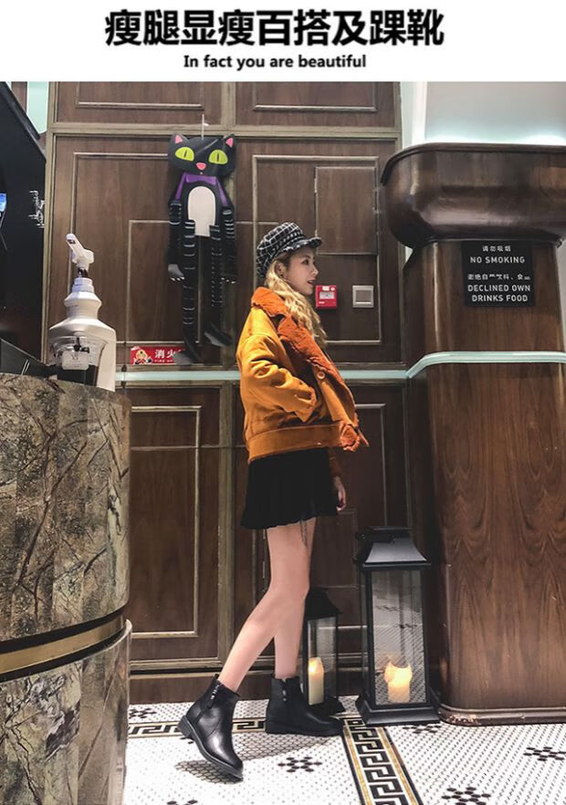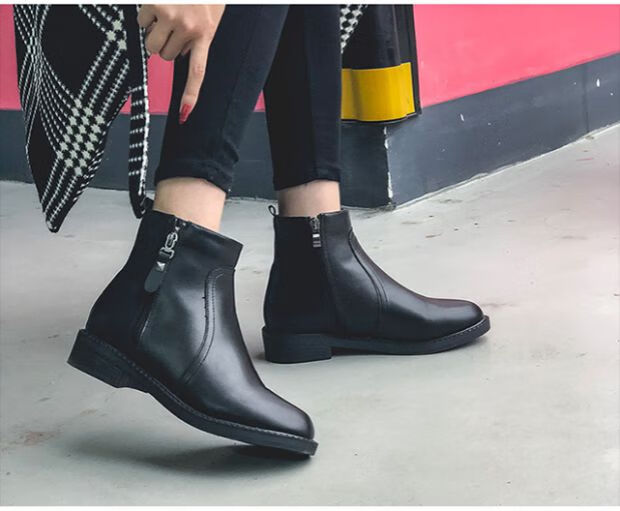 百丽踏靴子女短靴加绒马丁靴百搭平底女靴大码41秋冬皮女鞋裸靴 黑色厚绒 37