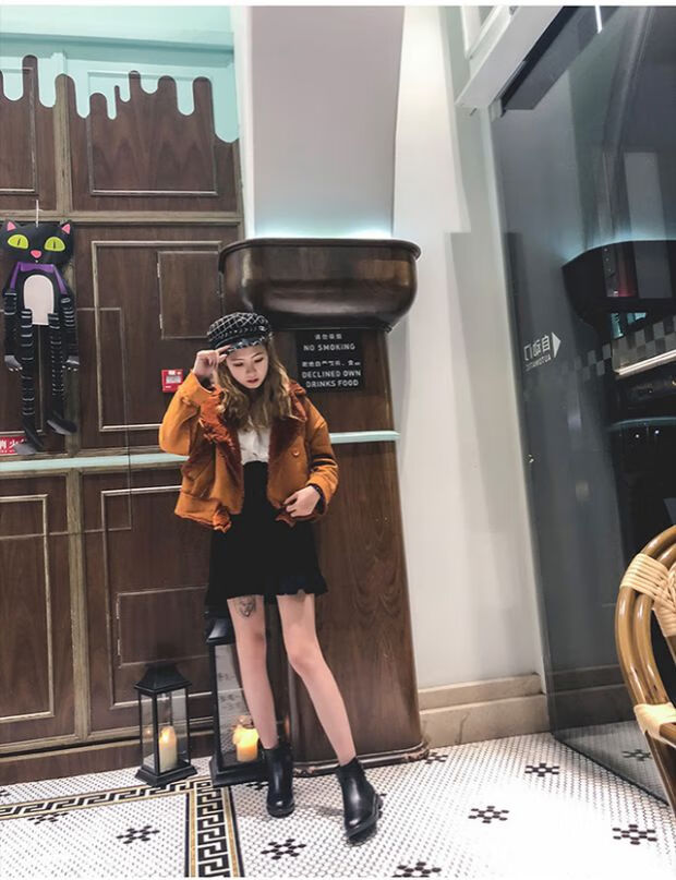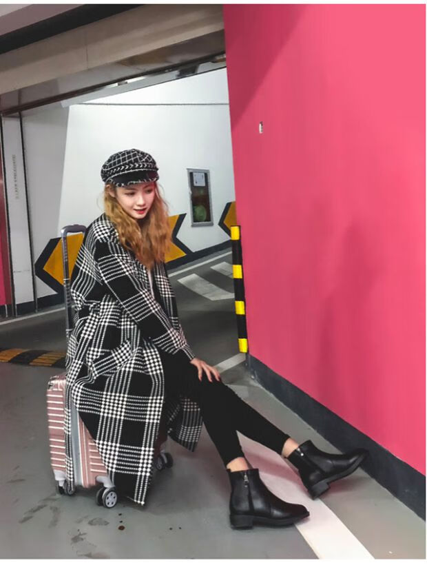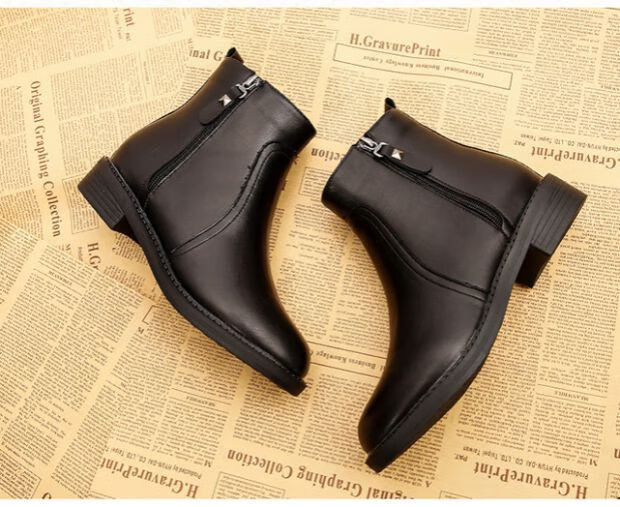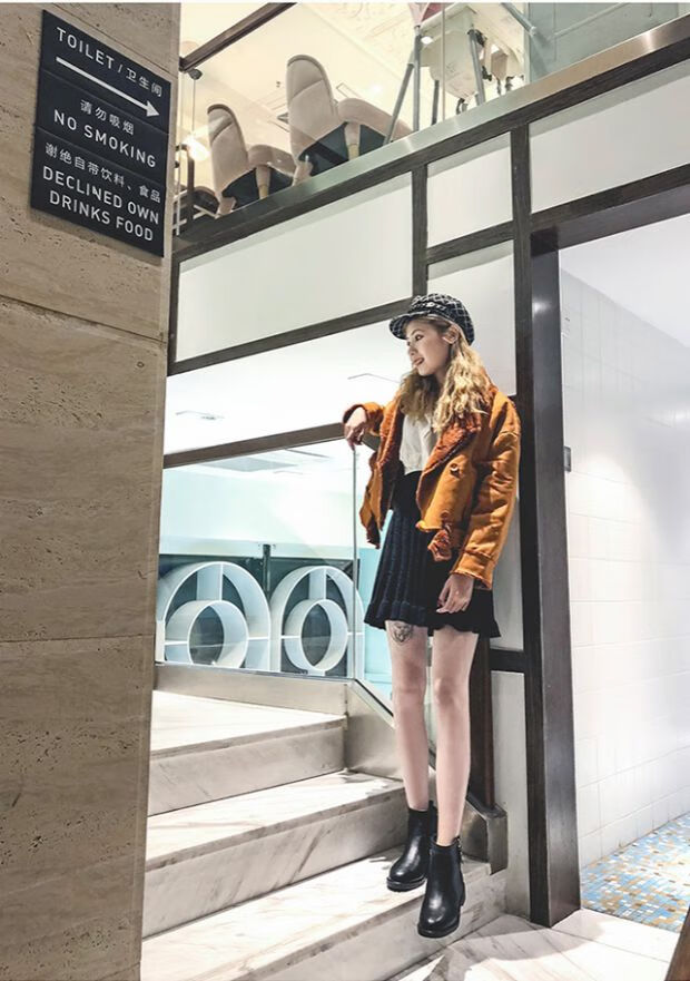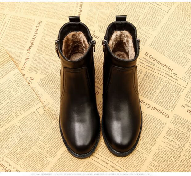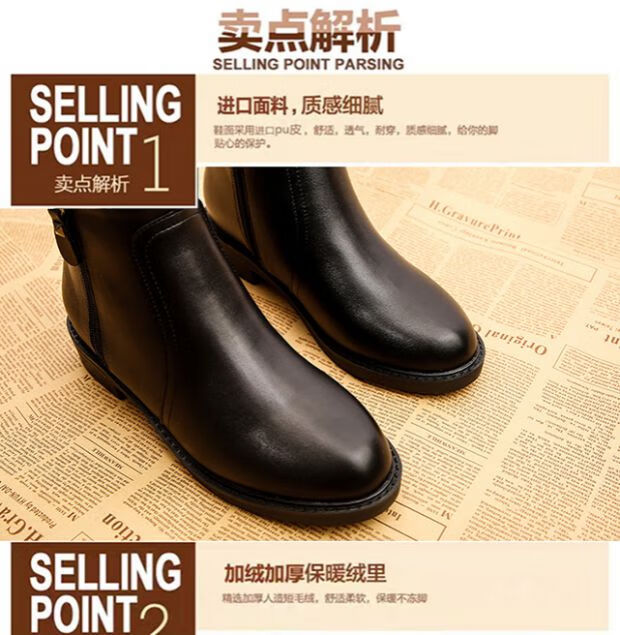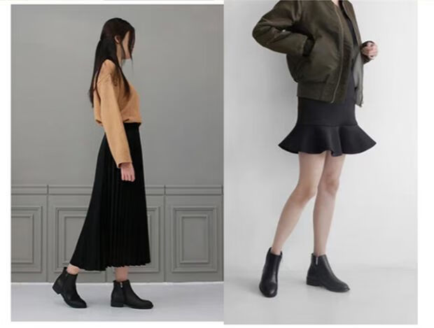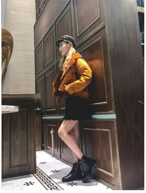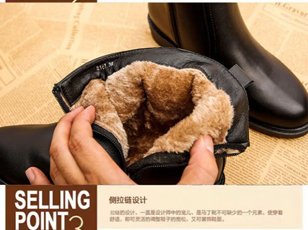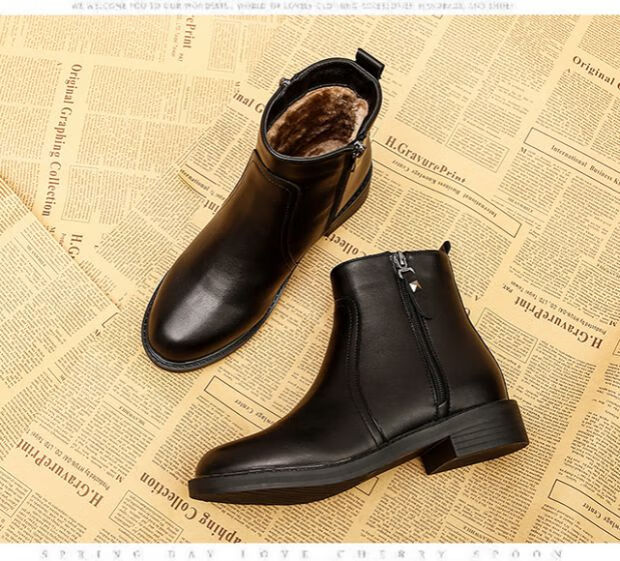 百丽踏靴子女短靴加绒马丁靴百搭平底女靴大码41秋冬皮女鞋裸靴 黑色厚绒 37