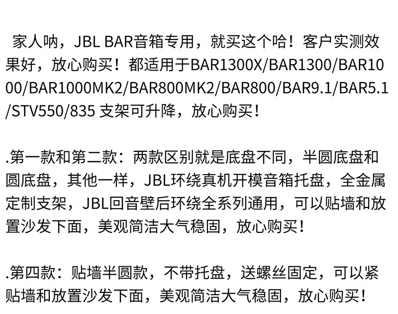 JEQLO eignet sich für die JBL Audio-Halterung BAR1300X, Satelliten-Wand-Bodenständer-Surround BAR9.1, die JBL835-Halterung, BAR1000, das BAR800-Stativ und das JBL 835-Halterungspaar