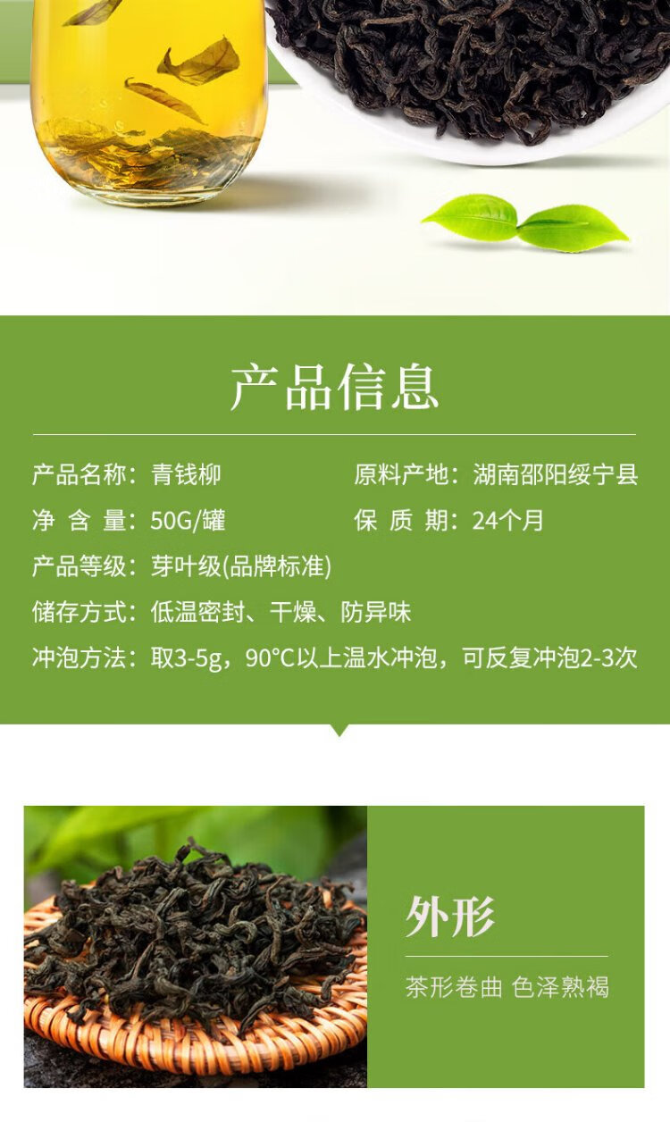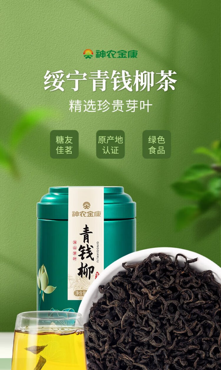 Shennong Jinkang Ancient Tree Buds and Leaves Qingqianliu Tea 50g/can Original Ecological Truly Nourishing Suining Qingqianliu Tea Selected and Precious 50g*5 Cans