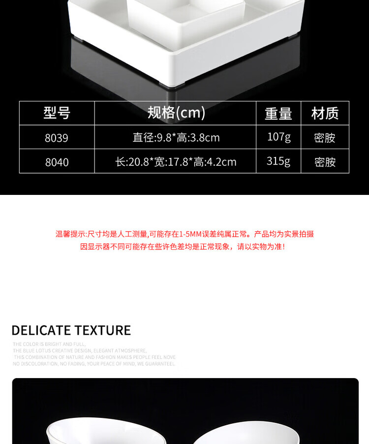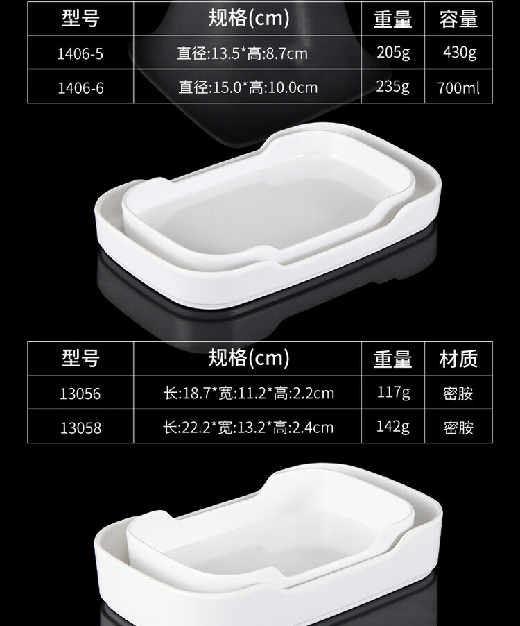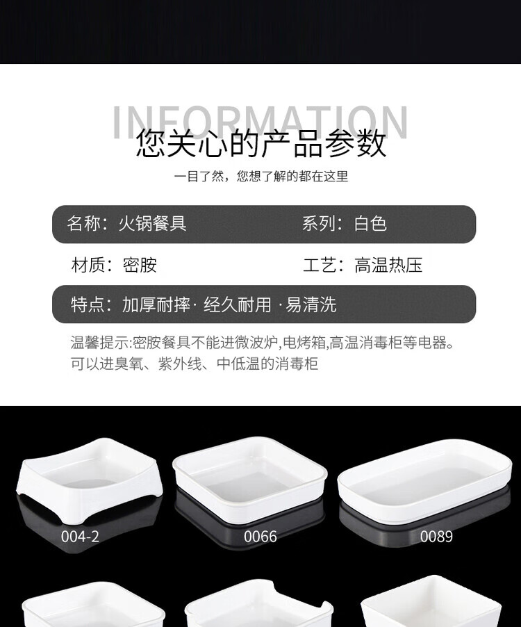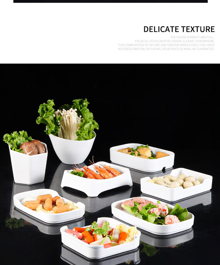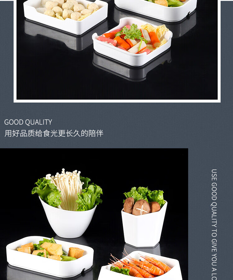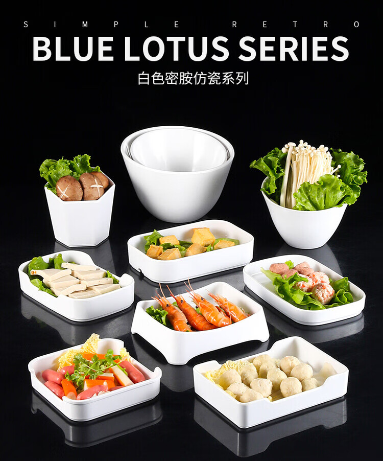 凯柏雅密胺火锅盘子白色塑料仿瓷餐具烧烤自助烤肉餐盘配菜盘可叠加商用 13062白色