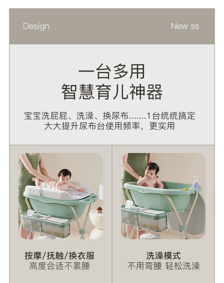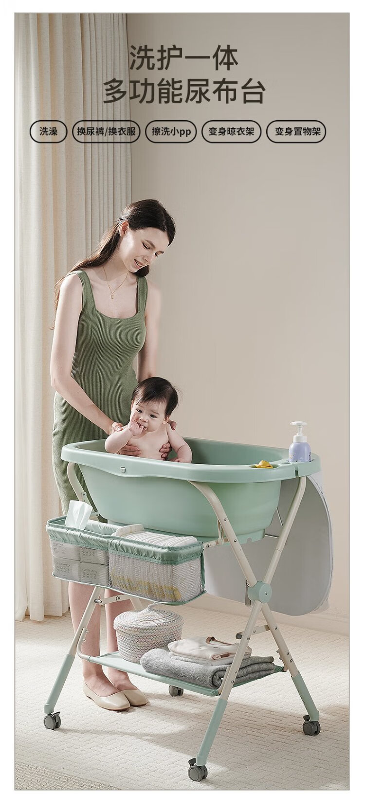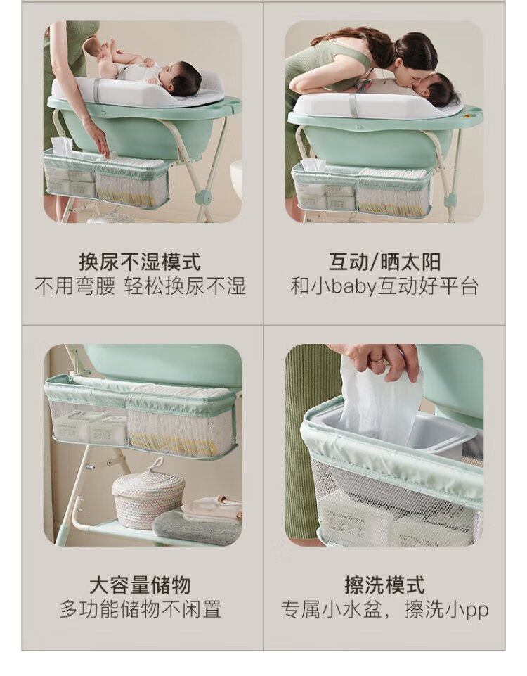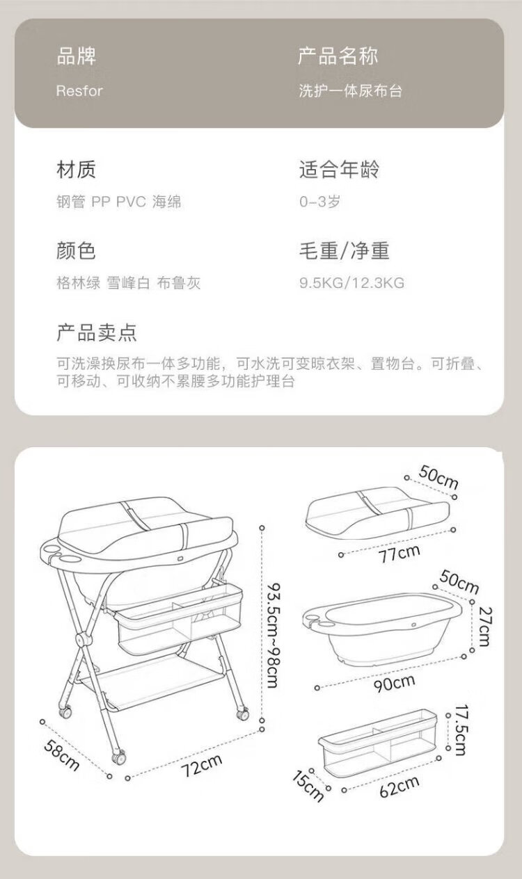 RESFOR Windeltisch, Babypflegetisch, multifunktionaler Operationstisch, Neugeborenen-Berührungstisch, Babybaden, Windelwechseltisch, Empfehlung des Elternzentrums, Xuefeng White-Wash and Care 2-in-1-Pflegetisch