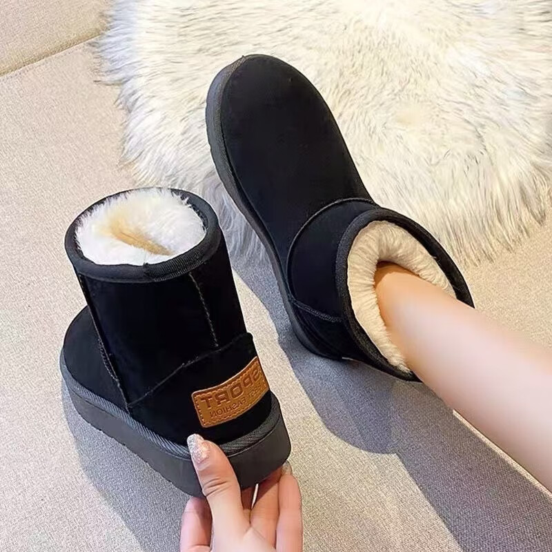 特厚雪地靴女新款冬季加绒加厚东北雪地棉防滑保暖超厚棉鞋子 黑色 38 建议拍大一码