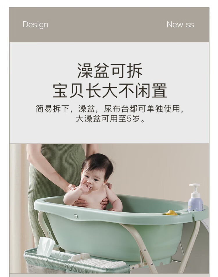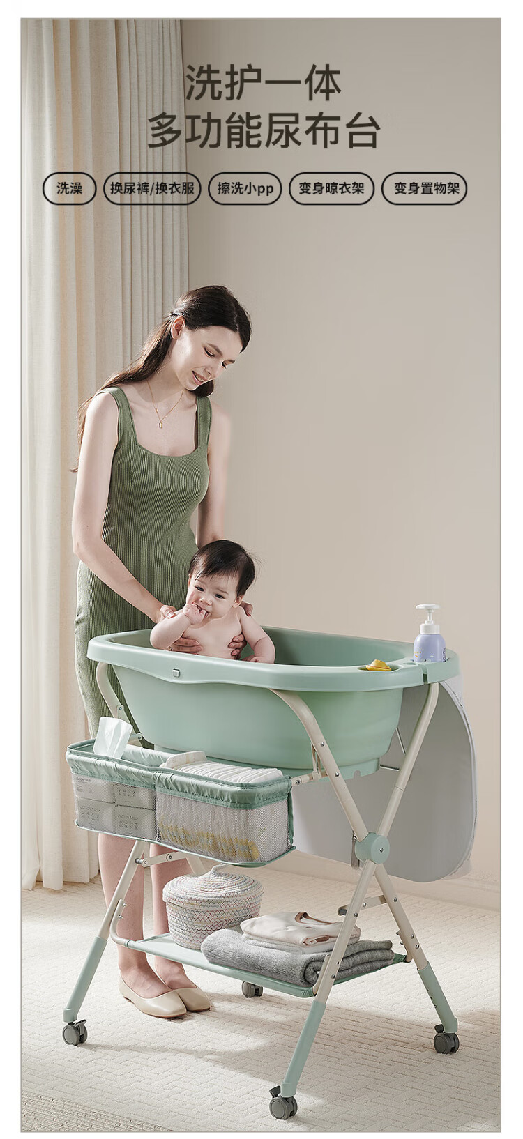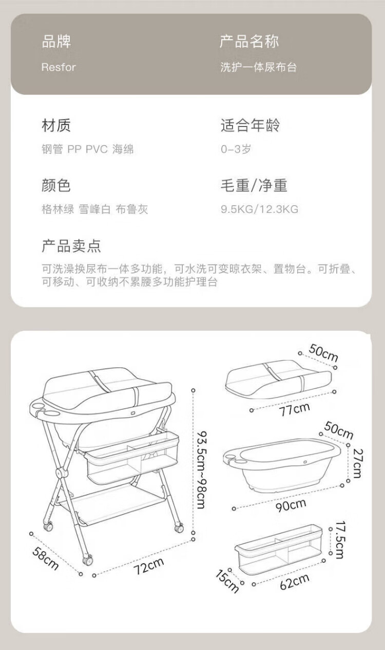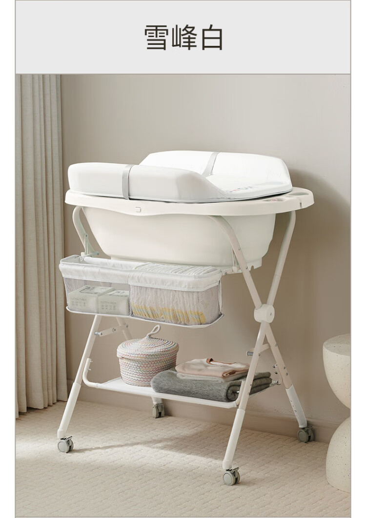 RESFOR尿布台婴儿护理台多功能操作台新生儿抚触台宝宝洗澡换尿布台 雪峰白丨洗澡护理二合一