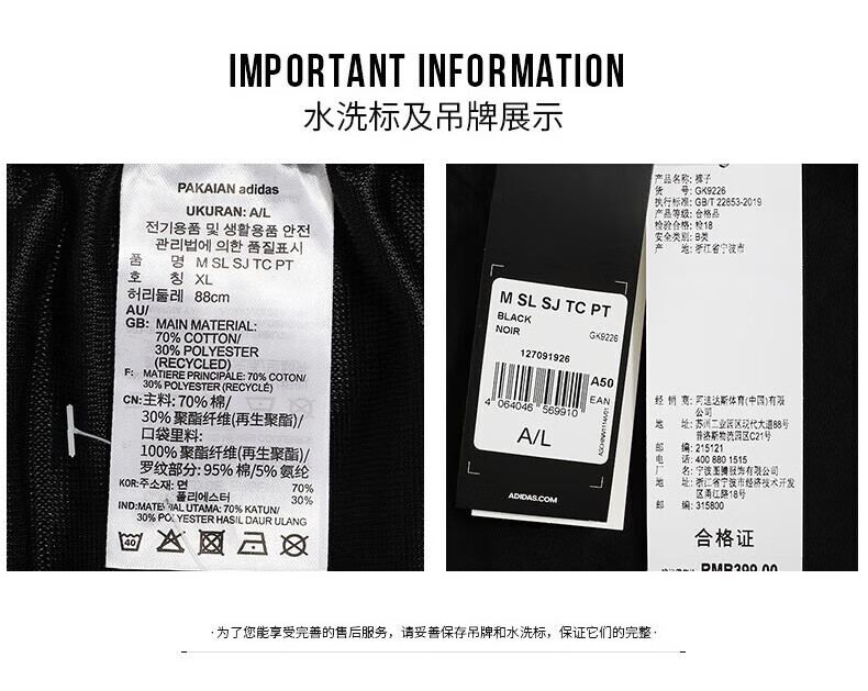 阿迪达斯(adidas)长裤男裤新款运动束脚收口休闲裤 GK9226 GK9226 XL