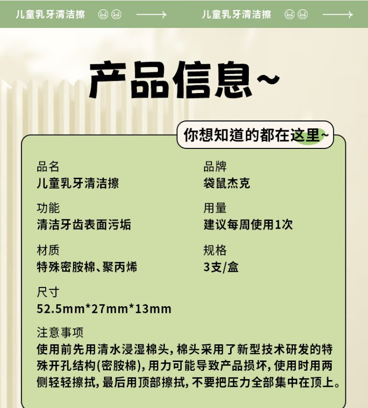 Limpiador de dientes especial para niños Kangaroo Jack elimina el sarro, manchas de dientes negros, elimina la placa dental borrador para eliminar los dientes amarillos y blancos brillantes, limpiador de dientes nano especial para niños 3 piezas/caja
