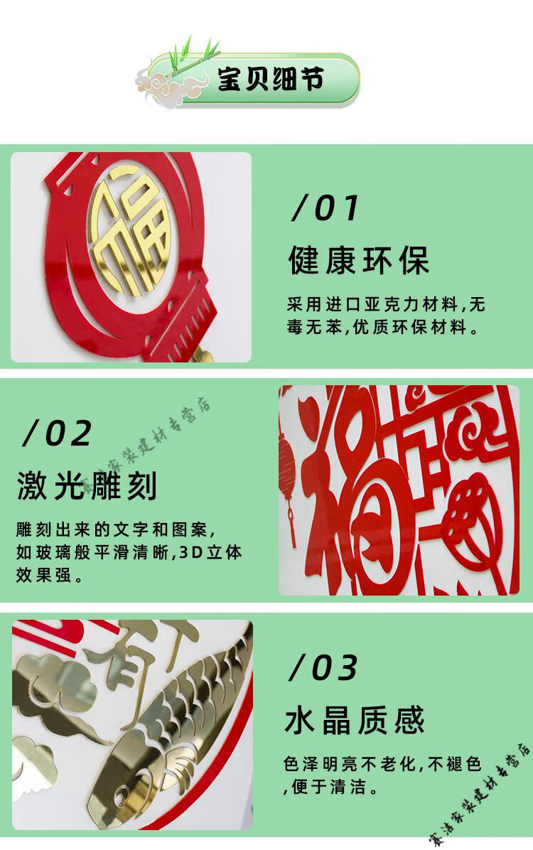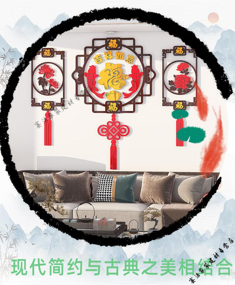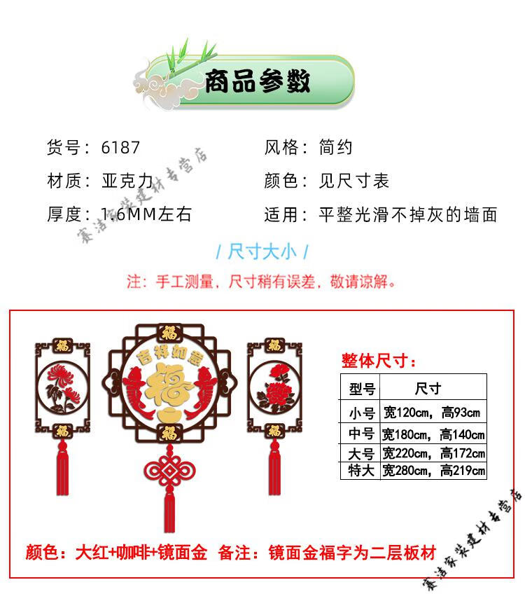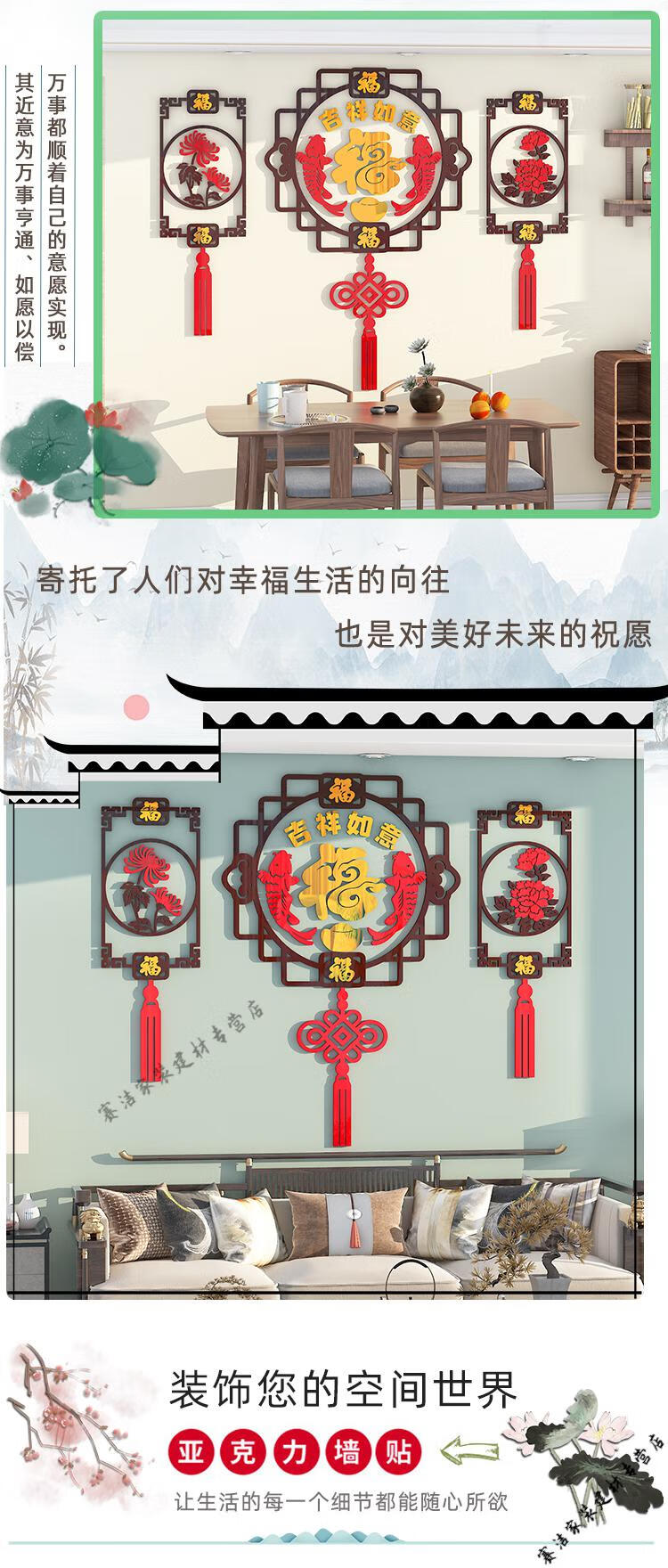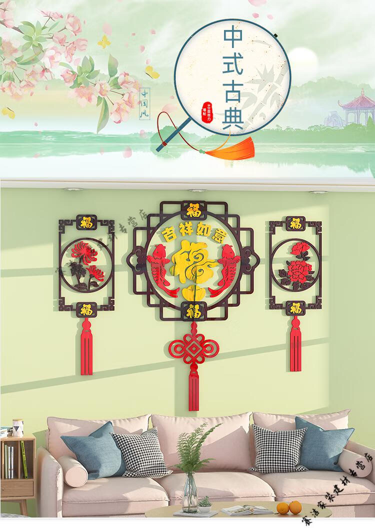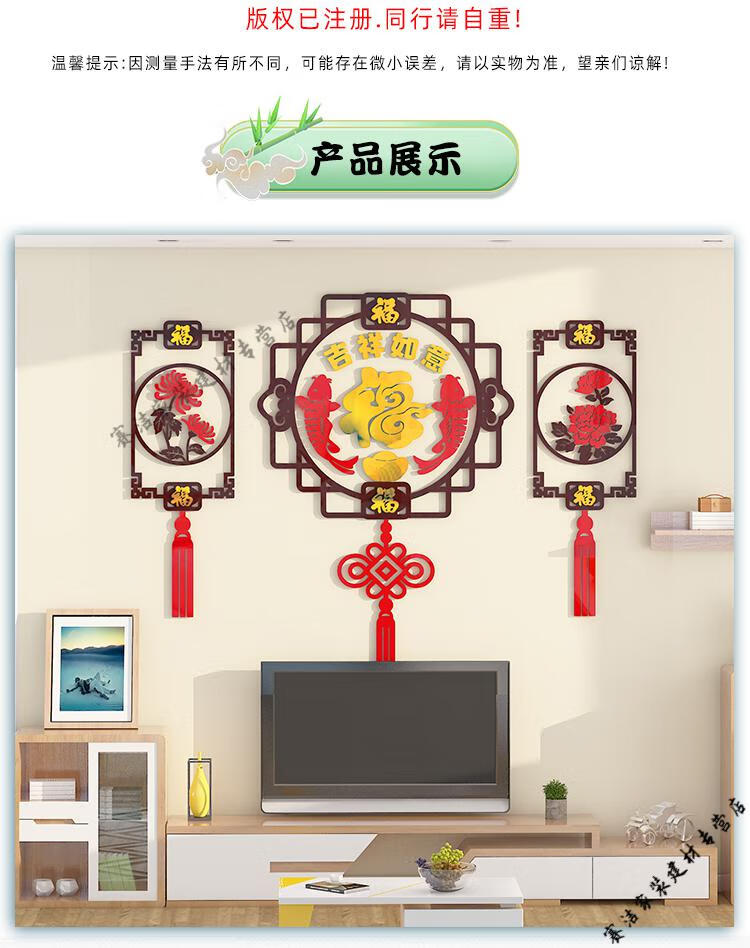 2025新款家和万事兴福字墙贴3d立体墙面装饰新年春节中式客厅沙发 6187A 特大