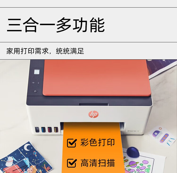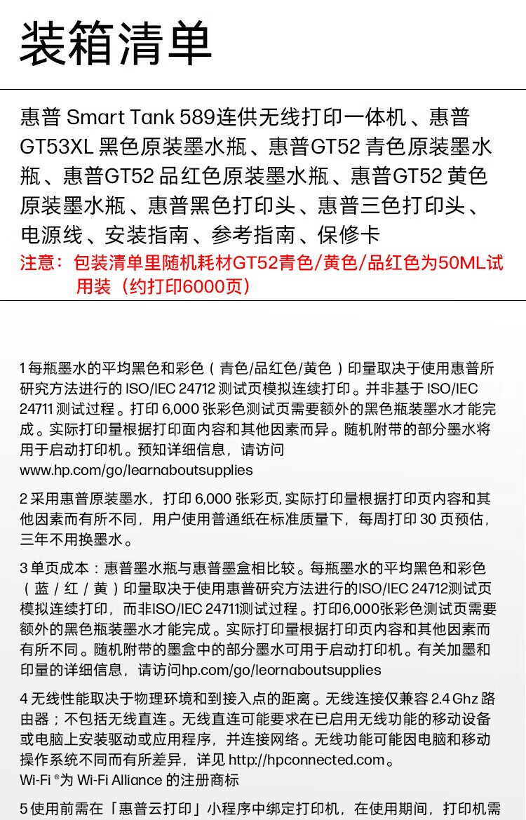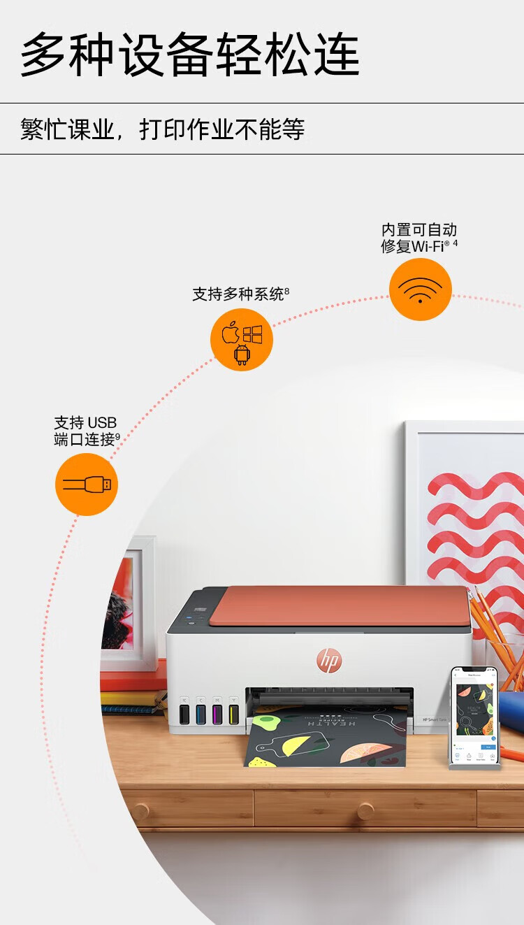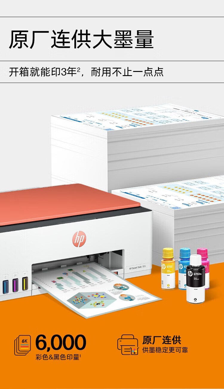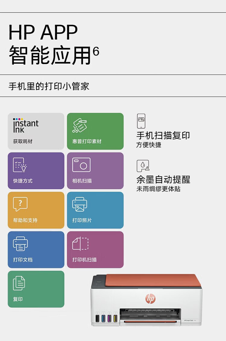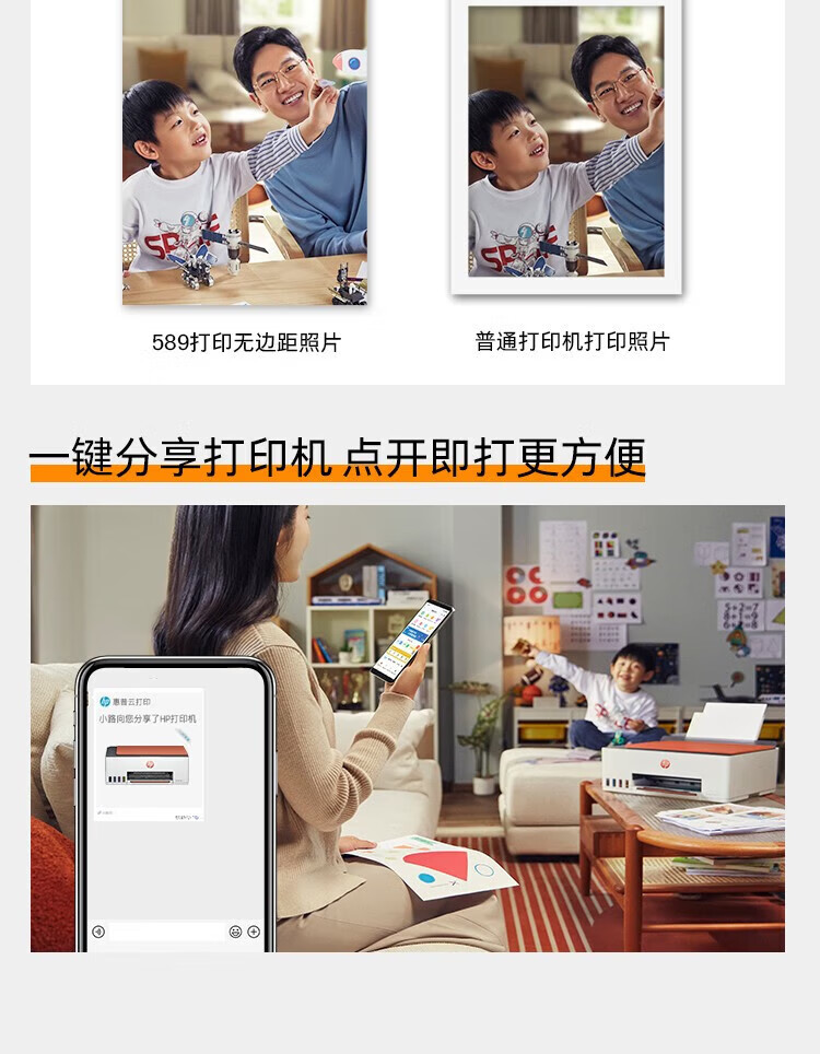 惠普589无线彩色喷墨连供一体机手机打印复印扫描多功能办公家用A4作业低成本照片新款大墨仓519升级 【三年联保】tank589(无线打印复印扫描一体) 官方标配(原装连供打印机/自带一套墨水)