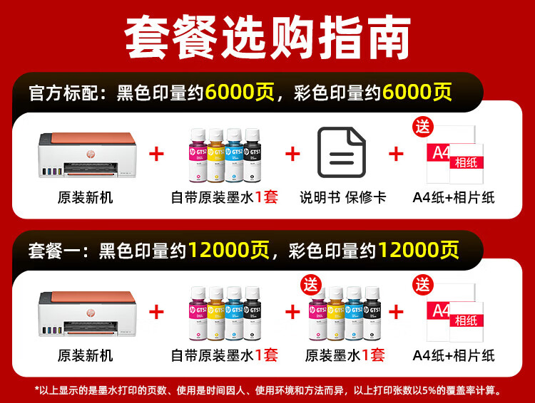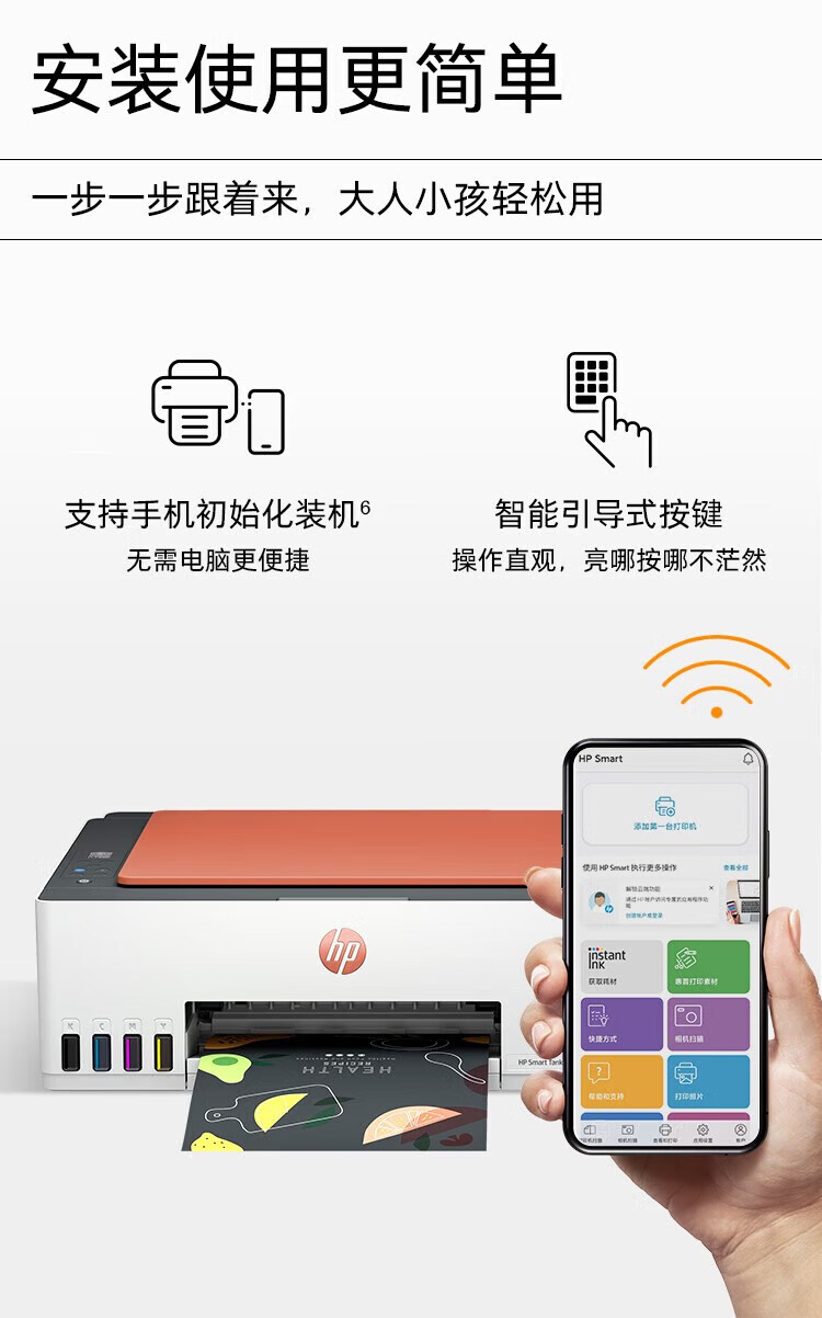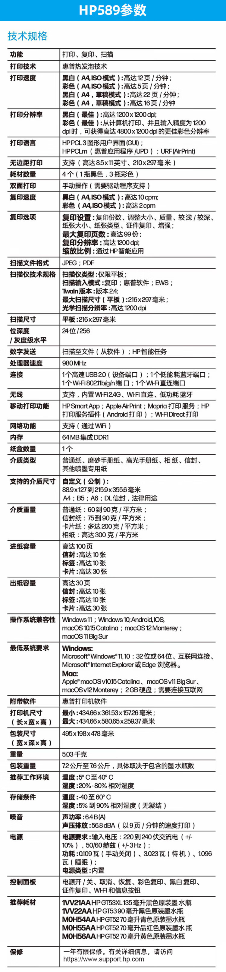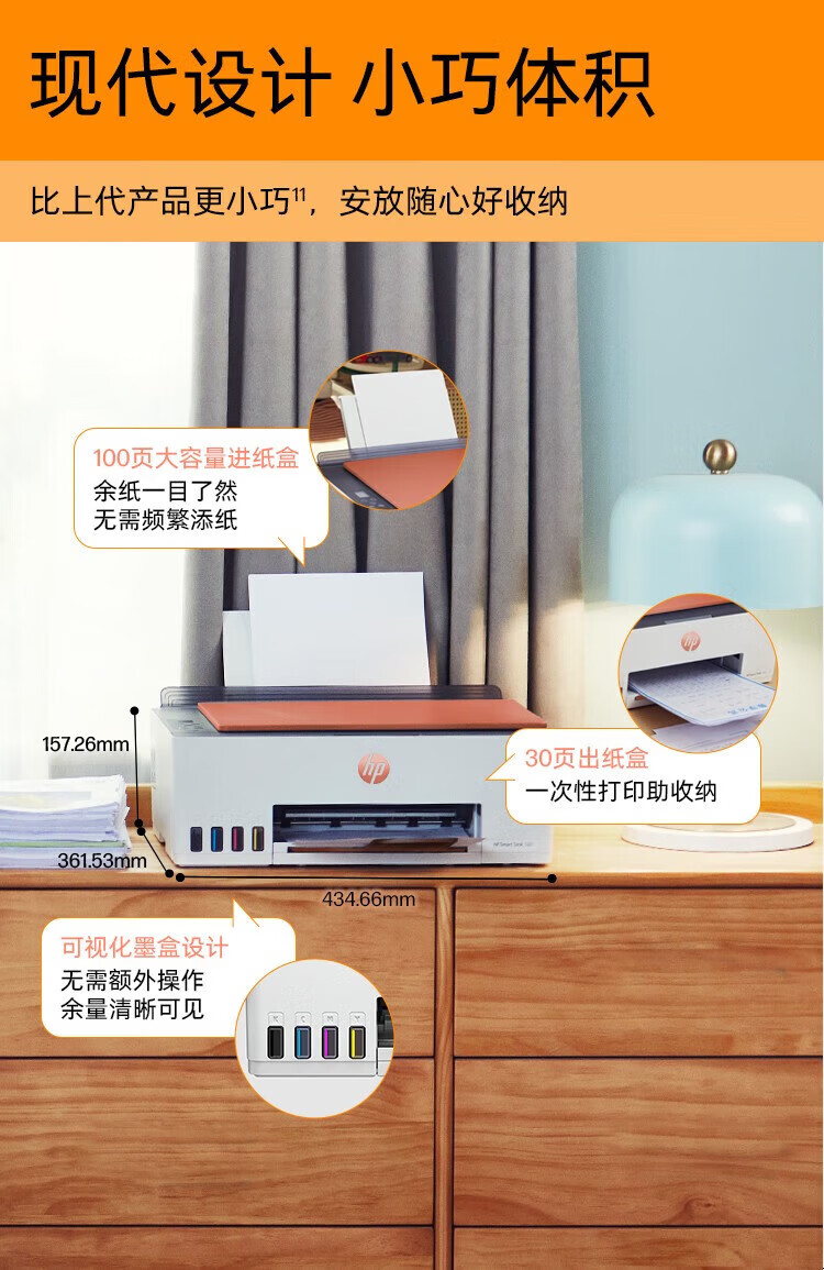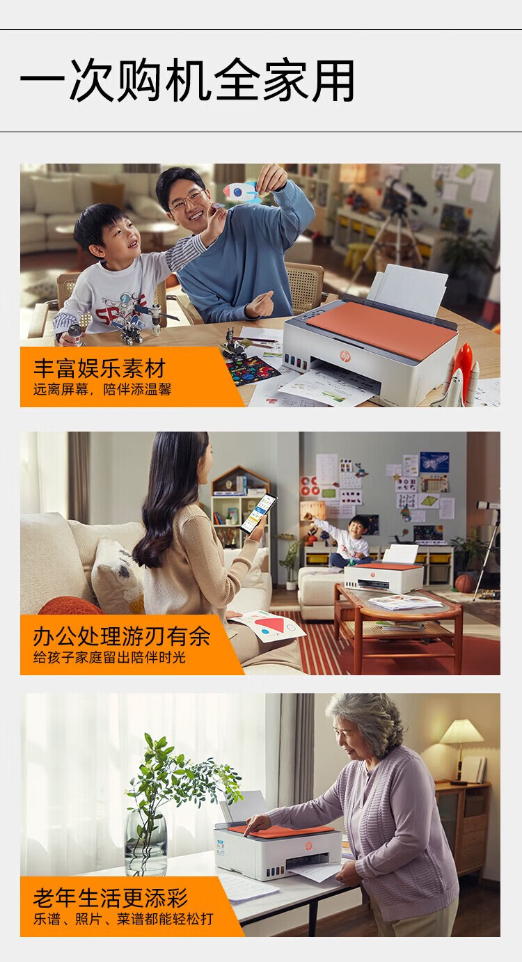 惠普589无线彩色喷墨连供一体机手机打印复印扫描多功能办公家用A4作业低成本照片新款大墨仓519升级 【三年联保】tank589(无线打印复印扫描一体) 官方标配(原装连供打印机/自带一套墨水)