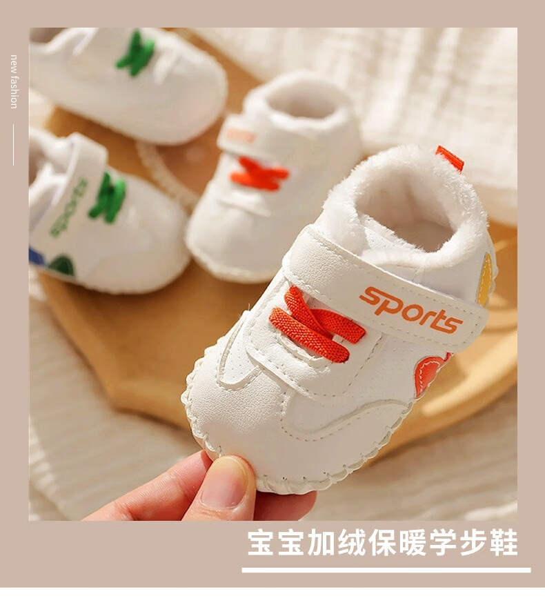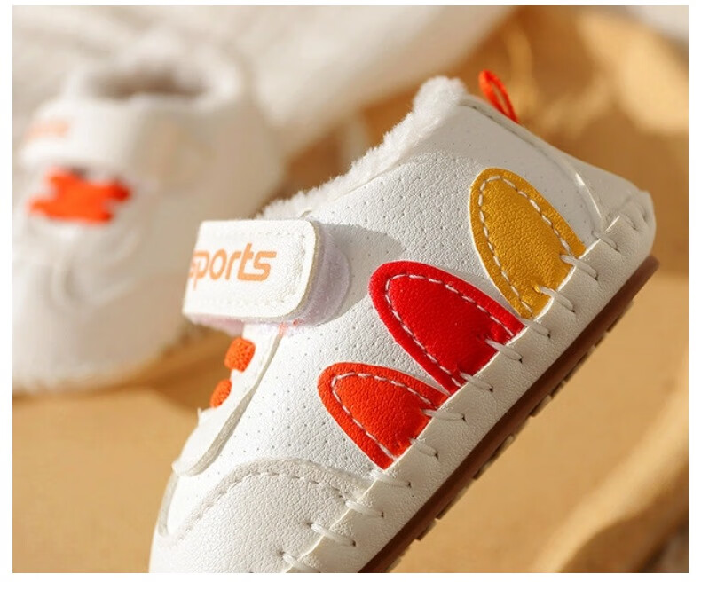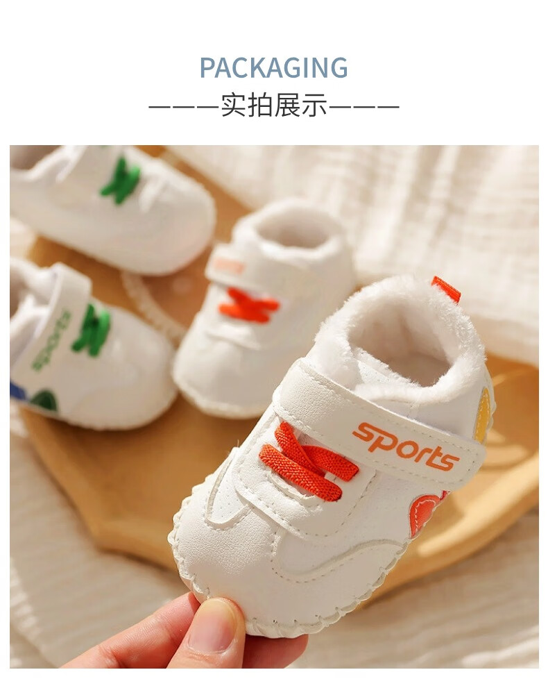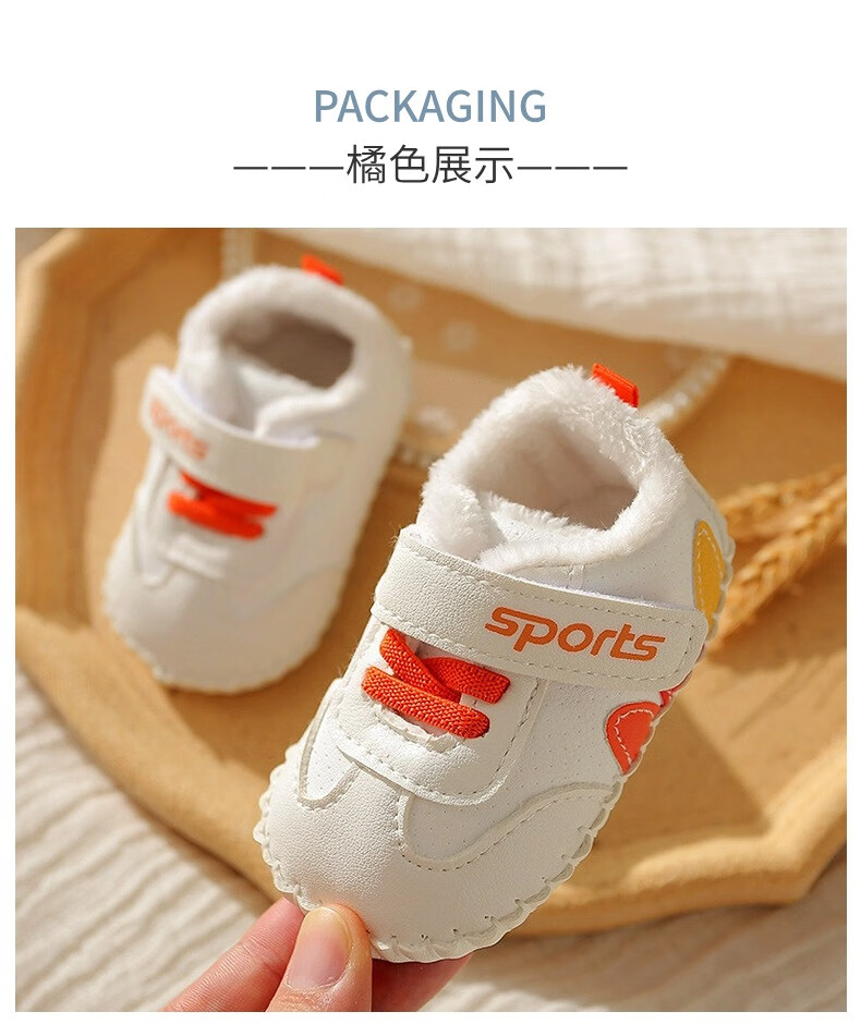 Miduer, осенне-зимняя нескользящая детская обувь для малышей 0–1 года, мужская и женская детская обувь для детей 3–6 месяцев, повседневная и бархатная теплая обувь на мягкой подошве оранжевого цвета (солнечные плюс бархатные туфли), внутренняя длина 11 S, 11 см, рекомендуется для детей 0–6 месяцев