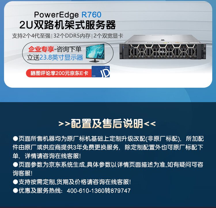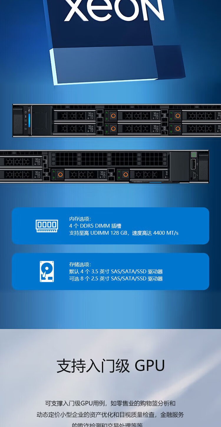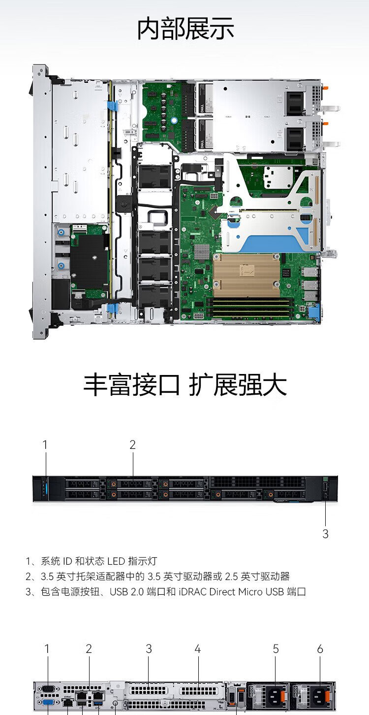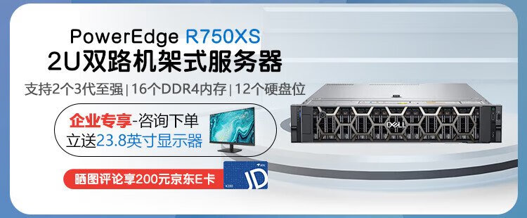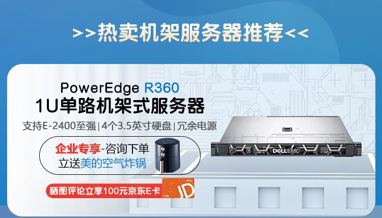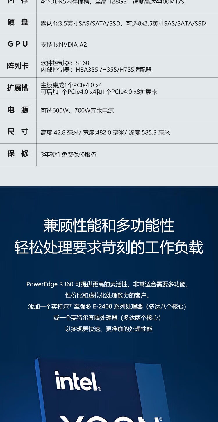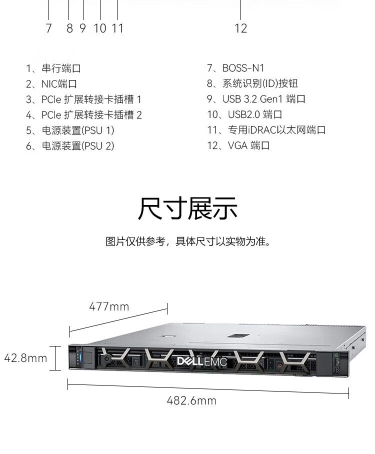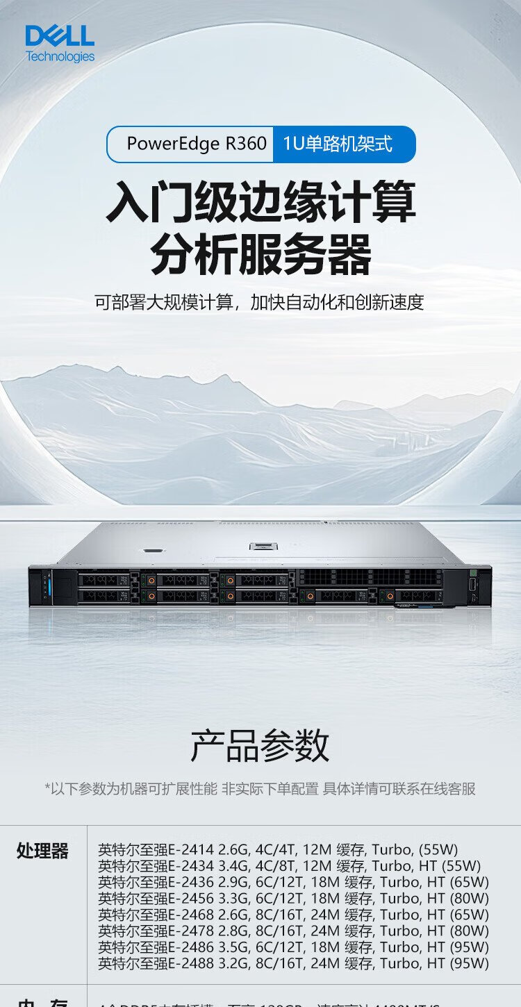 戴尔(DELL)PowerEdge R360 1U机架式服务器主机 可选冗余电源 至强E-2488 8核3.2G丨600W双电 64G内存丨4x2.4TSAS丨H755