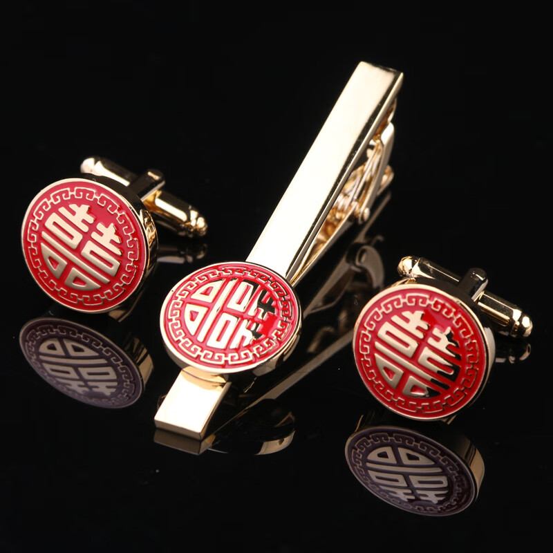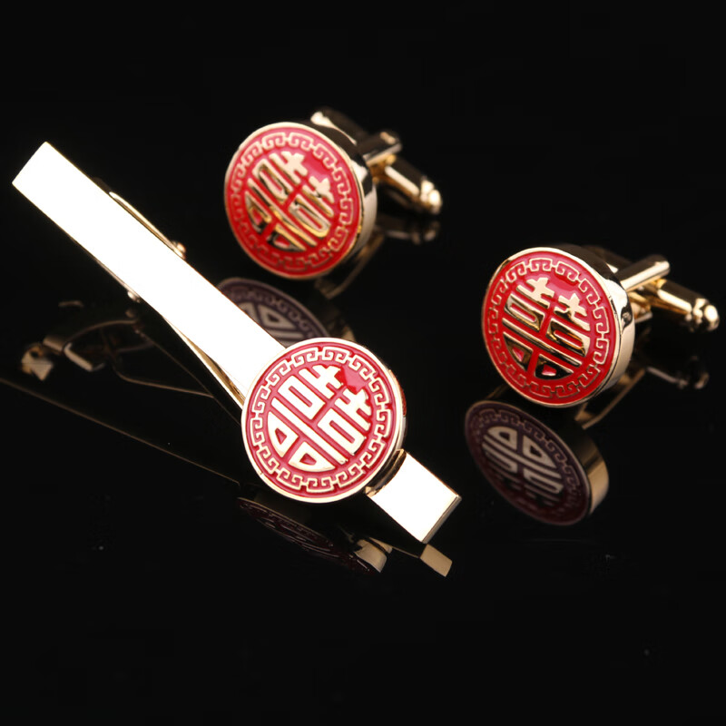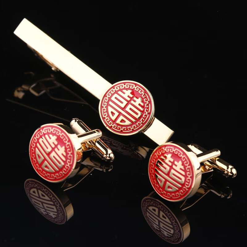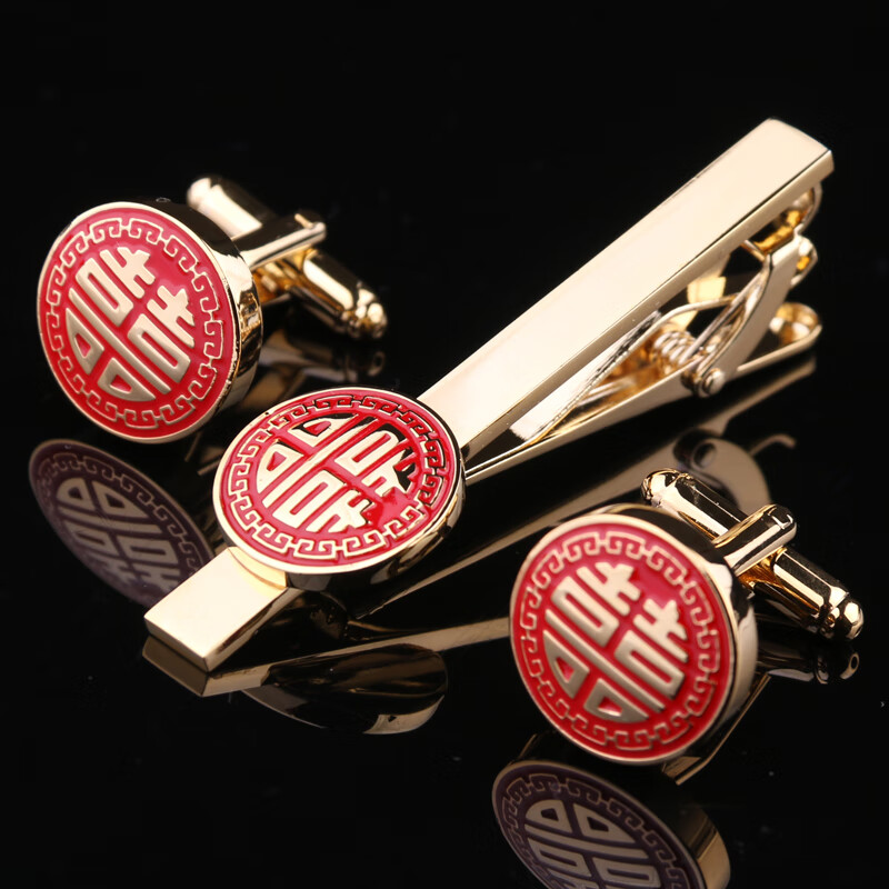 ZOCI Happy Word Krawattenklammer Manschettenknöpfe Herren Hochzeit Festliche Manschette Hemdnägel Bräutigam Anzug Schnalle Herren Krawattenklammer Box Set Happy Word Manschettenknöpfe + Happy Word Krawattenklammer Gold