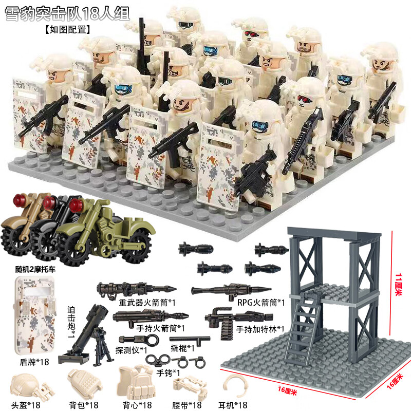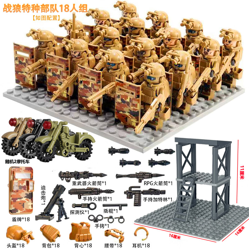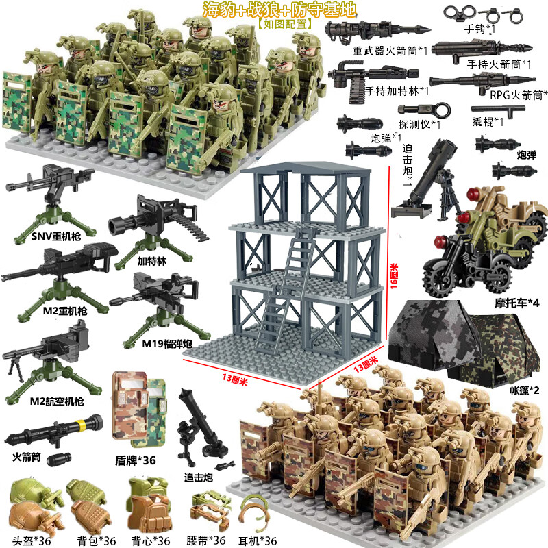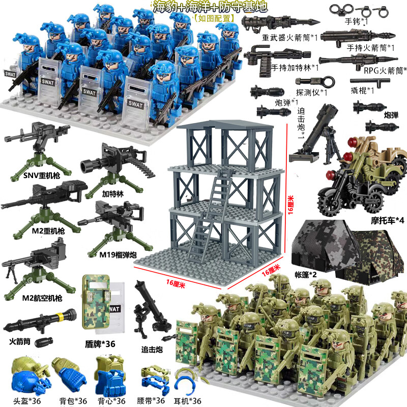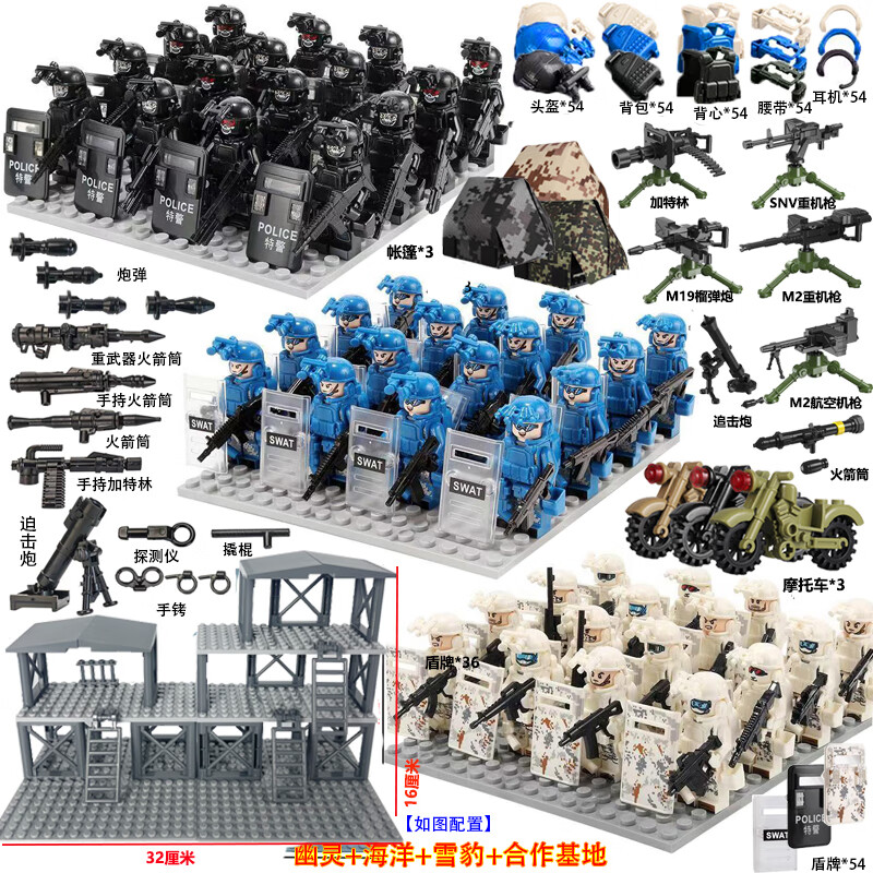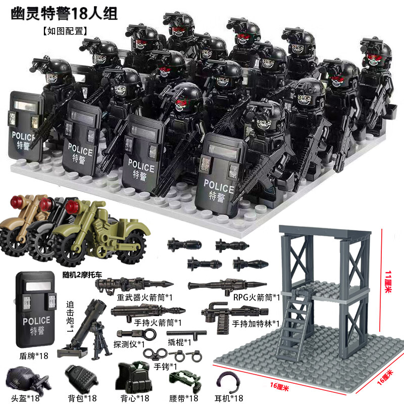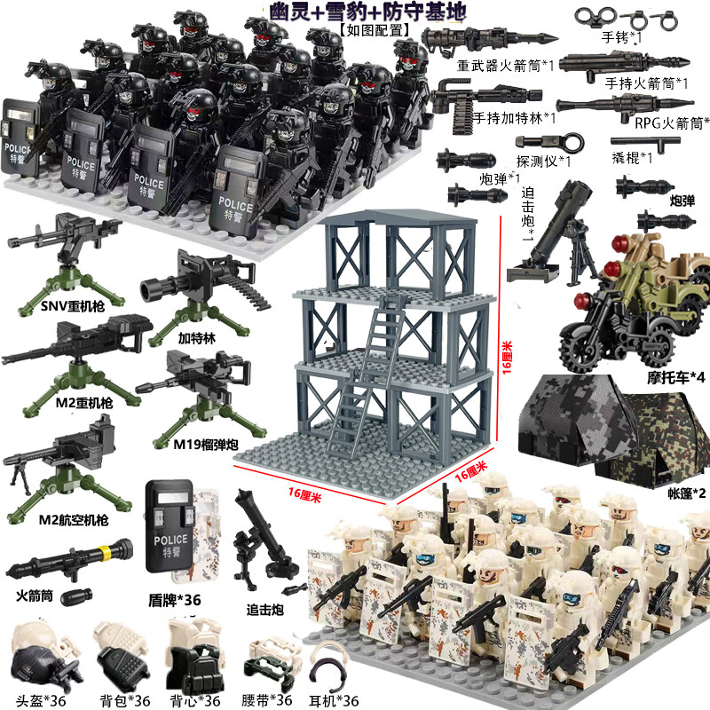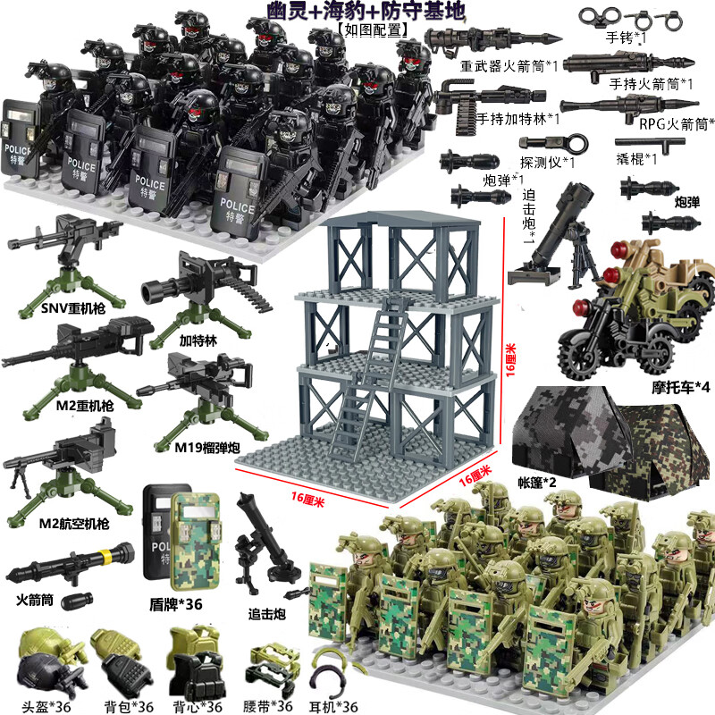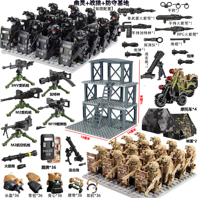 乐 高特种兵军事积木人仔特警武装哨塔场景重机枪装备拼装玩具 幽灵特警+战狼部队+基地+武器