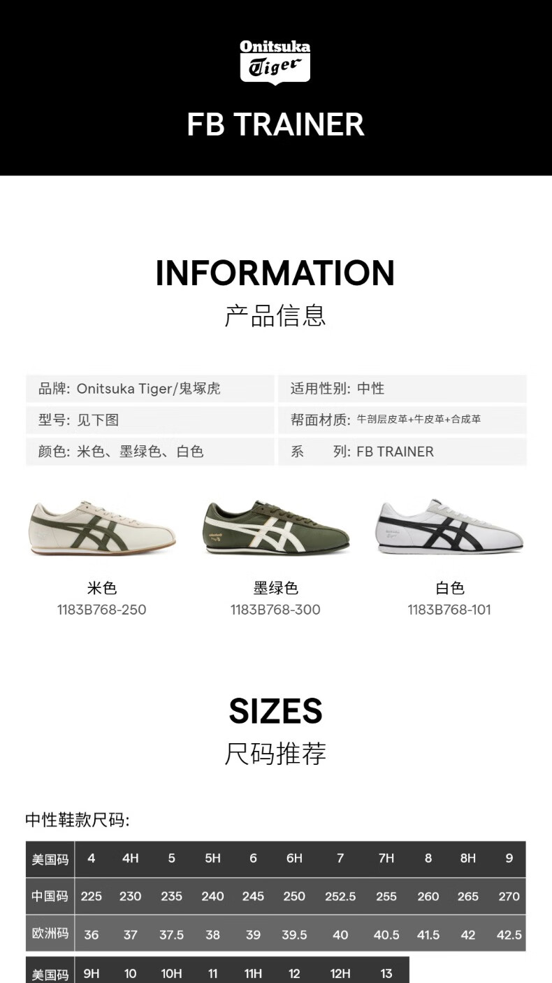Onitsuka Tiger men's and women's shoes casual retro shoes versatile shoes women's lightweight shoes FB TRAINER 1183B768 white 41.5
