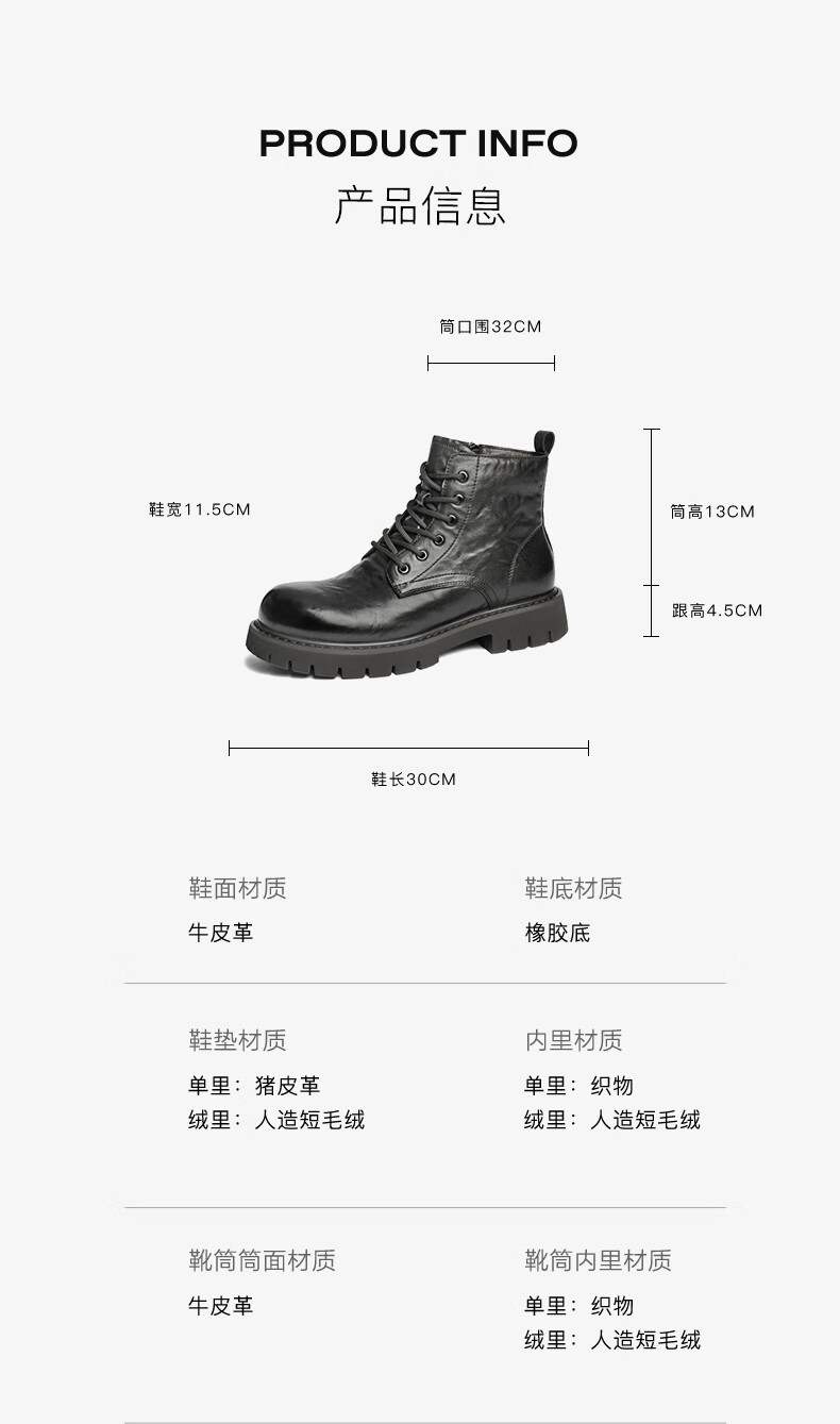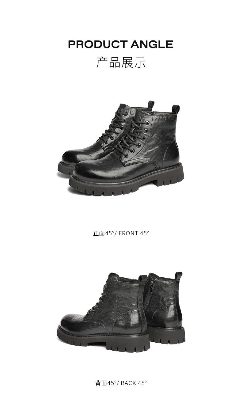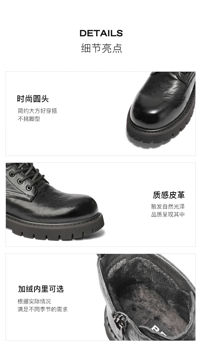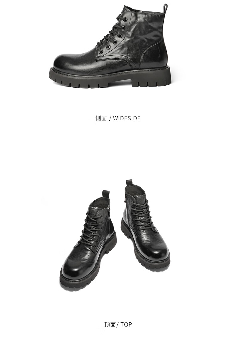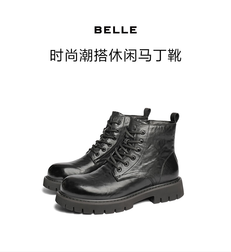 百丽(Belle)厚底潮搭马丁靴男款秋冬季舒适牛皮户外休闲靴8QT01DD4 黑色-单里 41 (255mm)
