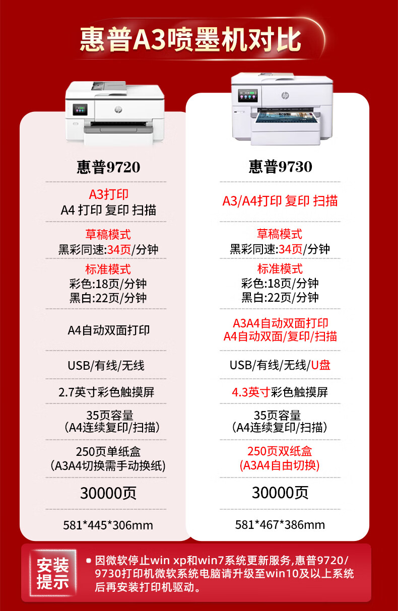 HP (HP) 9730 color inkjet A3 printer A4 automatic double-sided copy and scan all-in-one wireless home office 9720 9730 A3A4 print copy scan + double paper box official standard host + a set of original ink cartridges