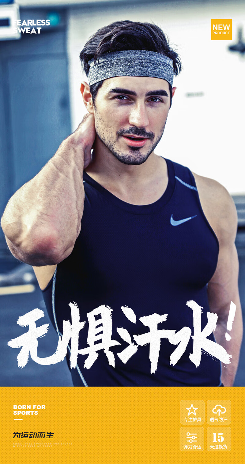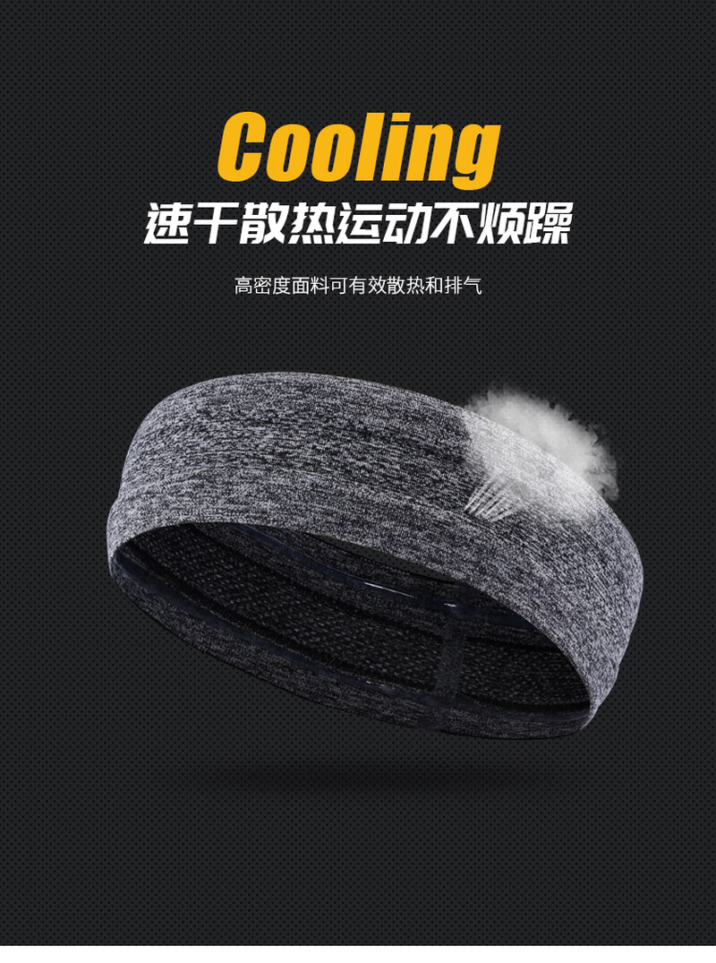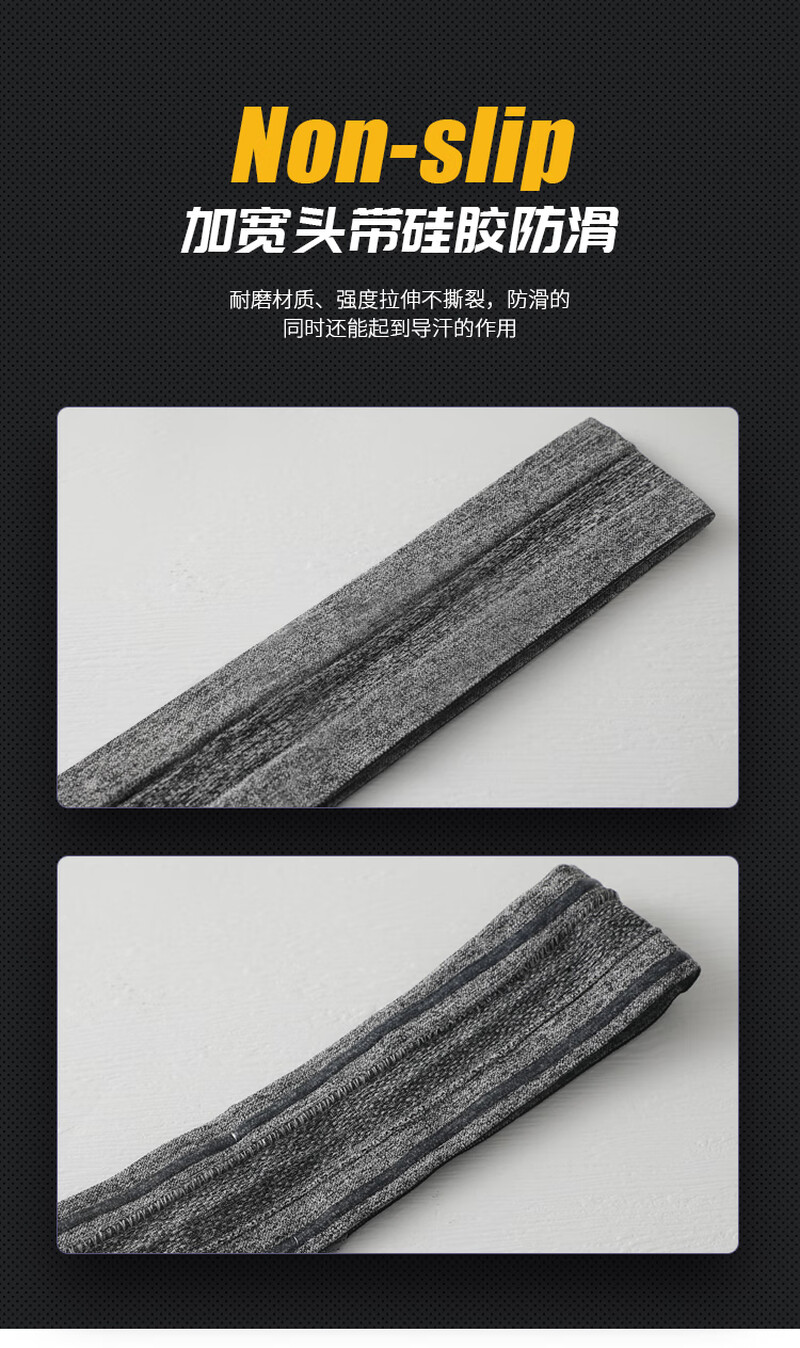 运动发带男吸汗束头带篮球跑步健身头巾女导汗止汗防汗护额头戴潮 黑色灰色 2条装