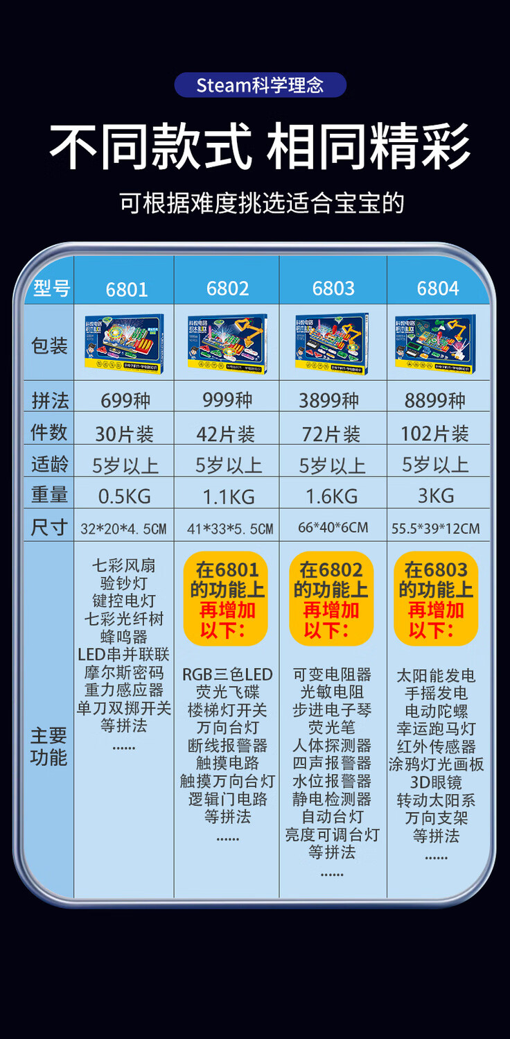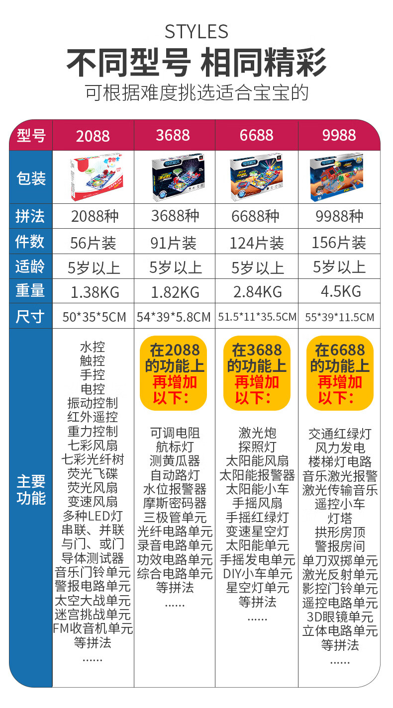 ONEVAN电子积木套装儿童电路板6到12岁玩具男孩拼装小学生礼物生日 物理启蒙丨3899+玩法丨礼盒装