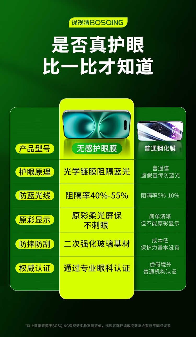 Protect eyesight, protect eyesight | Ophthalmology certification, suitable for Apple 16 tempered film anti-blue light eye mask iPhone16promax mobile phone film 16Pro anti-peeping Plus anti-fingerprint, comfortable anti-peeping 2 pieces | ice transparent and clear | tired of watching for a long time iPhone16 Pro