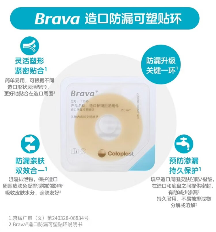 康乐保12030/12042可塑防漏贴环Brava防漏膏防漏圈 造口护理附件 1907*1+12021*10+12035*10