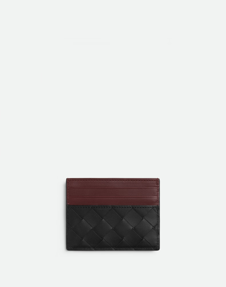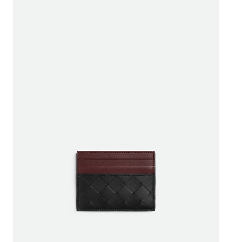 葆蝶家BV [新年礼物]新品男士INTRECCIATO编织信用卡包 黑色/茜棕红 均码
