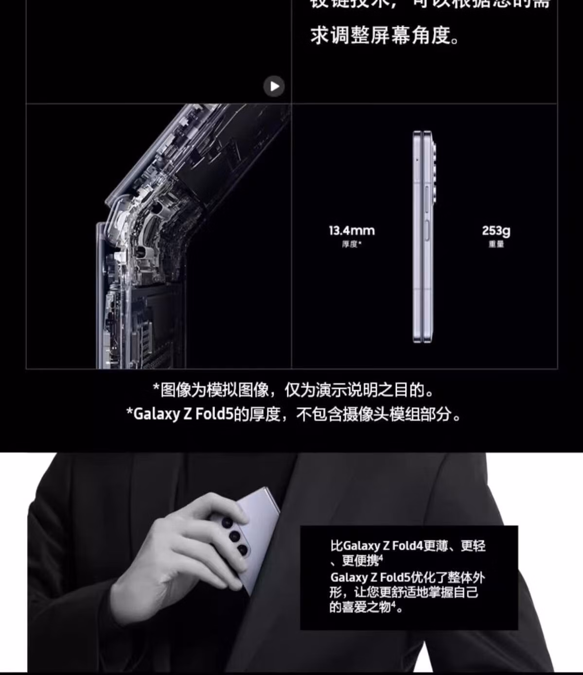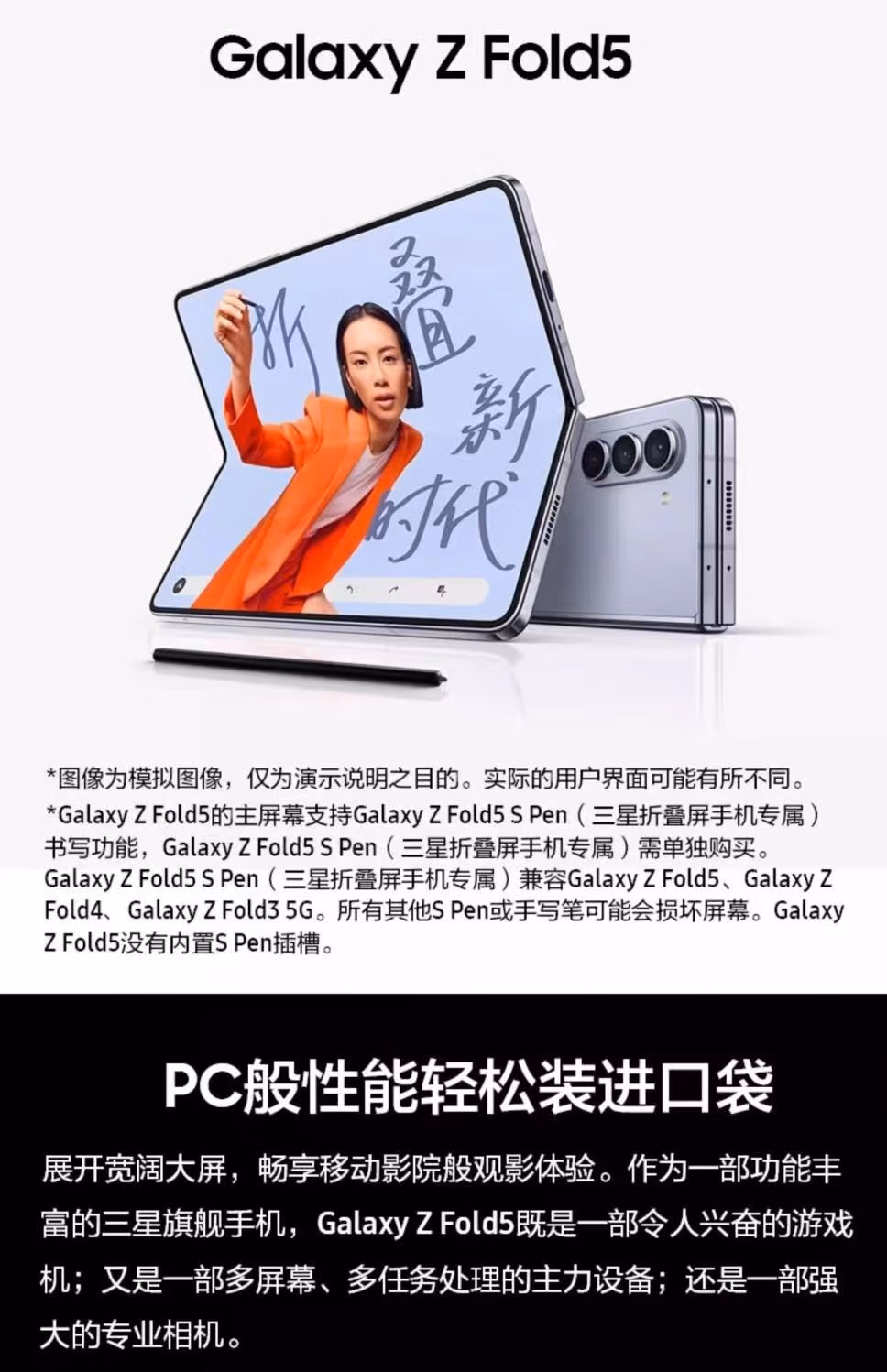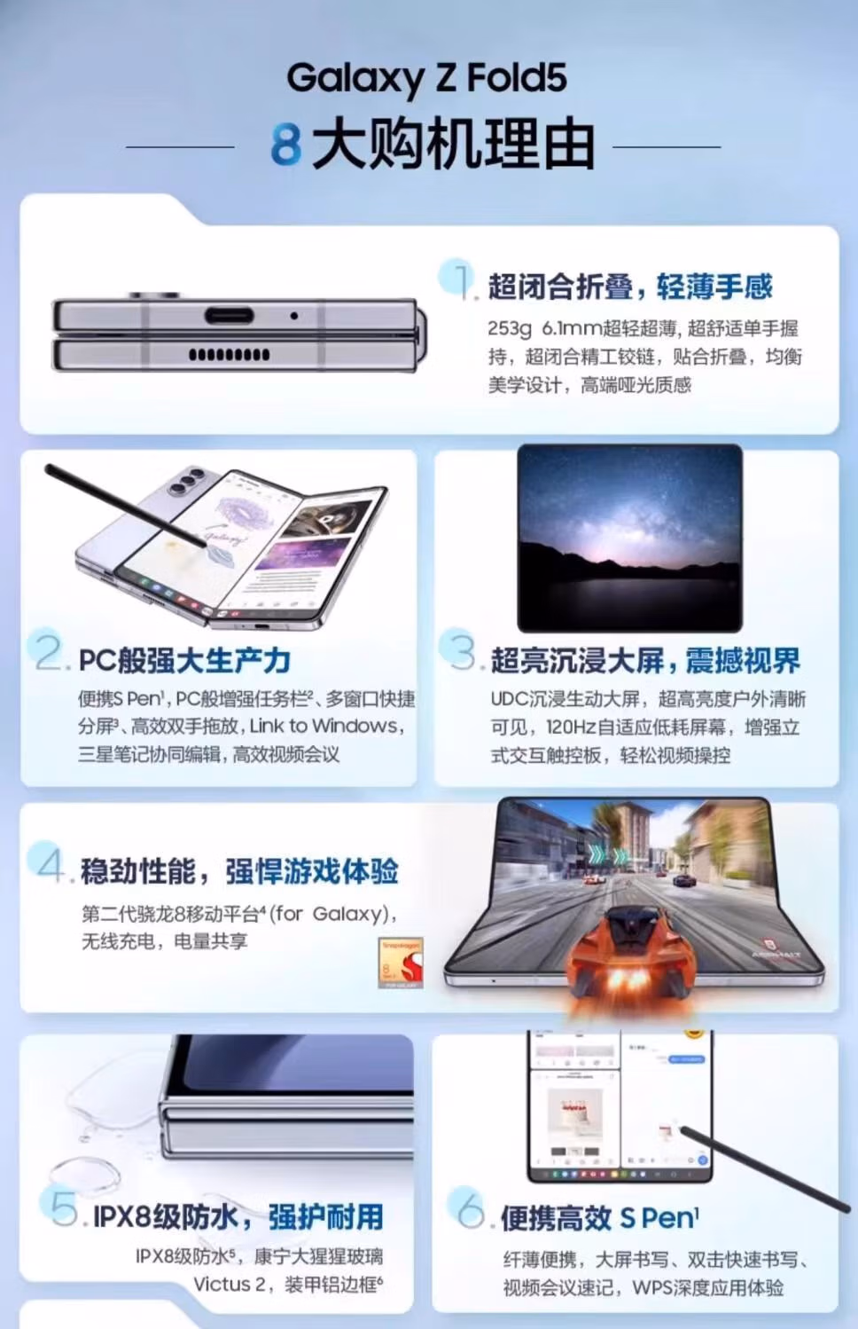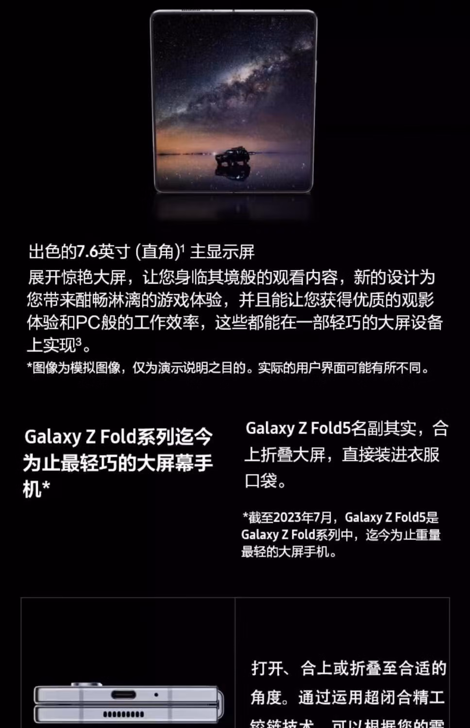 Samsung (SAMSUNG) Galaxy Z Fold5 Full Netcom 5G under-screen camera 23 years flagship folding screen stock smartphone Yuyehei 12+512GB Chinese version