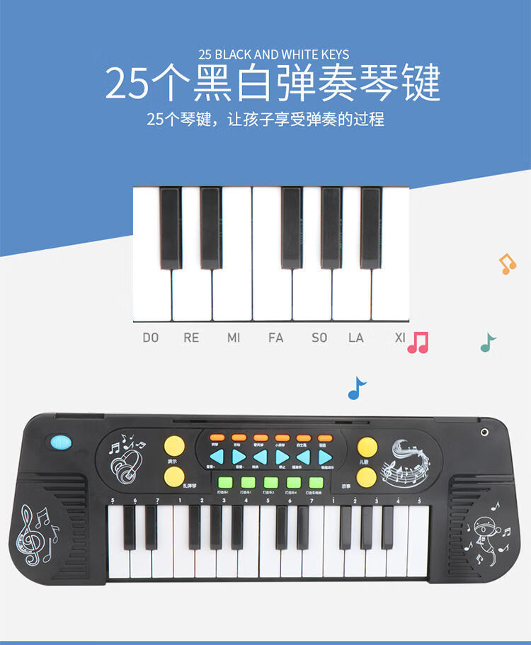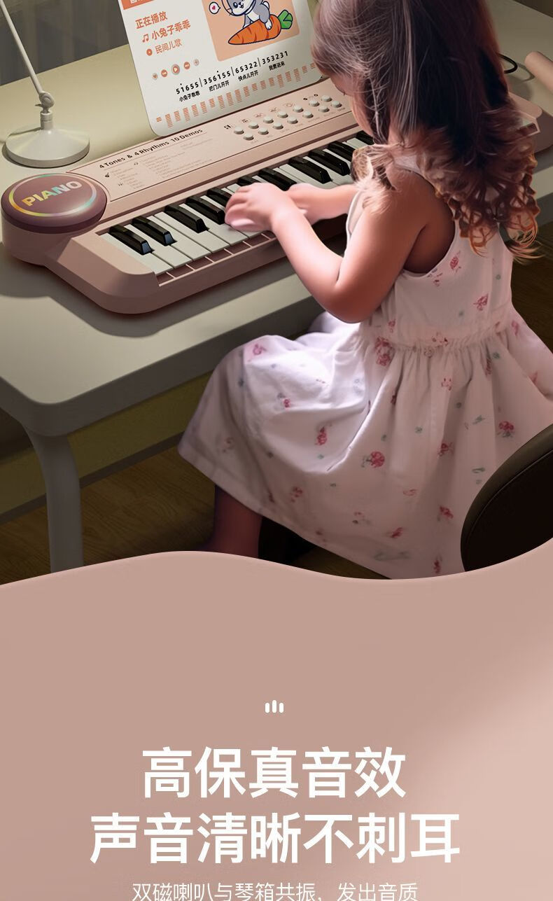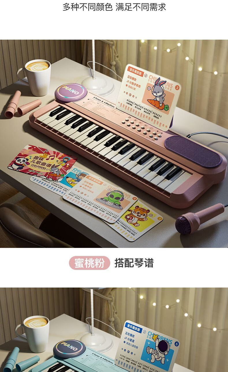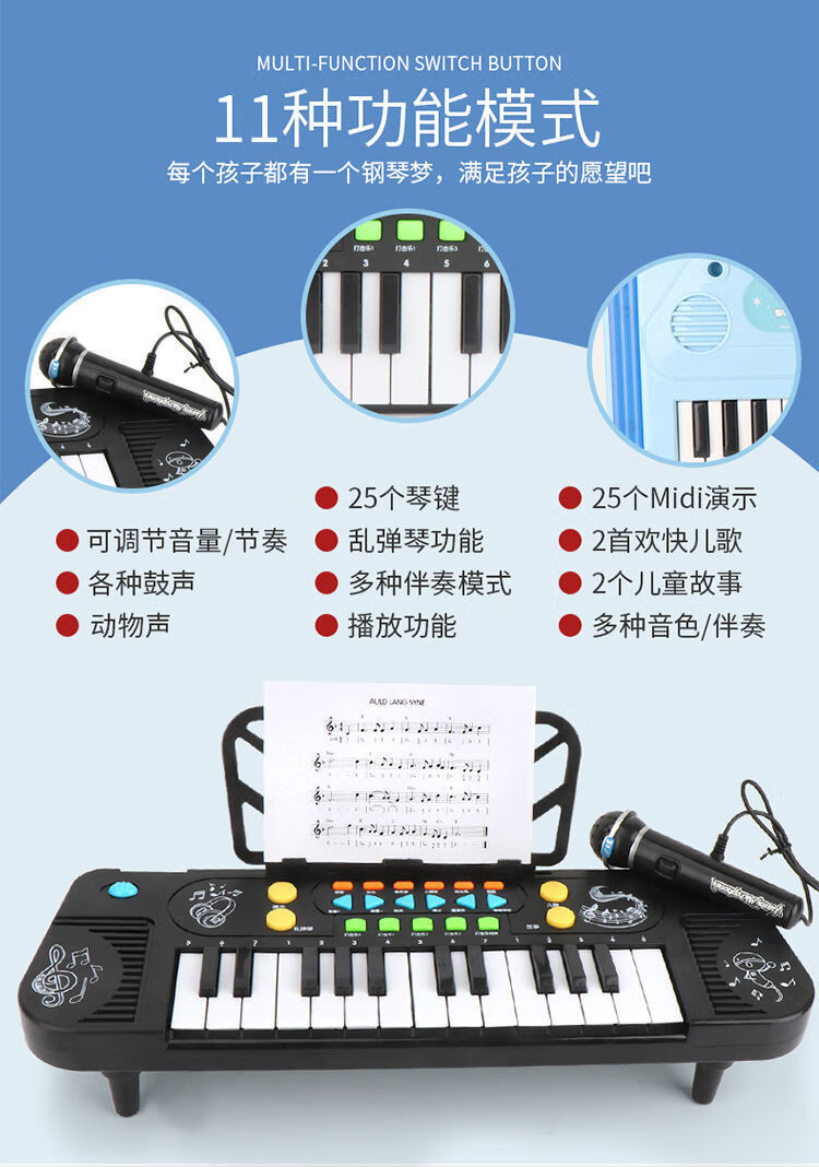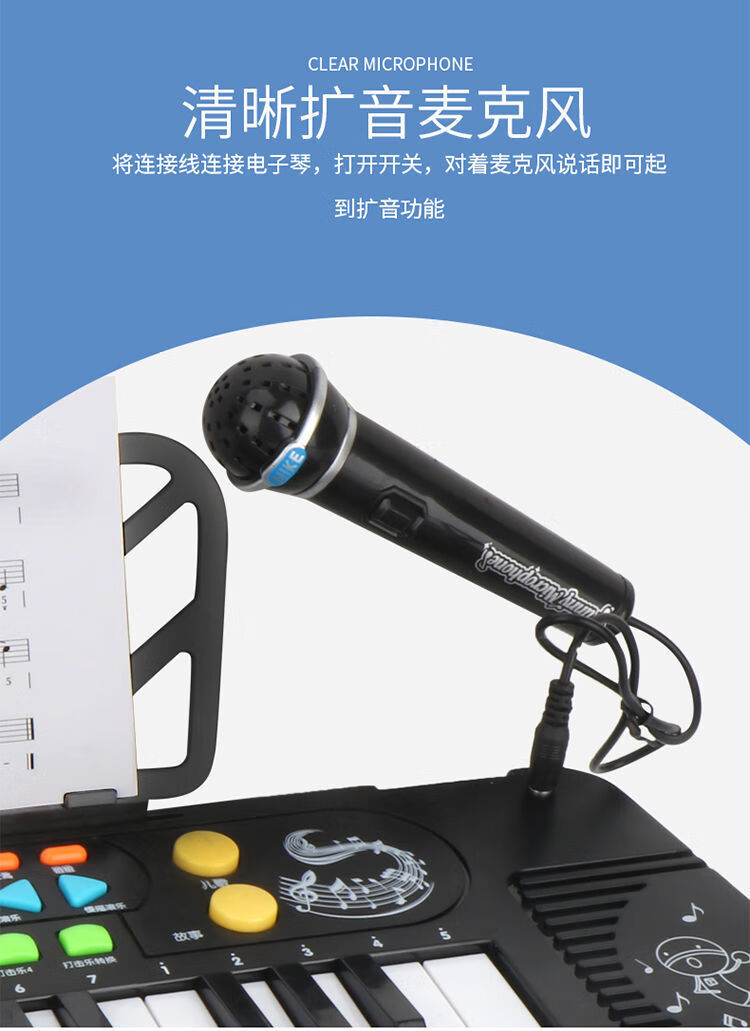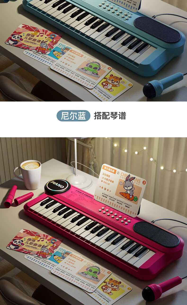 Suicai children's 61-key electronic keyboard piano for beginner girls 1-12 years old with microphone multi-function baby entry piano toy 37-key Neil Blue multi-function with microphone -43c charging gift package version - children's song sheet + button sticker + charge