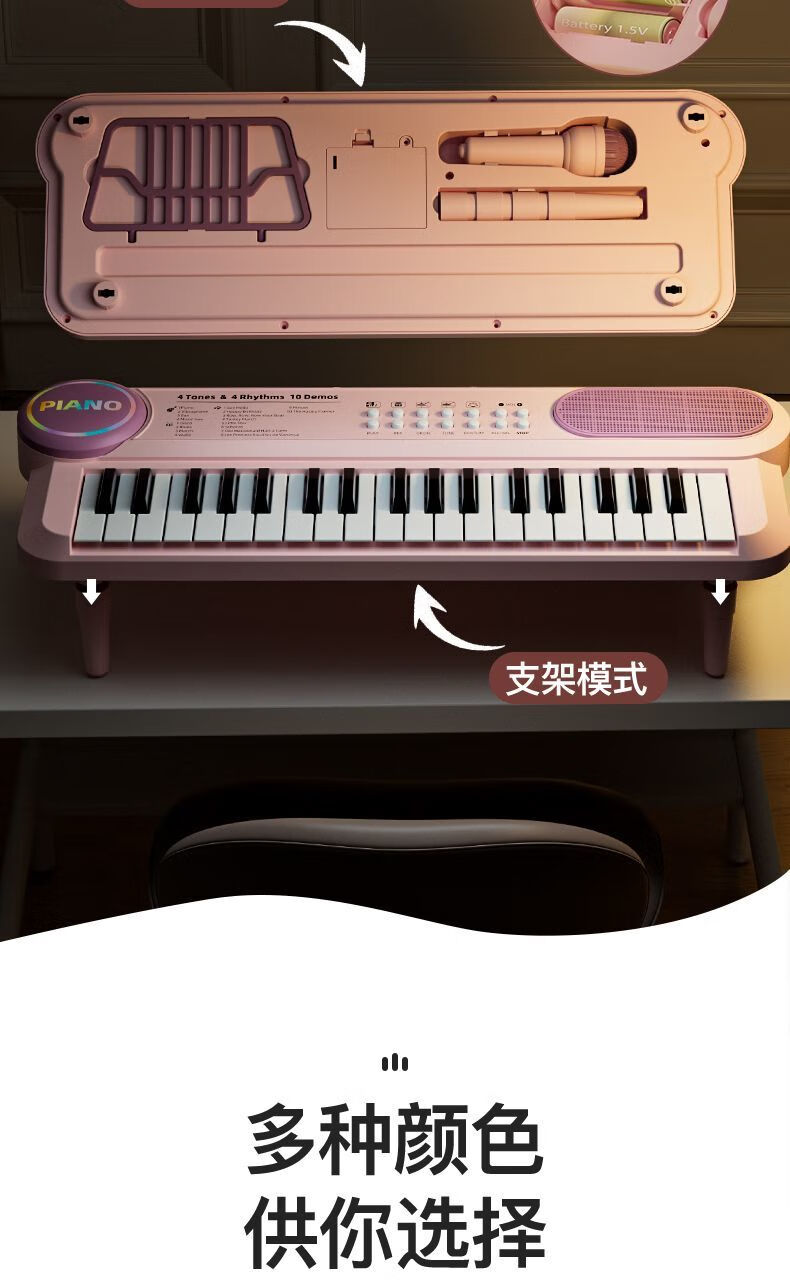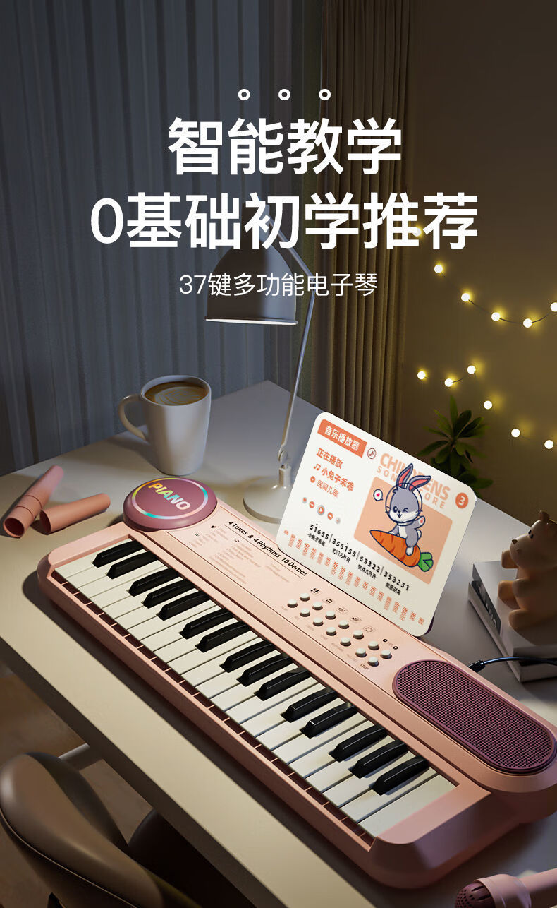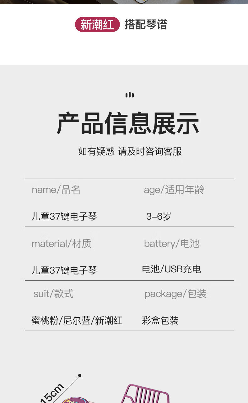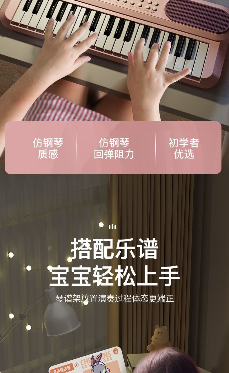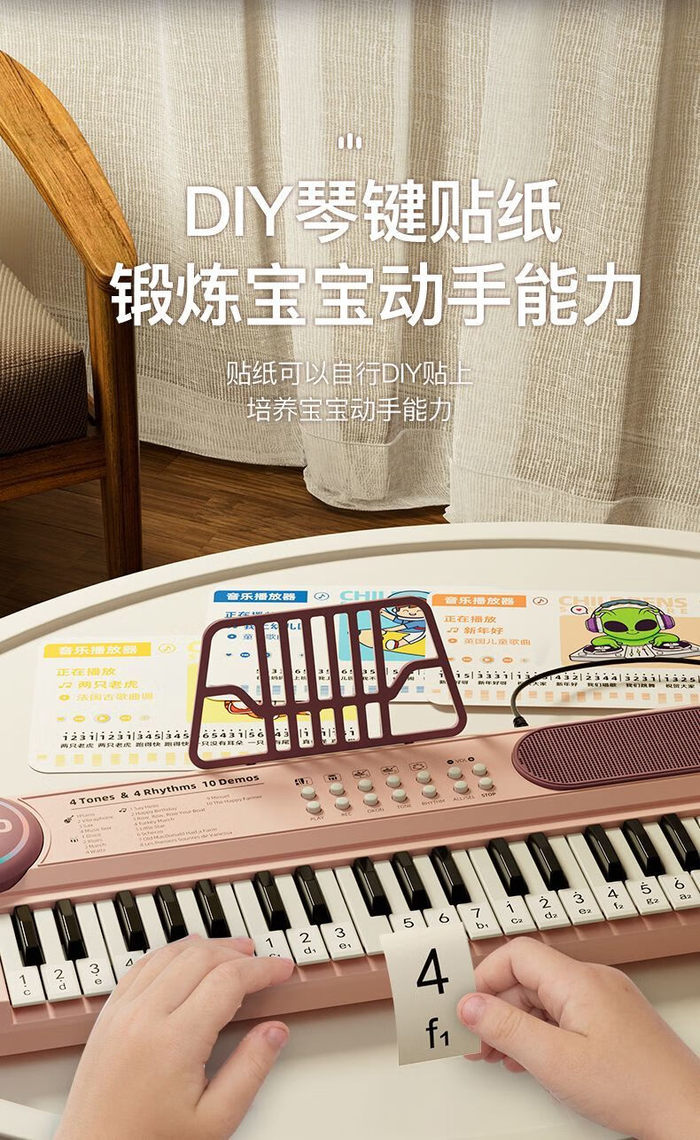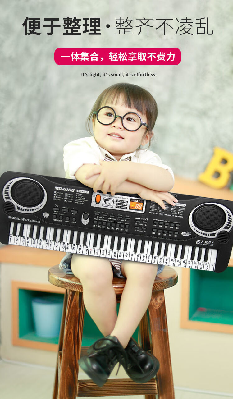 Suicai children's 61-key electronic keyboard piano for beginner girls 1-12 years old with microphone multi-function baby entry piano toy 37-key Neil Blue multi-function with microphone -43c charging gift package version - children's song sheet + button sticker + charge