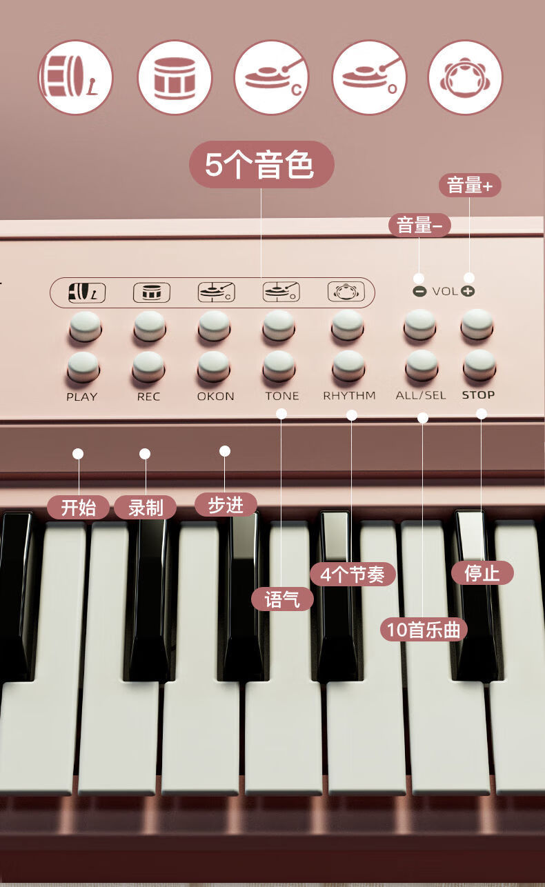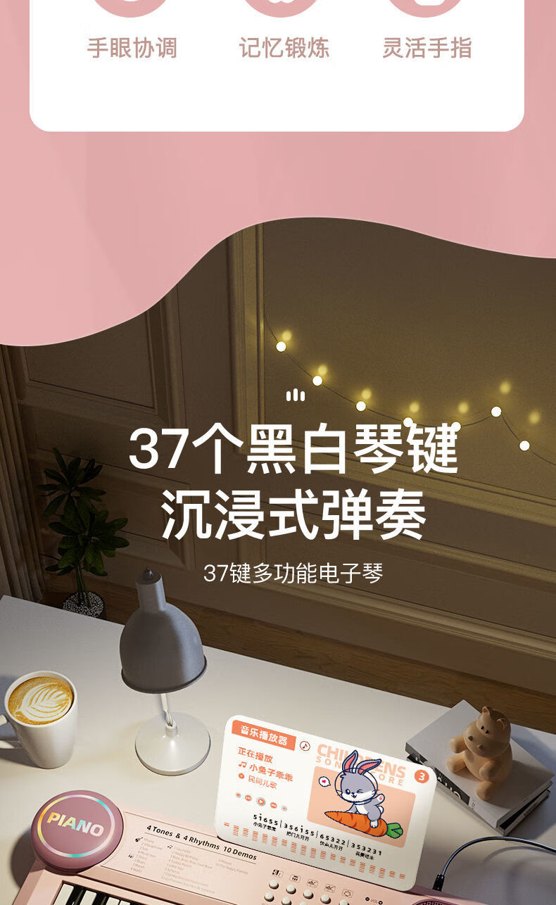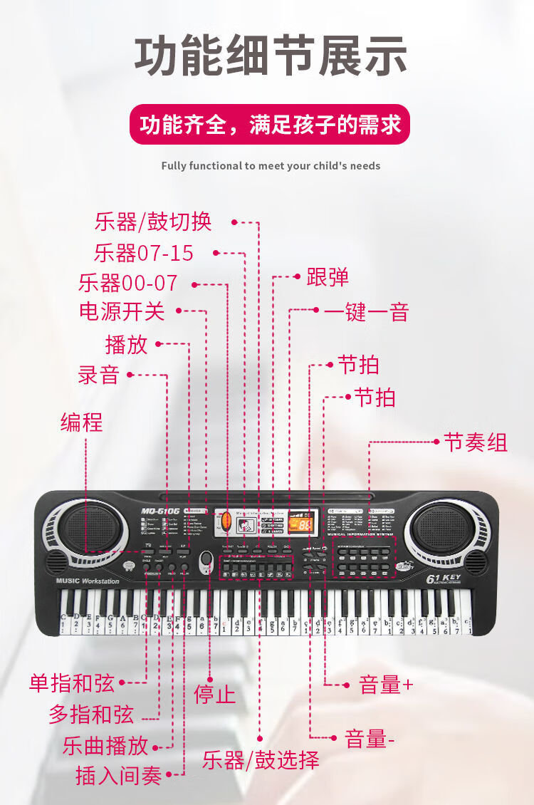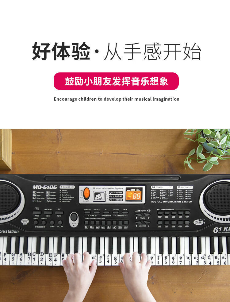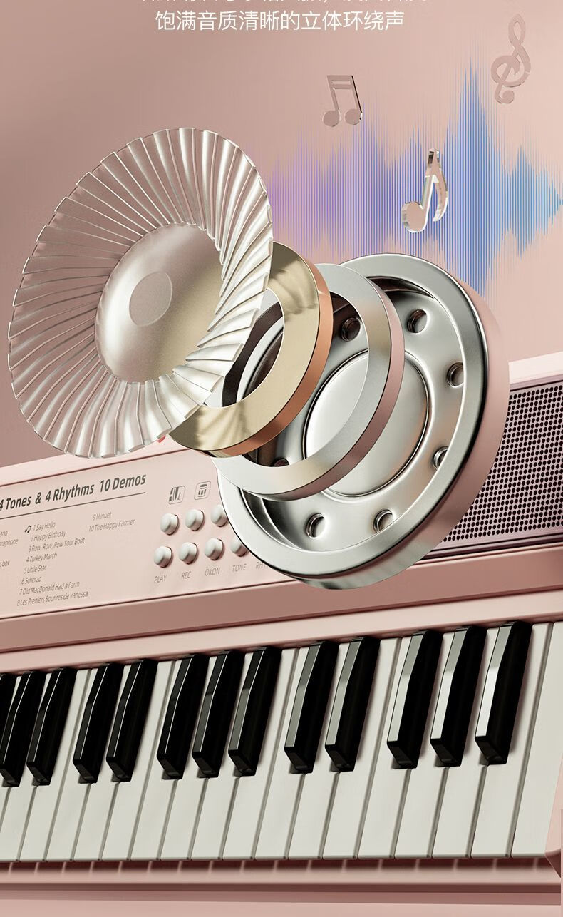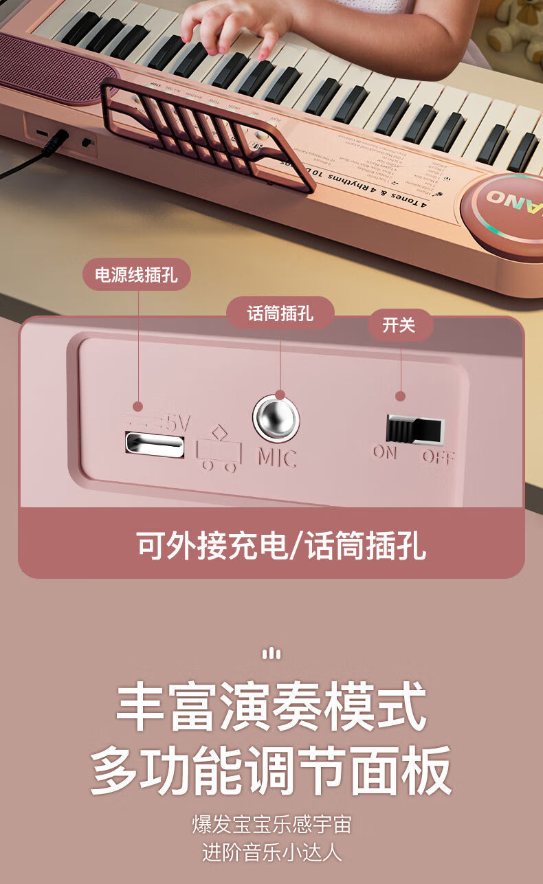 Suicai children's 61-key electronic keyboard piano for beginner girls 1-12 years old with microphone multi-function baby entry piano toy 37-key Neil Blue multi-function with microphone -43c charging gift package version - children's song sheet + button sticker + charge