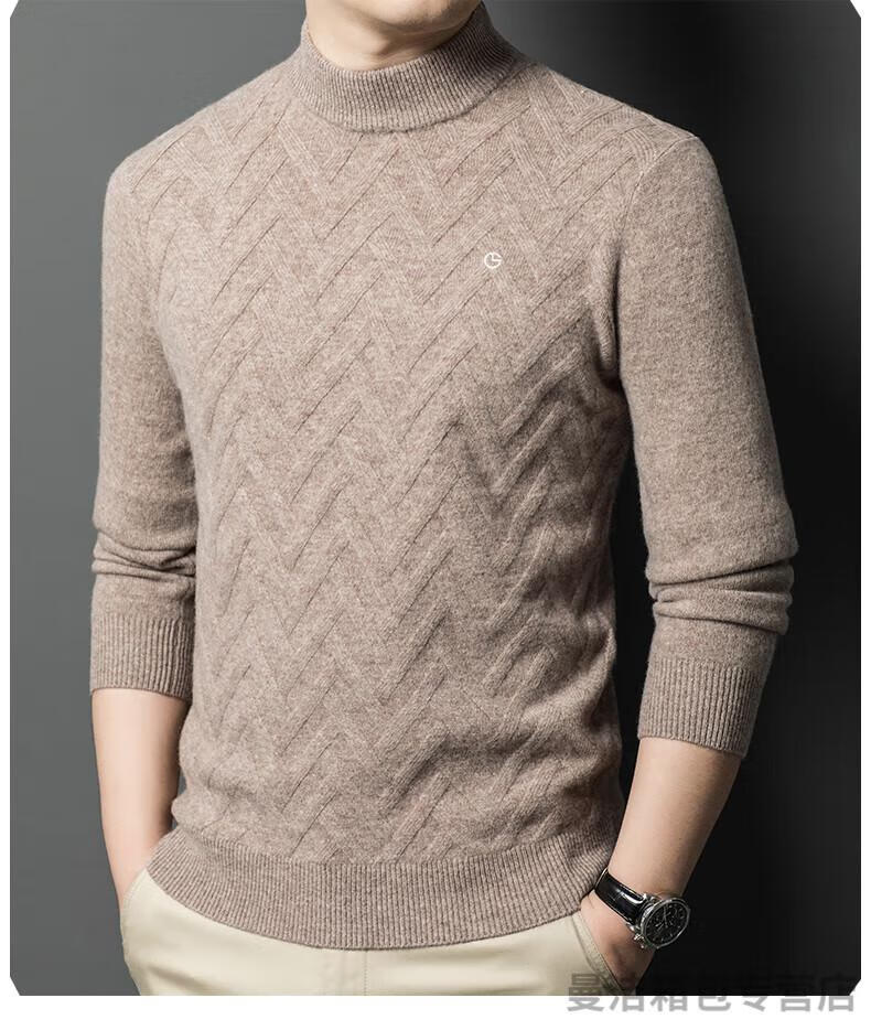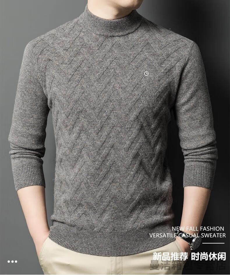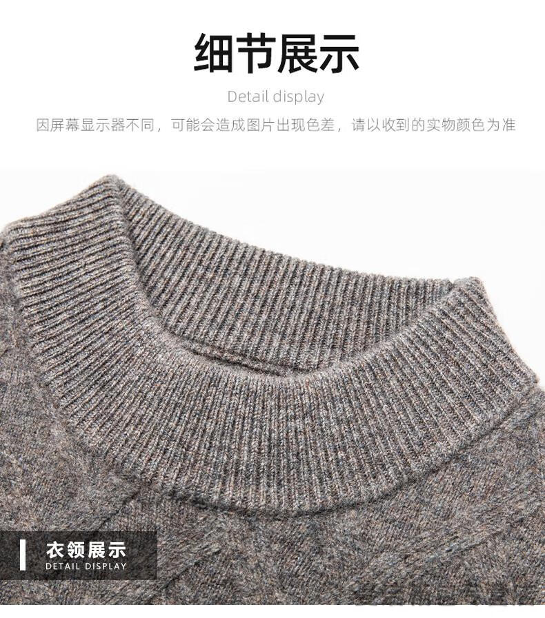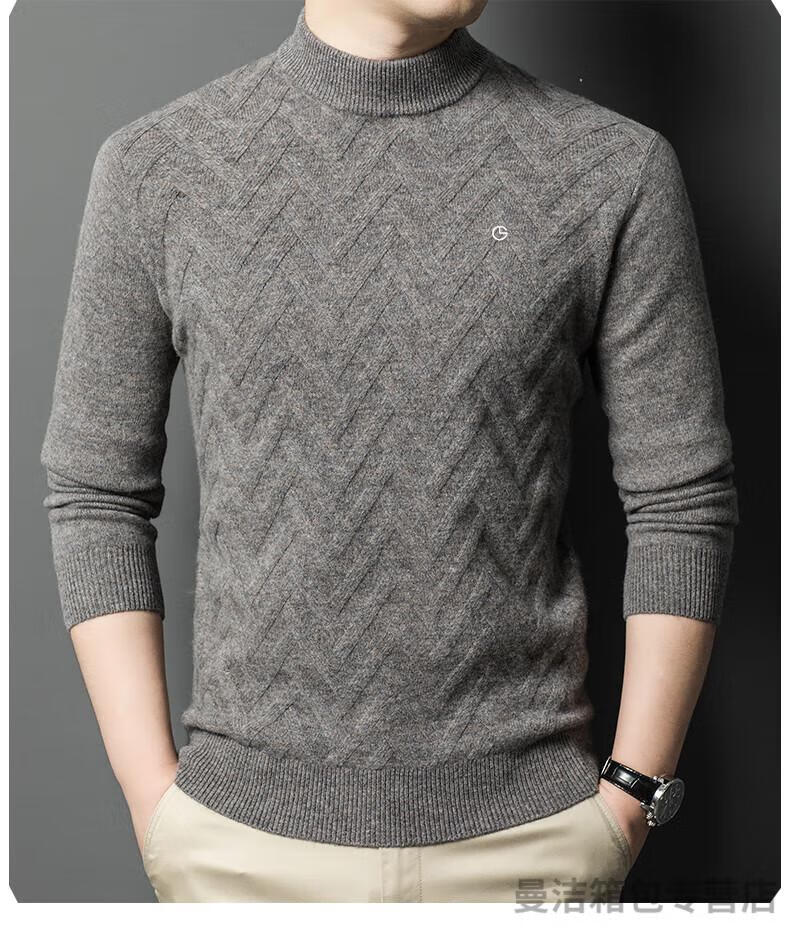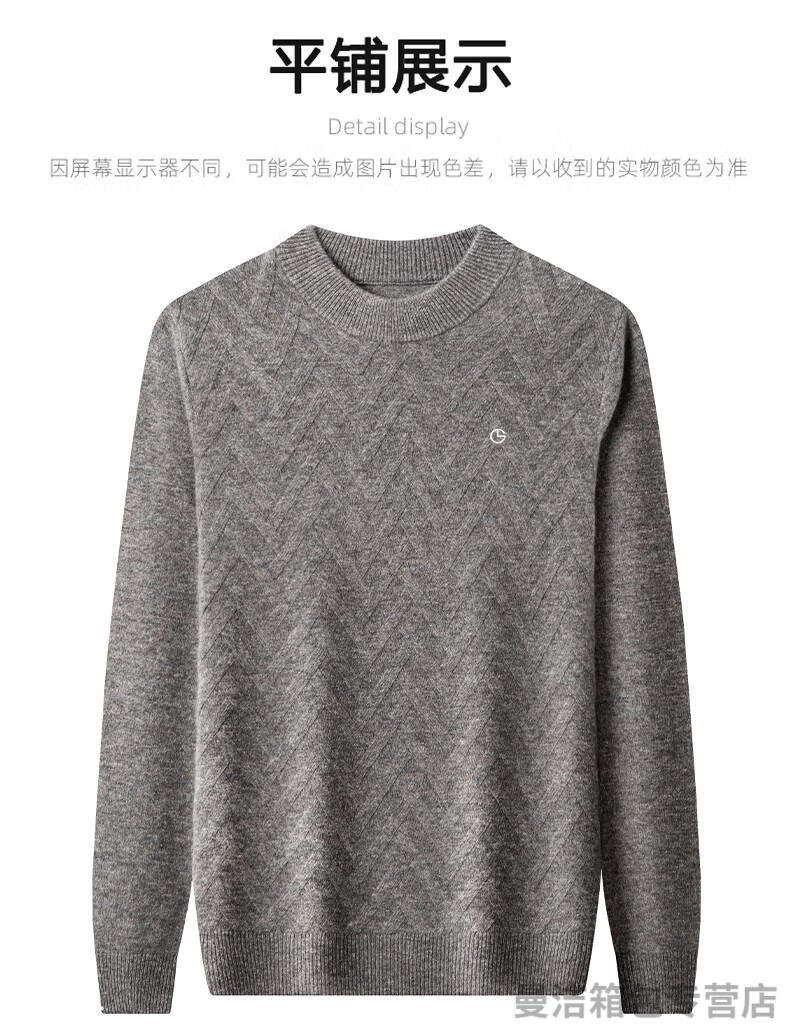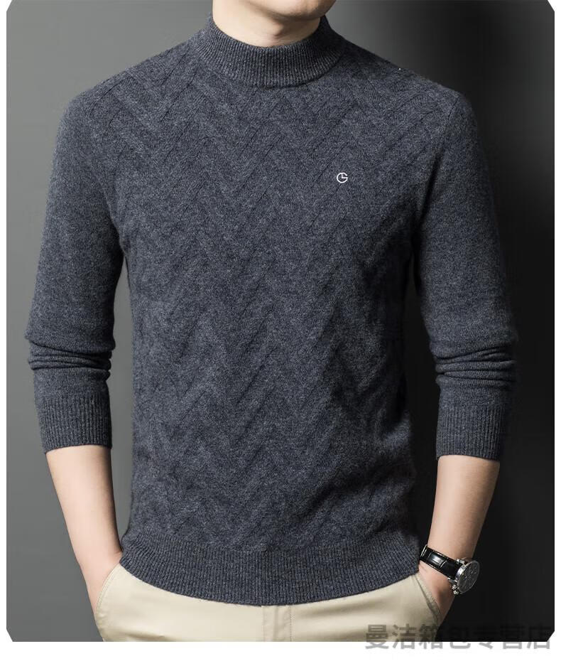 金利来官方旗舰纯羊绒衫男冬季加厚半高领休闲毛衣中年套头条纹 中灰色 XL/175