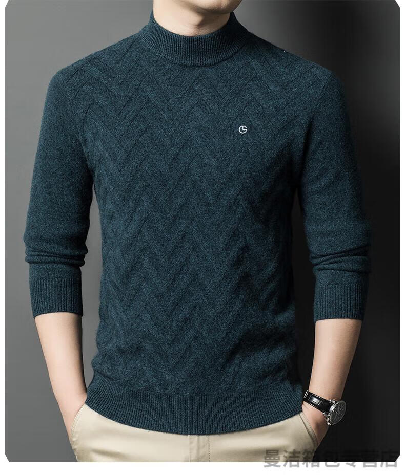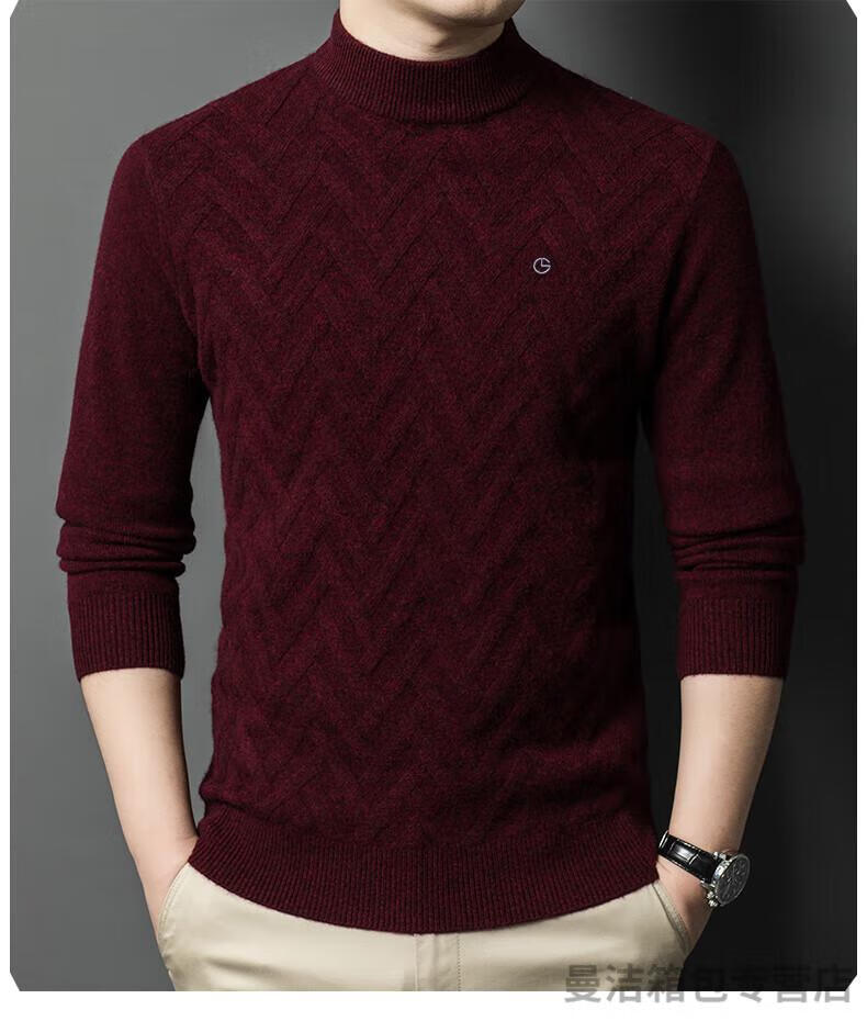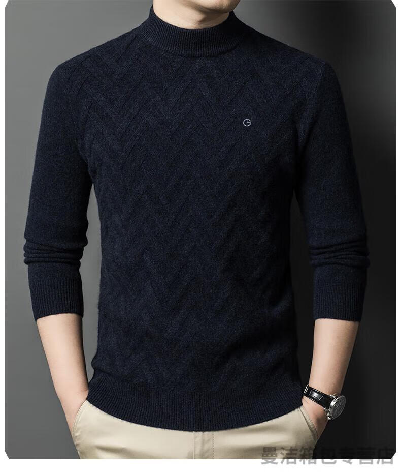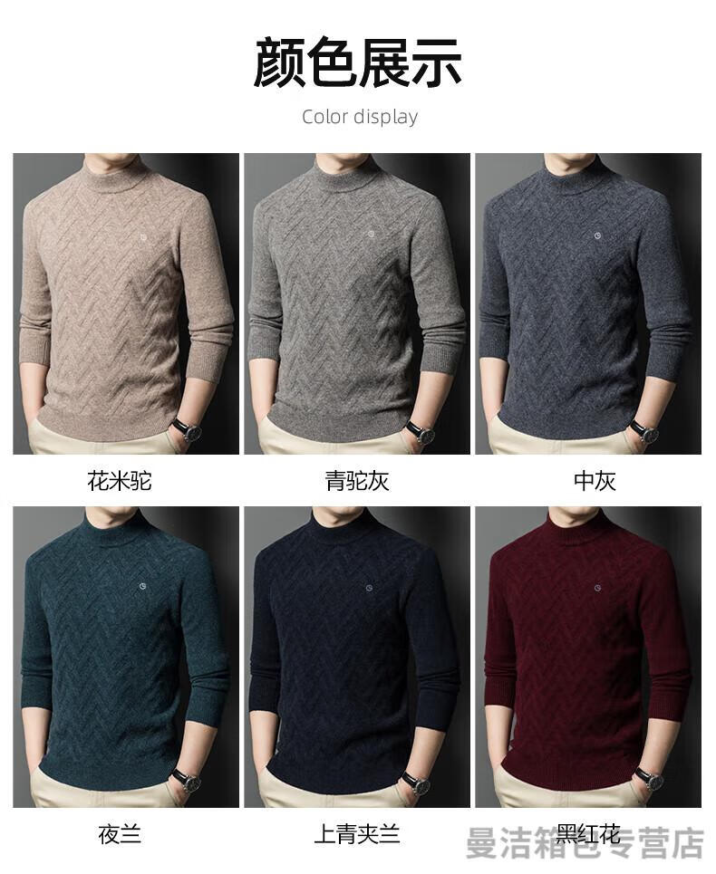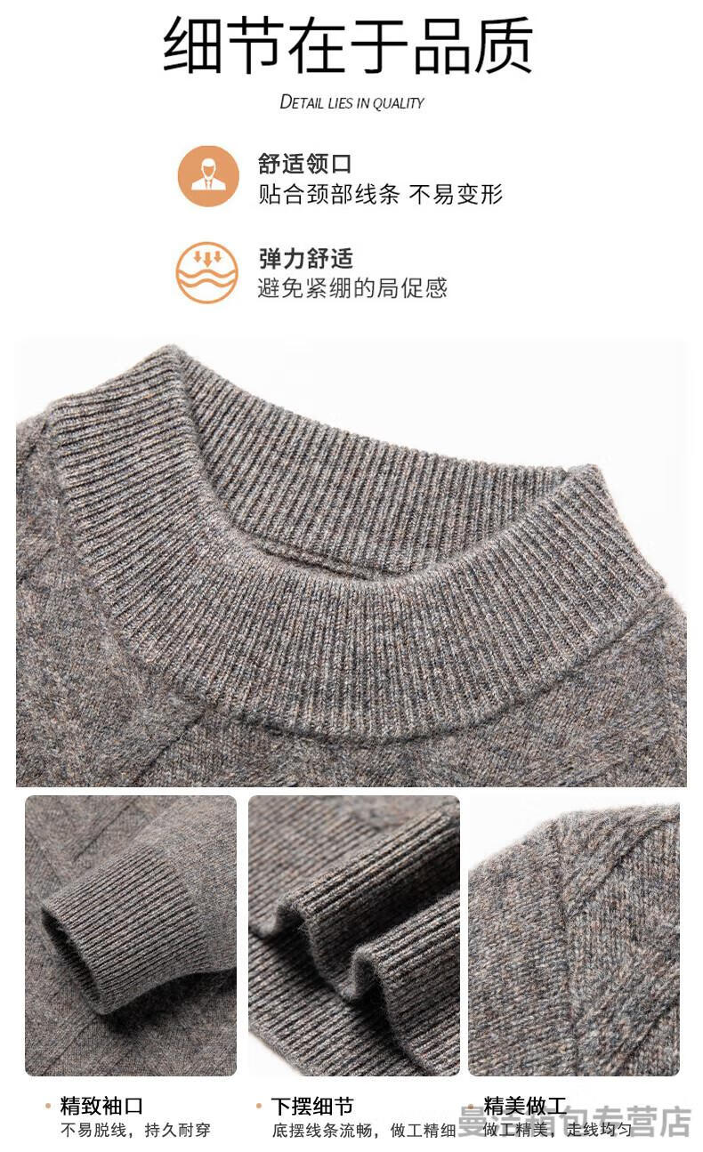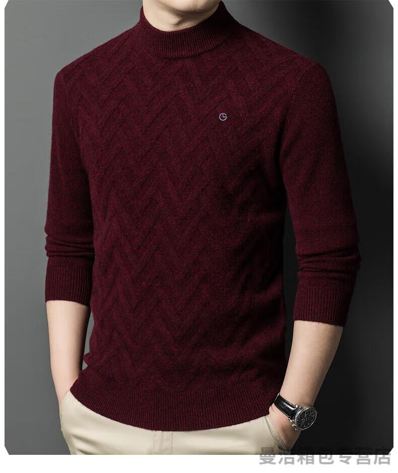金利来官方旗舰纯羊绒衫男冬季加厚半高领休闲毛衣中年套头条纹 中灰色 XL/175
