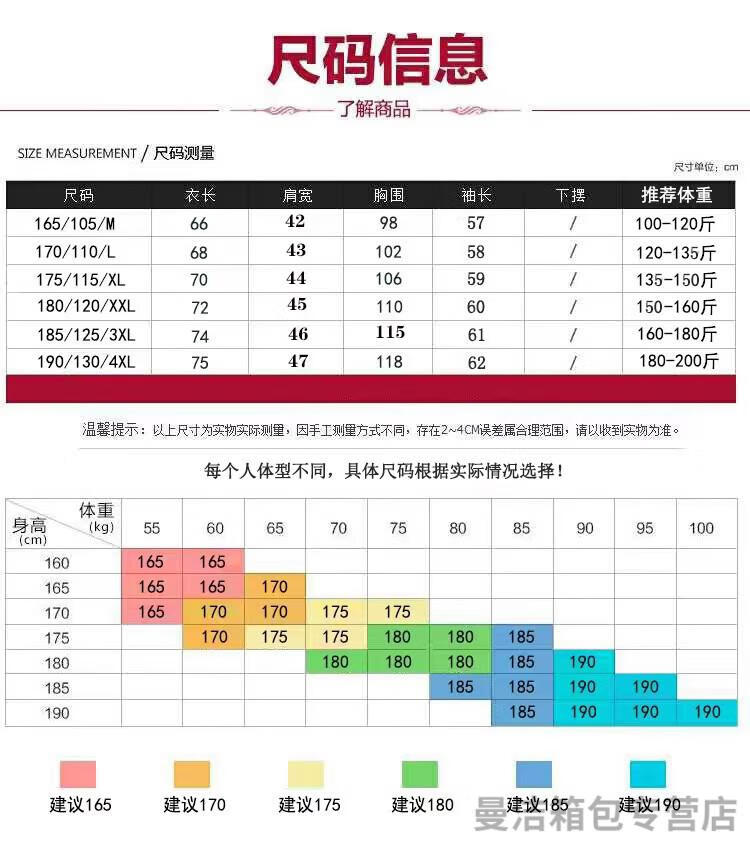 China (cm) 165 / 88-90 170 / 96-98 175 / 108-110 180 / 118-122 185 / 126-130