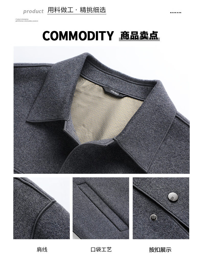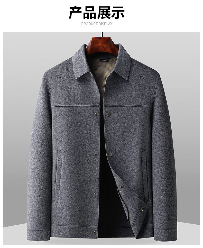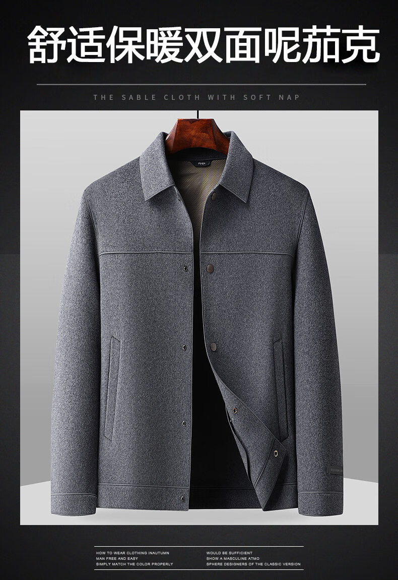 罗蒙双面呢翻领夹克短款高级感痞帅春秋款商务休闲羊毛呢外套男 灰色 180/XL