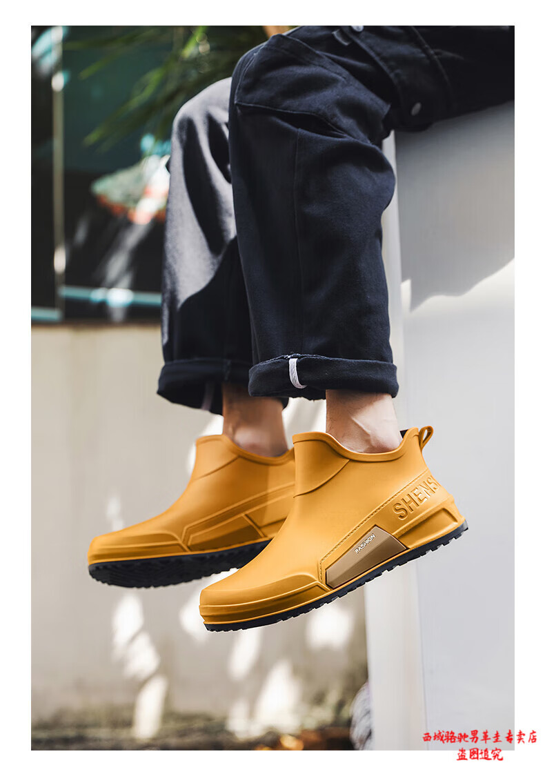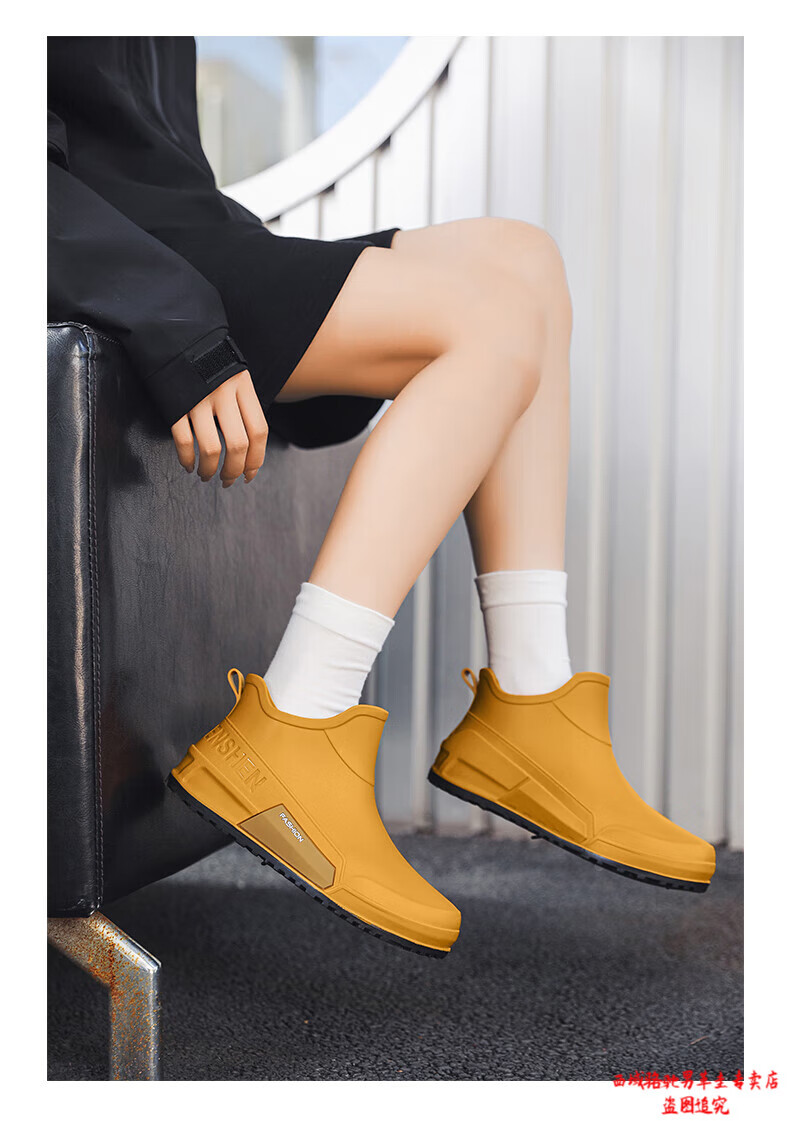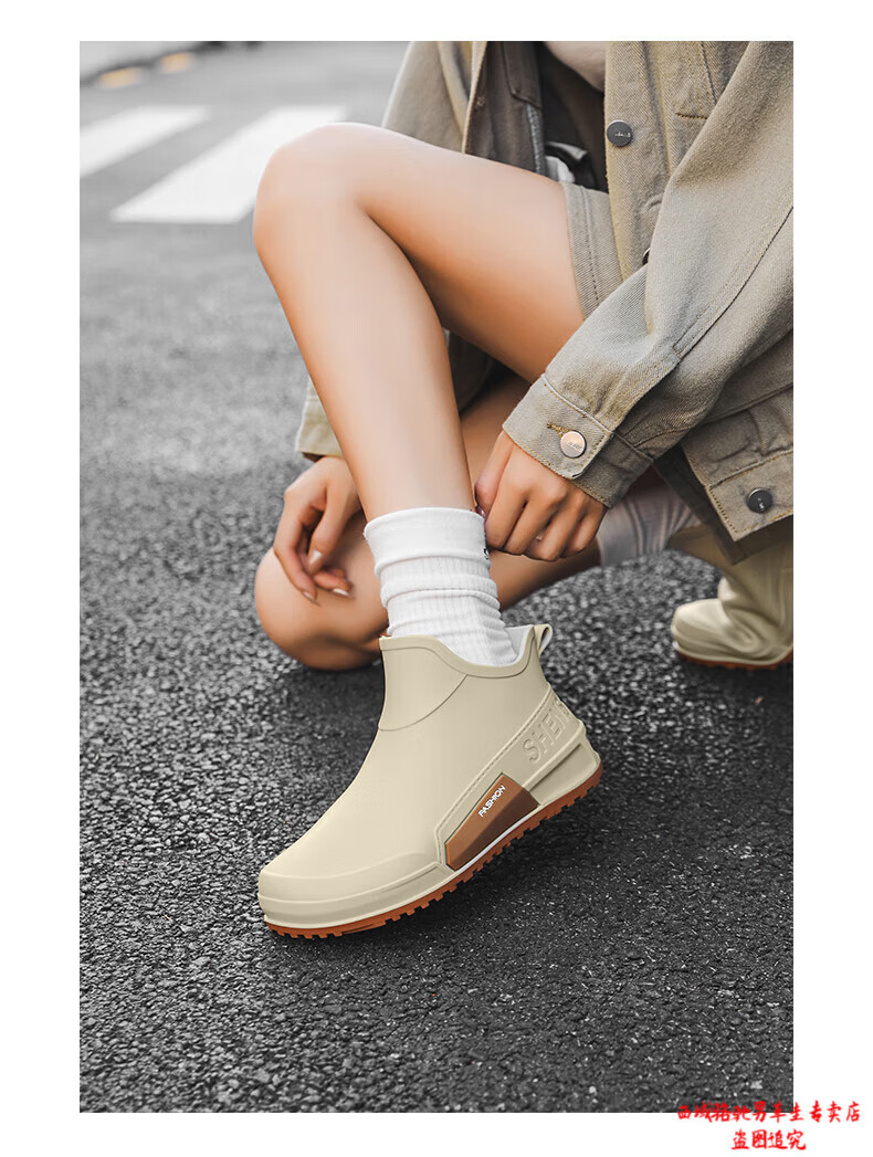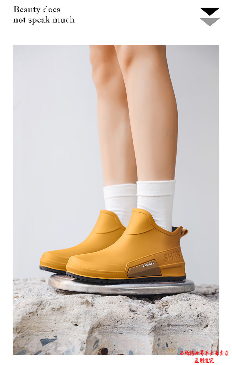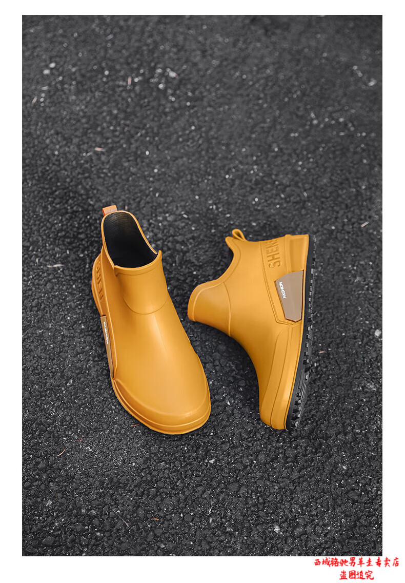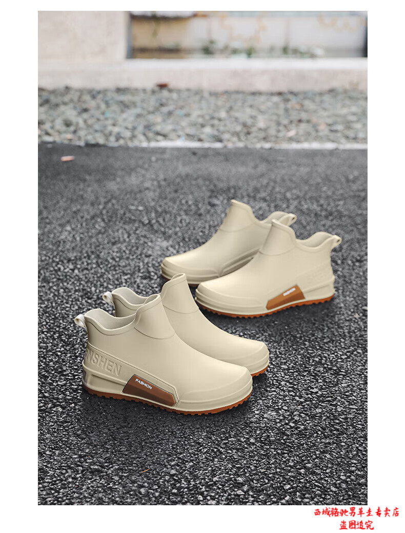 西域骆驼(VANCAMEL)英伦时尚男款雨鞋外穿舒适耐磨防水钓鱼赶海水鞋女款通勤胶鞋 驼色【固定棉】 建议拍大一码 39
