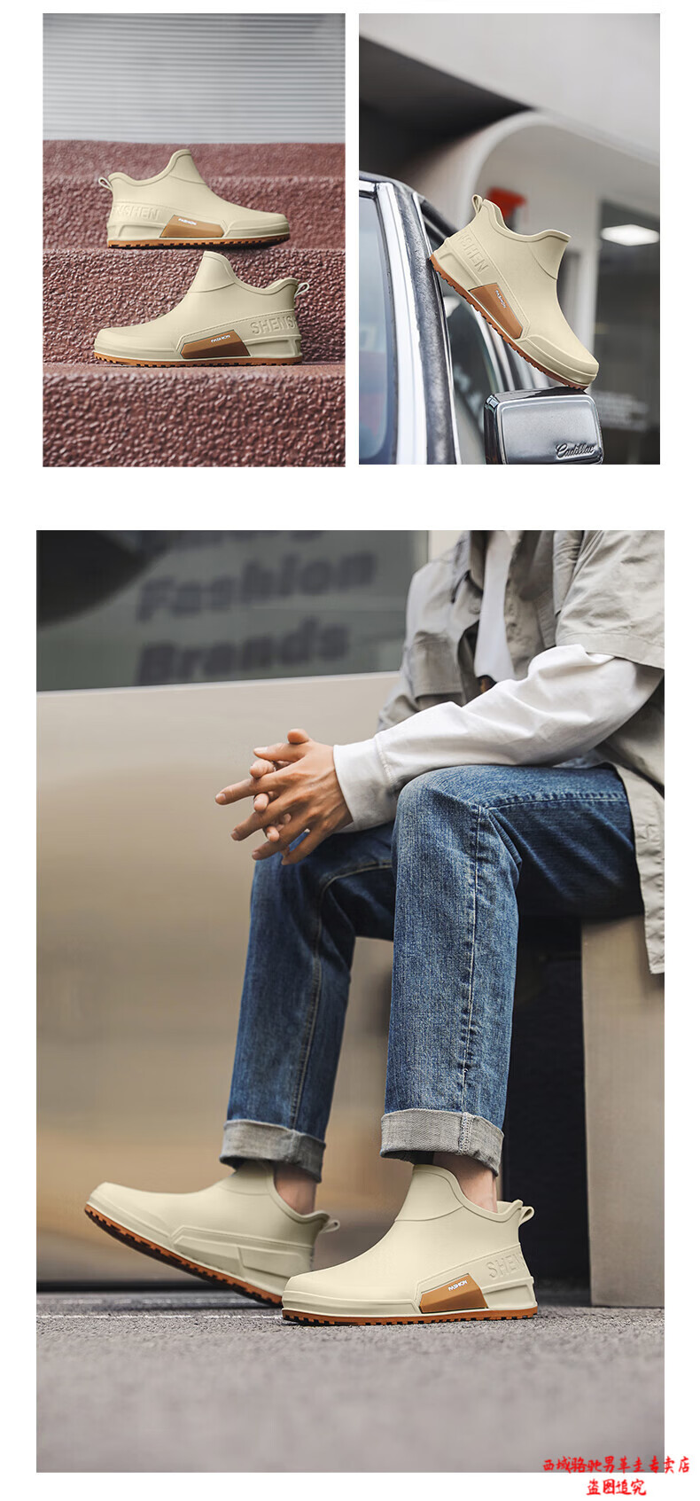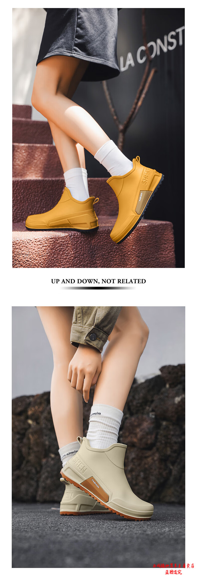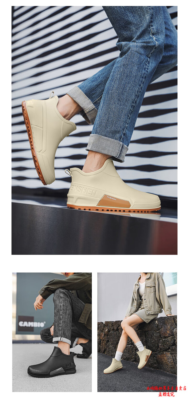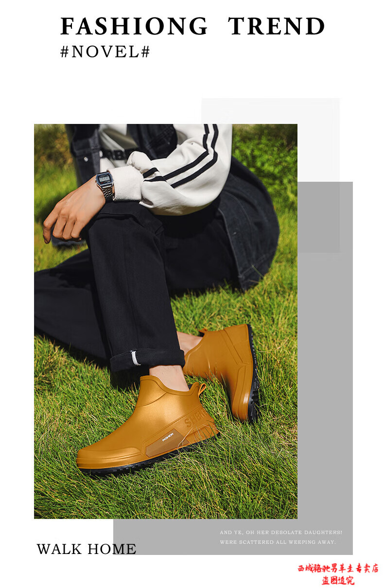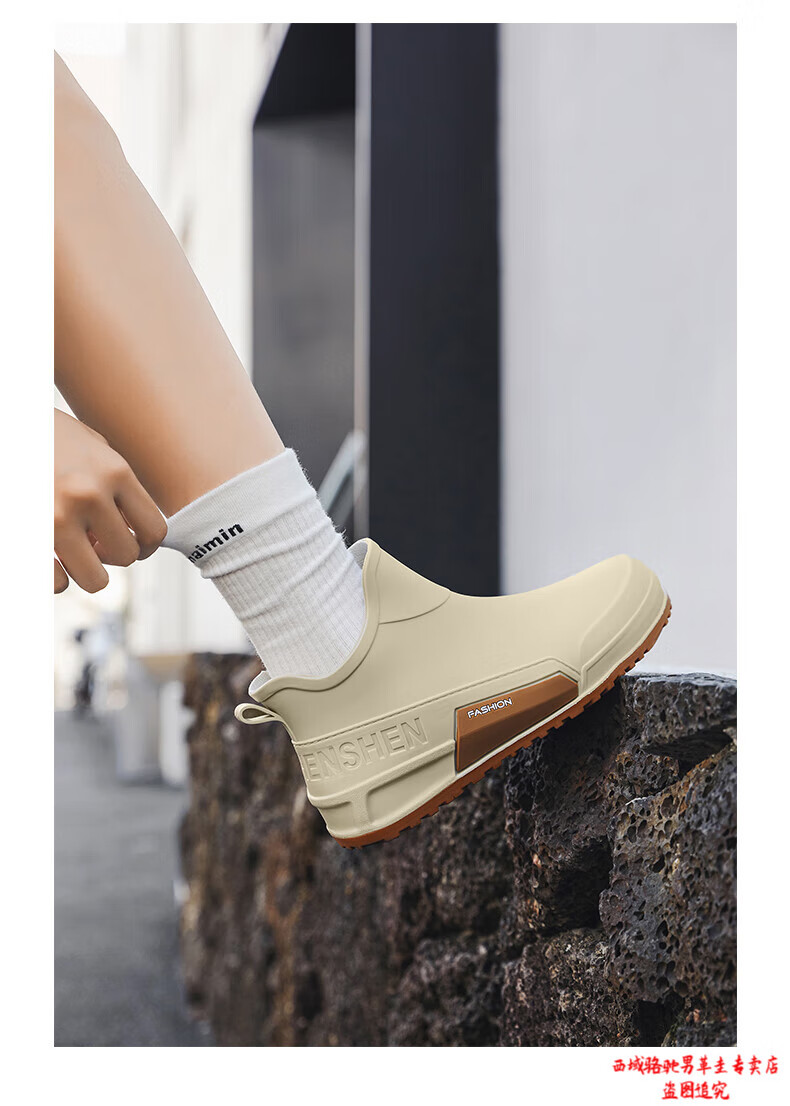 西域骆驼(VANCAMEL)英伦时尚男款雨鞋外穿舒适耐磨防水钓鱼赶海水鞋女款通勤胶鞋 驼色【固定棉】 建议拍大一码 39