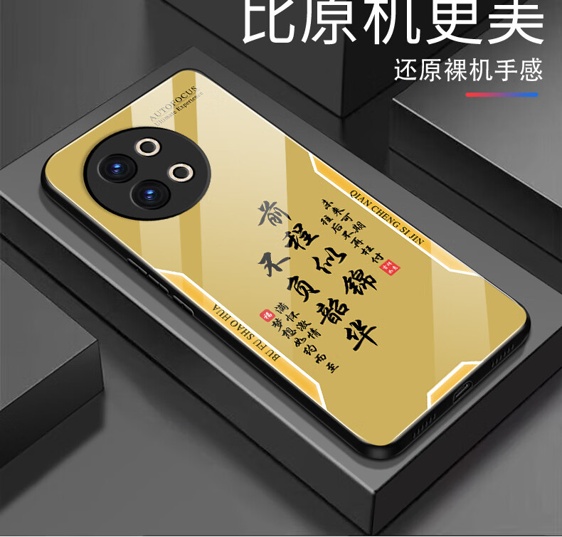 甄沛适用vivoS18E手机壳S18e屏幕手机膜防摔钢化玻璃全包边超薄硬壳软框男耐脏镜头保护壳平安喜乐文字 平安喜乐【流沙黄G7170】 vivoS18E【赠膜】
