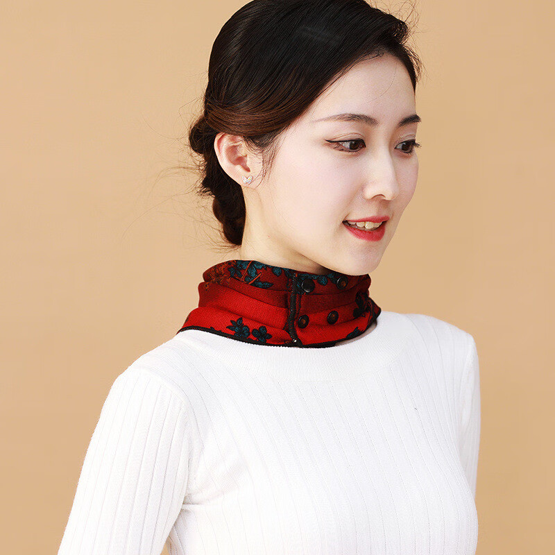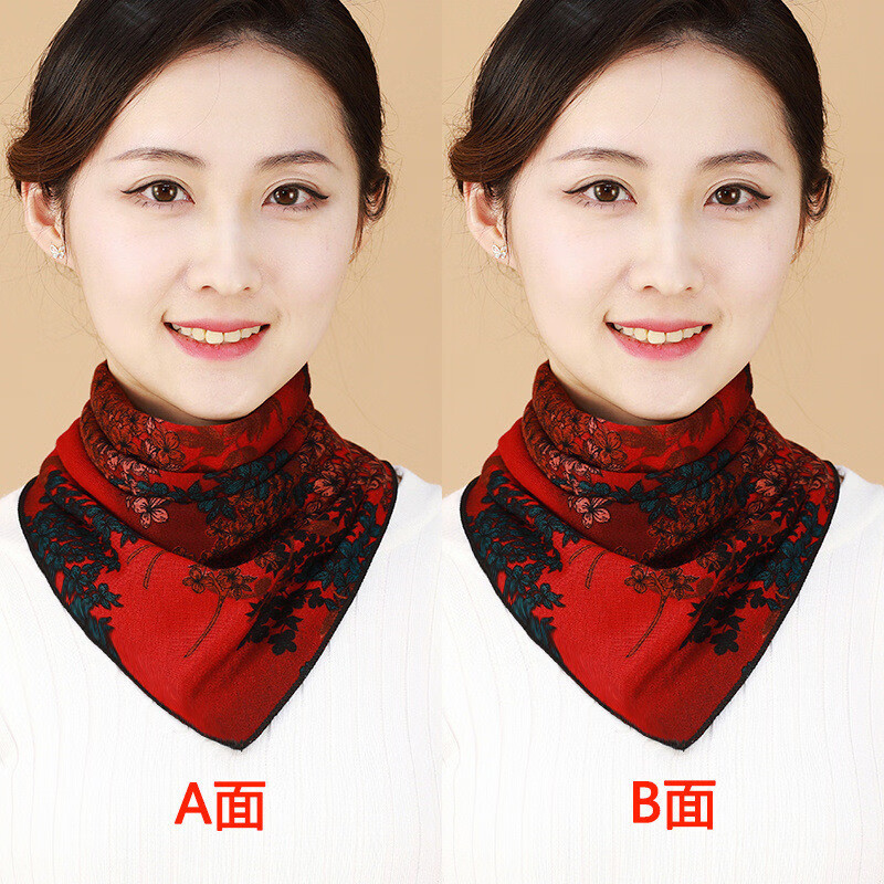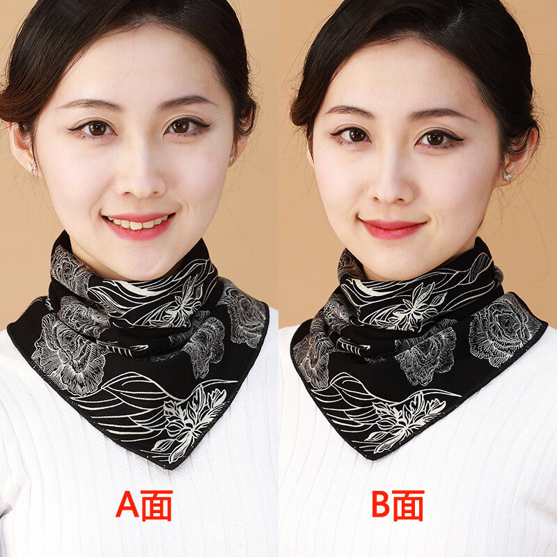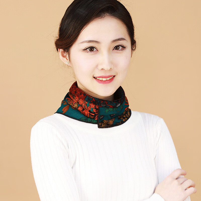 维若斯双面双花三角巾围脖女秋冬护颈保暖暗扣假领子时尚洋气百搭围巾 双面三角巾-孔雀蓝