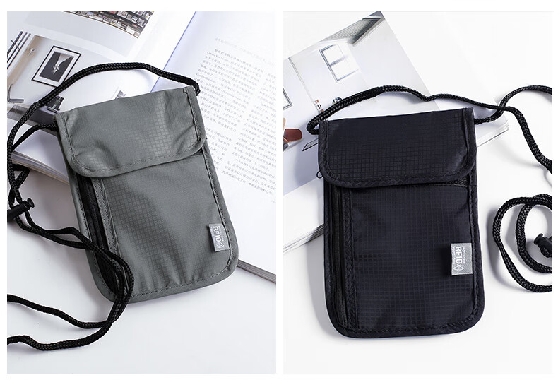 Close-fitting halter neck passport bag, overseas travel tickets, large mobile phone bag, crossbody bag, waterproof ID bag, custom printed logo, upgraded 7 compartments/anti-theft black