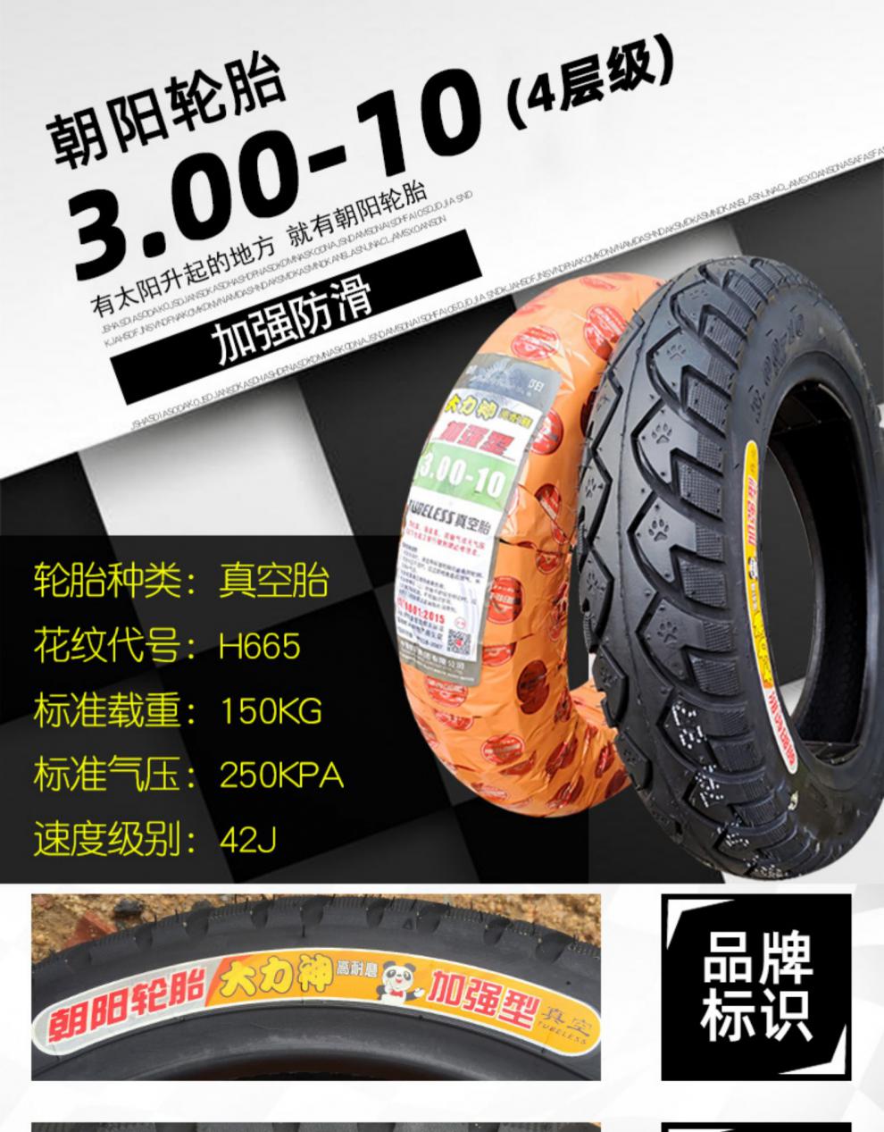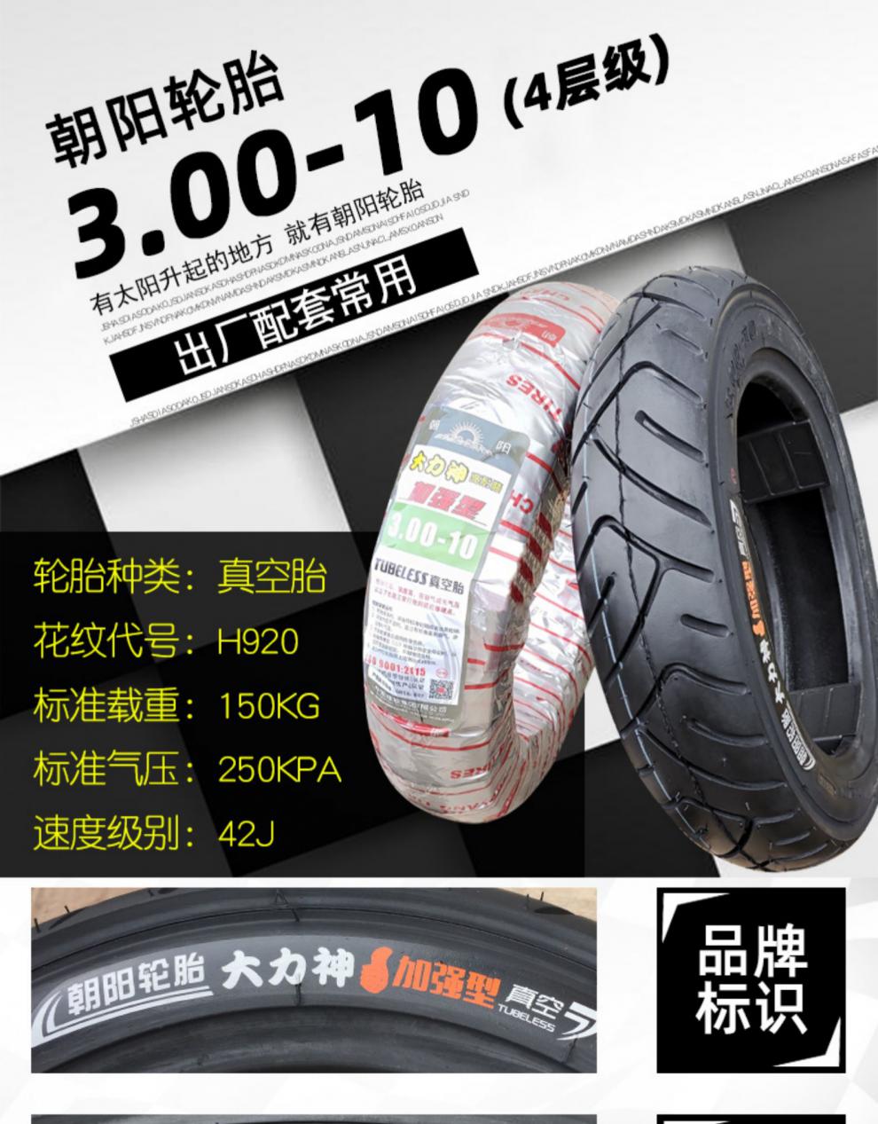 朝阳朝阳轮胎3.00-10真空胎电动车外胎电动车摩托车轮胎钢丝防爆 3.00-10八层防爆胎H687