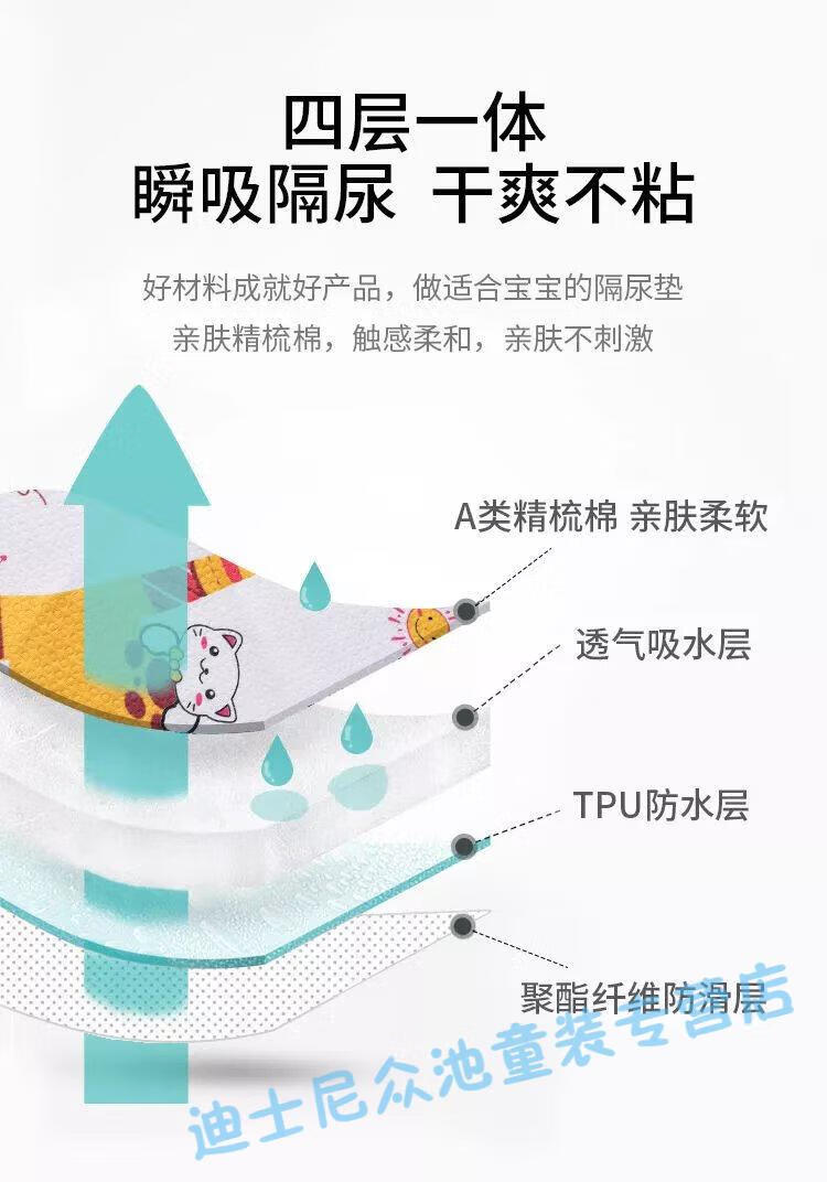 Kocotree透气可洗隔尿垫婴儿童大号防水垫新生儿用品尿布垫姨妈月经垫 太空小熊A类纯棉+防水 50*70cm一条
