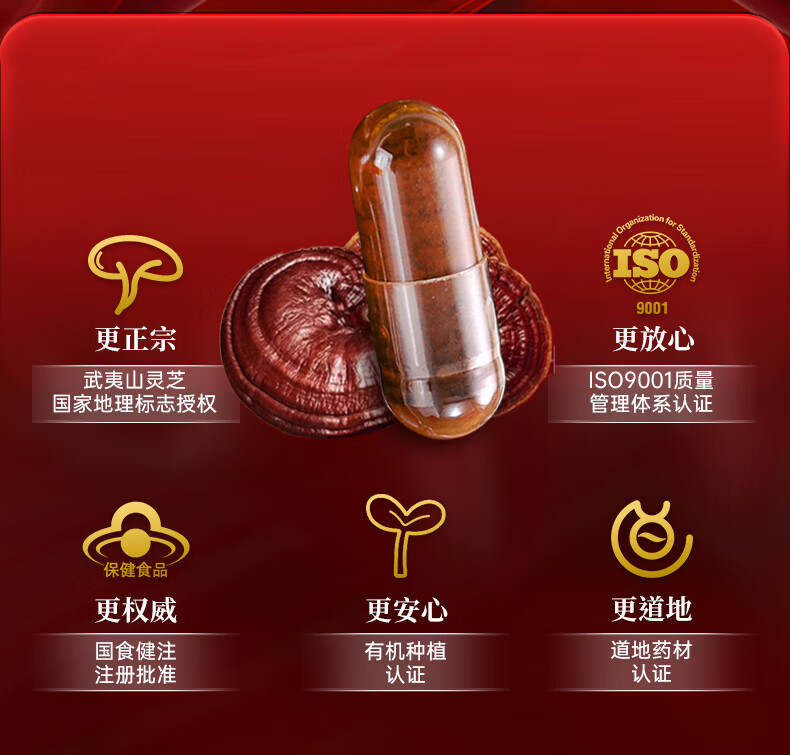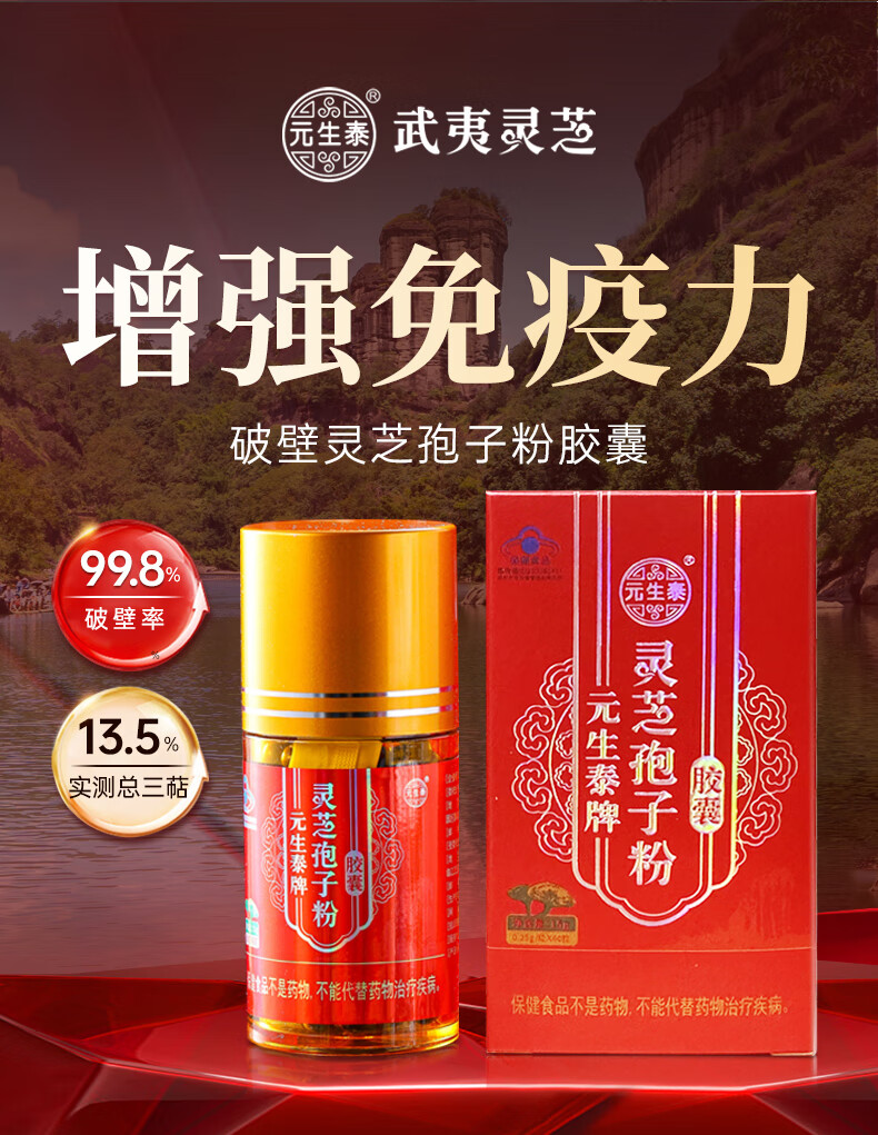 元生泰破壁灵芝孢子粉胶囊增强免疫力武夷山有机种植灵芝补品中老年营养 1盒 240粒【礼盒装-30天量】日常调理