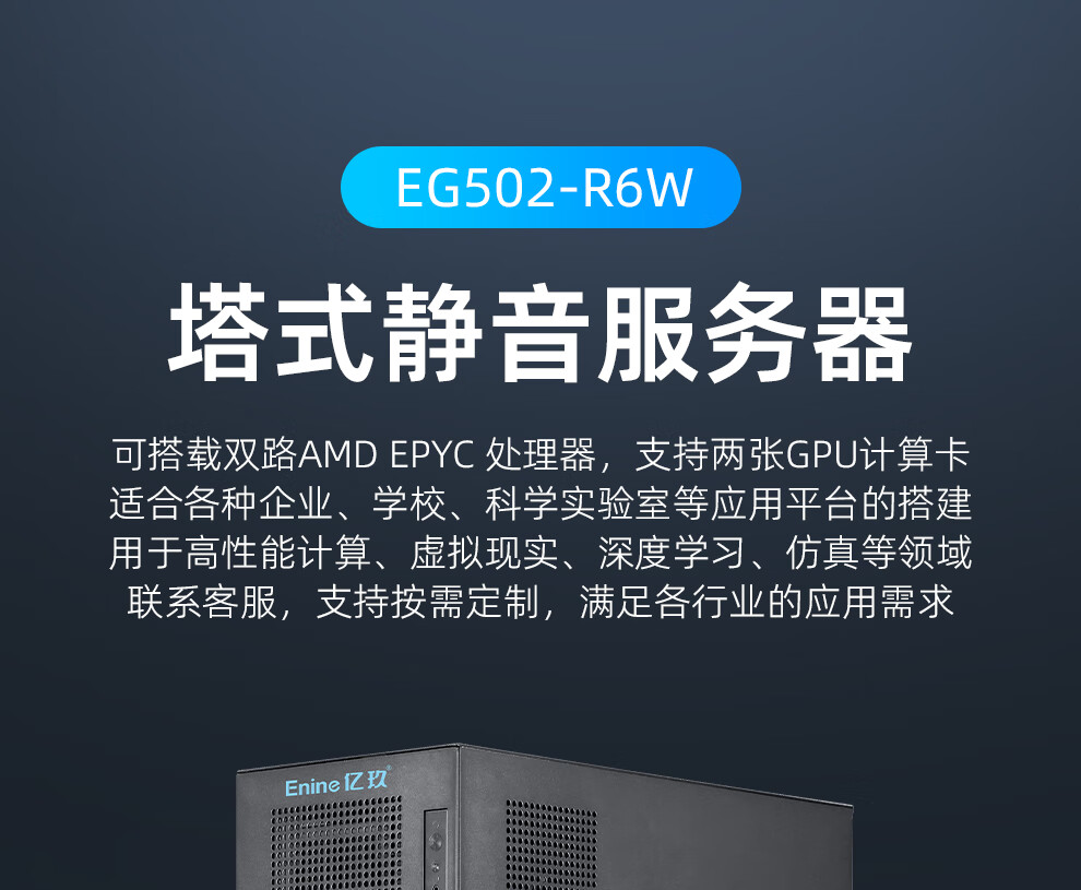 亿玖【EG502-R6W】AMD双路2GPU高性能计算/科学计算/建模渲染【塔式液冷工作站】静音服务器主机 2颗7371 32核64线程3.10GHz 256GB|1TB固态|2*A40 48G