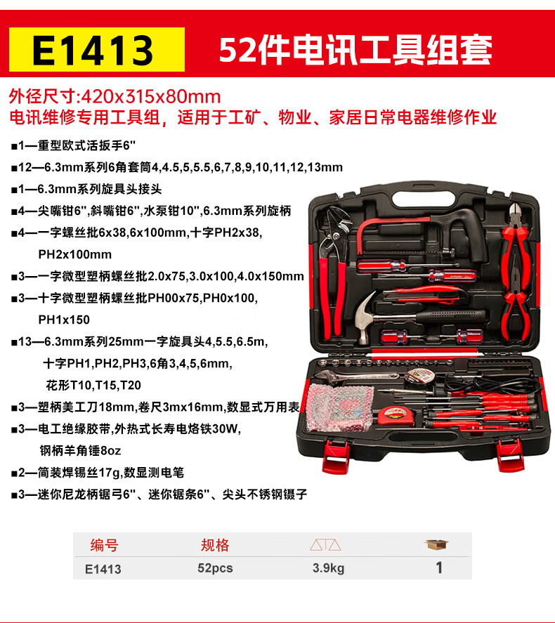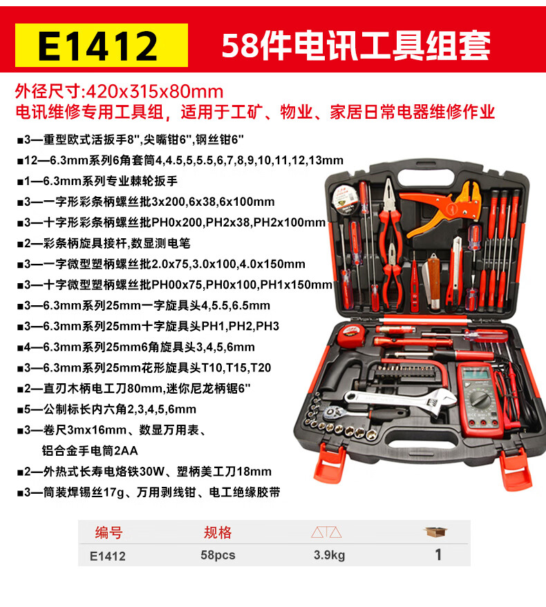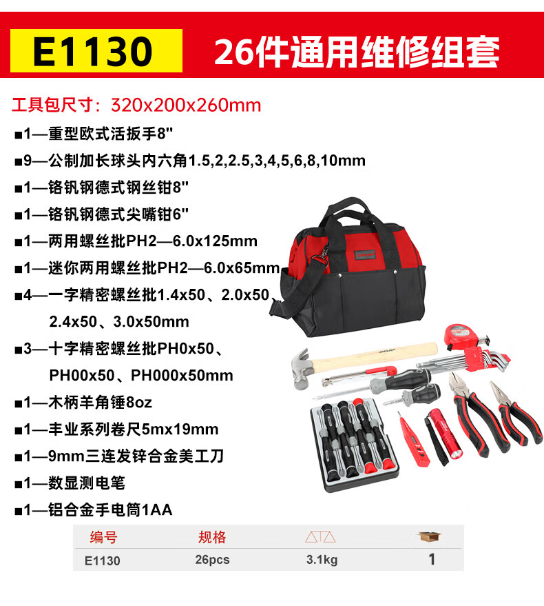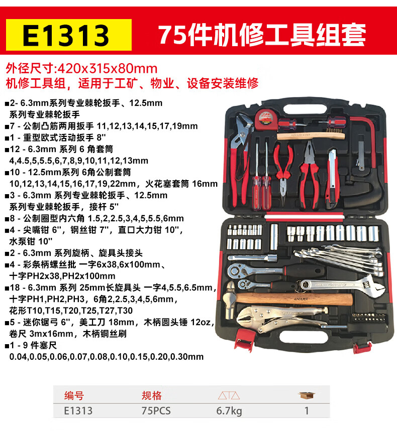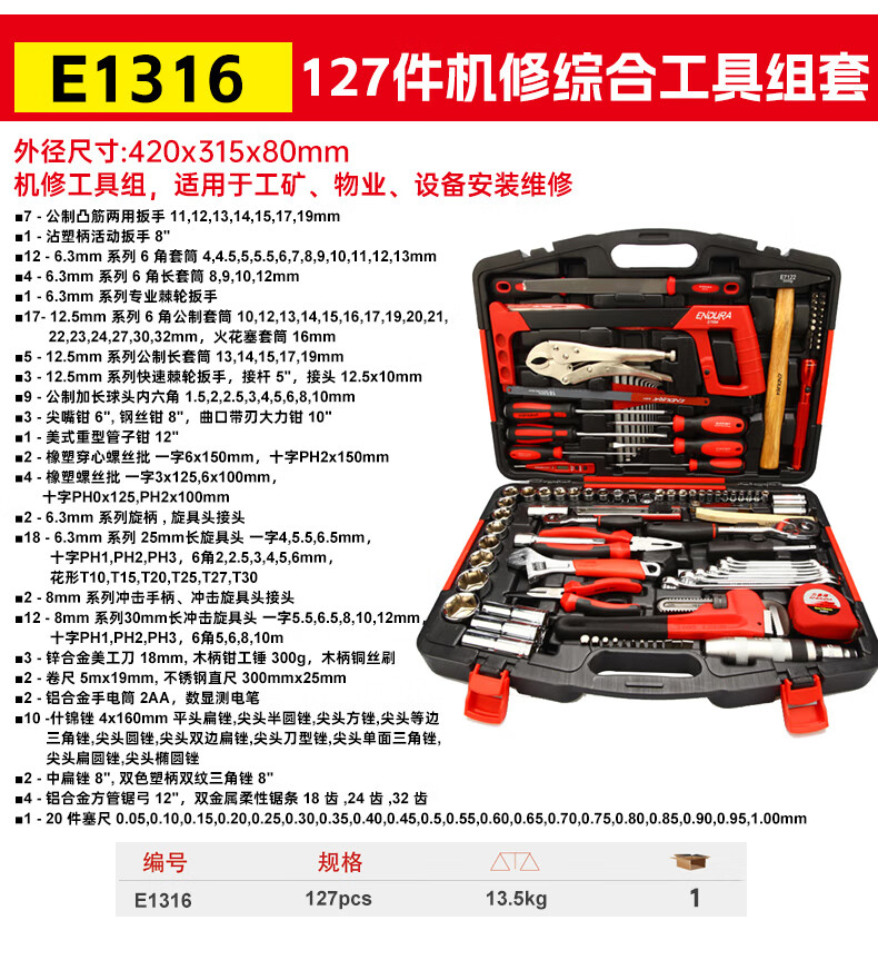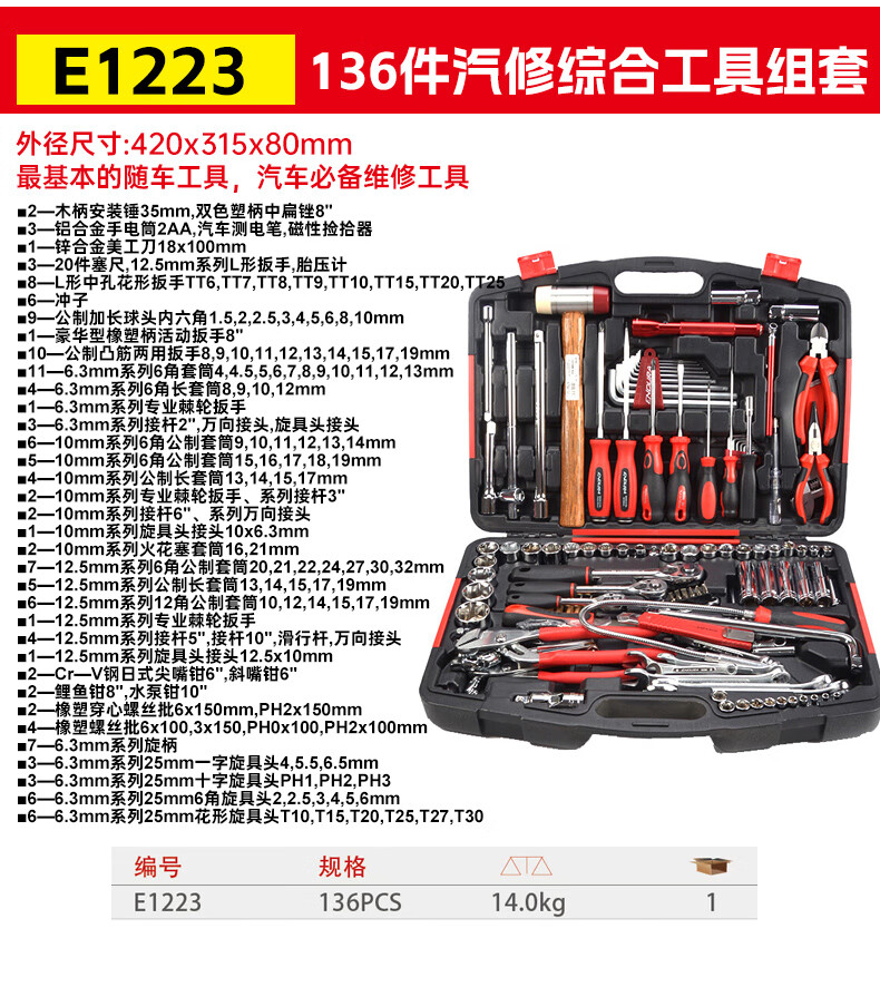 ENDURA Juego completo de herramientas de reparación de automóviles de 136 piezas, juego de herramientas manuales E1223, juego de utensilio doméstico E1105 (20 piezas)