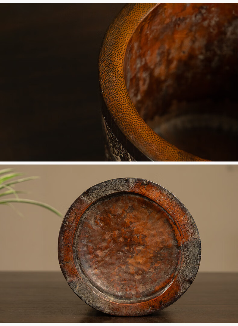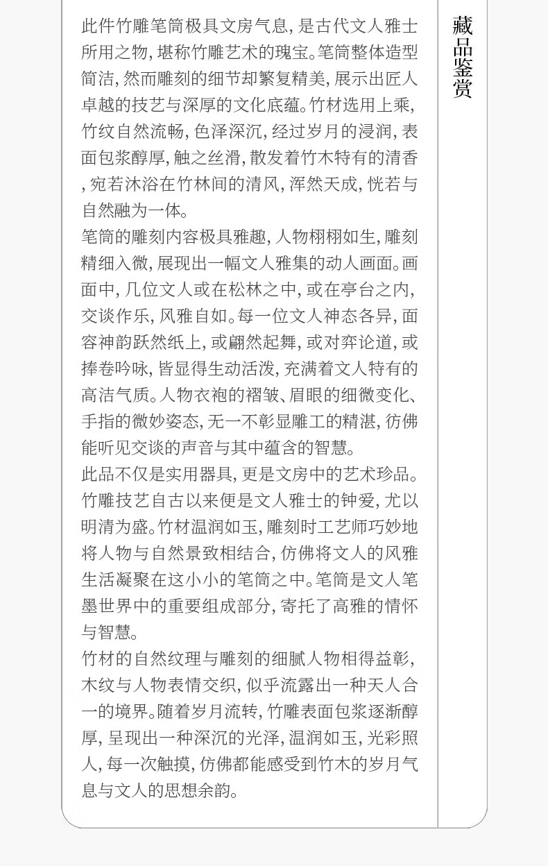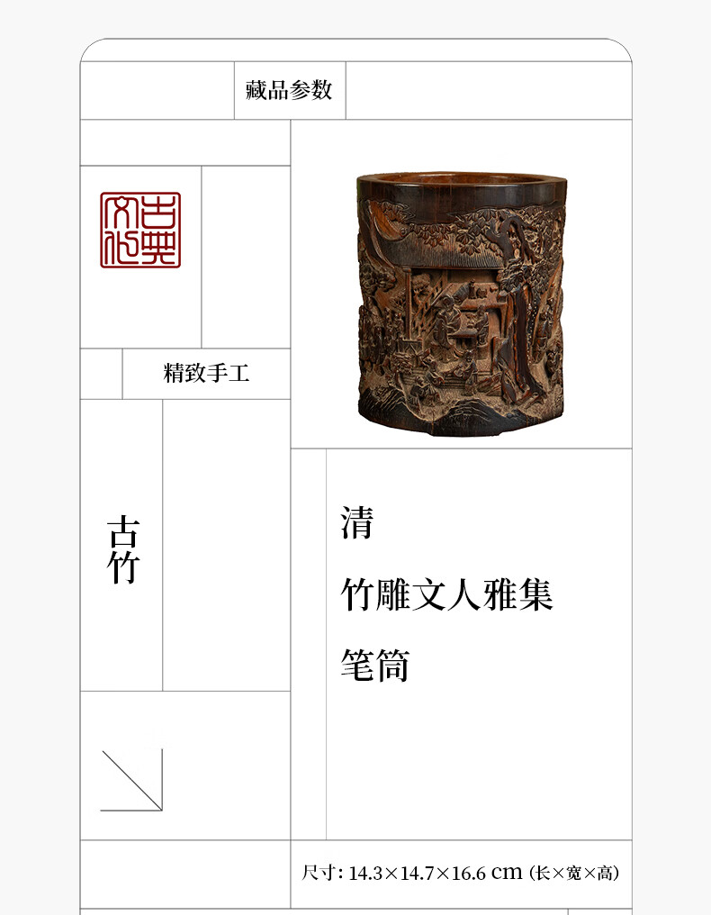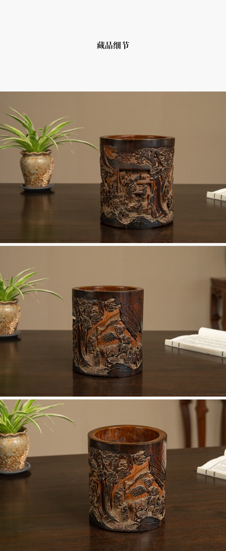 YARAN CULTURE清代竹雕文人雅集笔筒老物件古玩收藏真品竹制艺术品中式装饰摆件 14.3×14.7×16.6 1098-68
